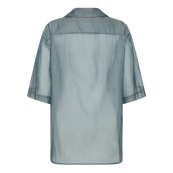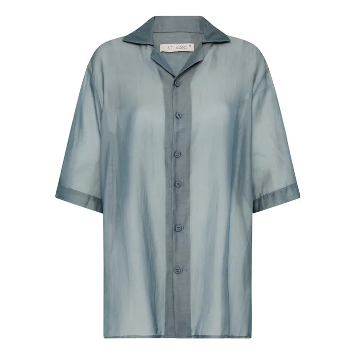 SIZE ON TAG: 14FITS LIKE: N/ACOLOUR: Blue greyFABRIC: 56% cotton, 44% silkCONDITION: Excellent prelovedMEASUREMENTS:BUST: 63cms WAIST: 63cms LENGTH: 73cmsNOTES: Classic collar, Reverse side, Easy to wear,...