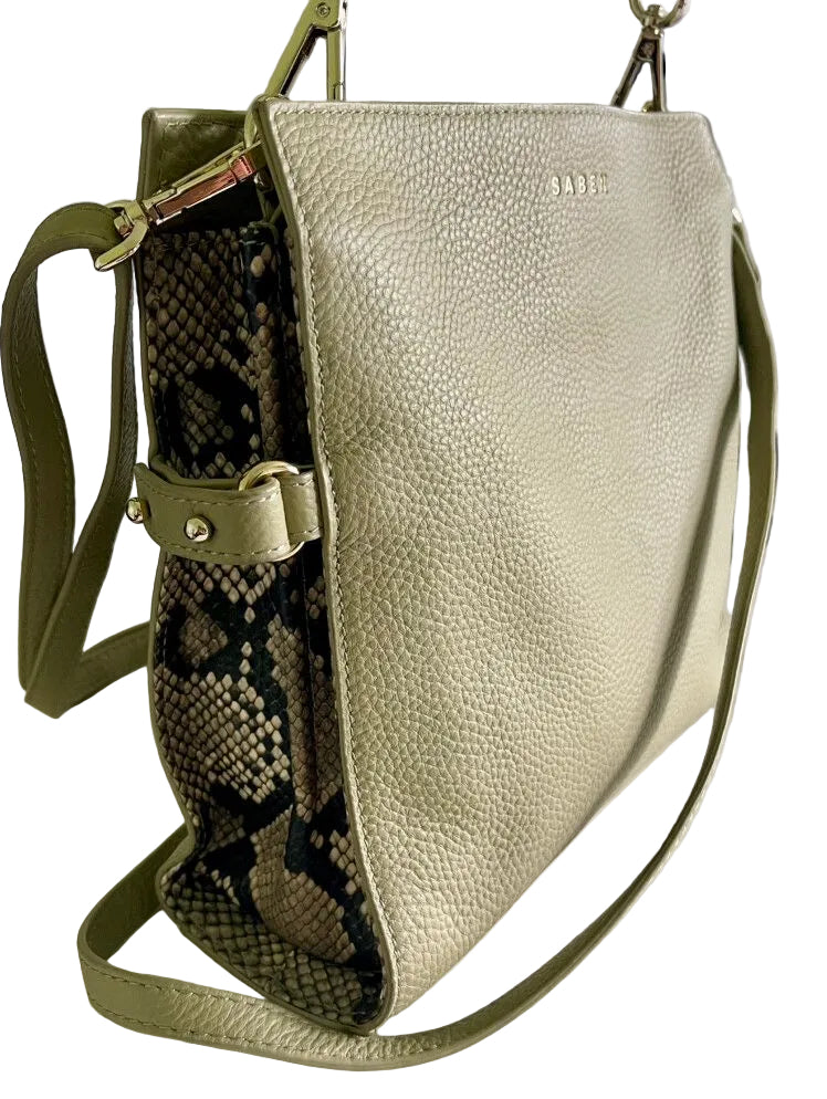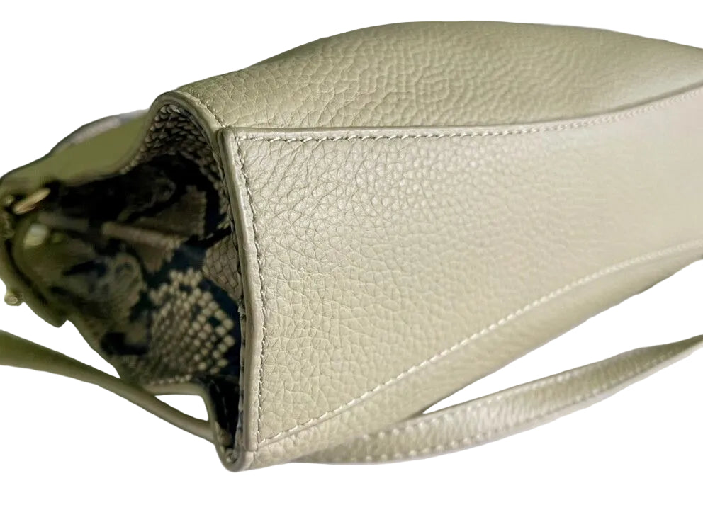COLOUR: Sage, python grey/black/beigeFABRIC: Leather, textile, metalCONDITION: Like newMEASUREMENTS:HEIGHT: 23cms WIDTH: 22-23.5cms DEPTH: 7.5cms STRAP: 80-141cms NOTES: This popular darling is the scaled down...