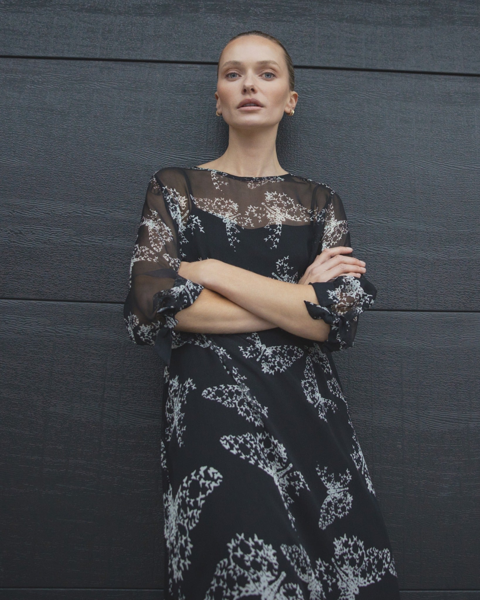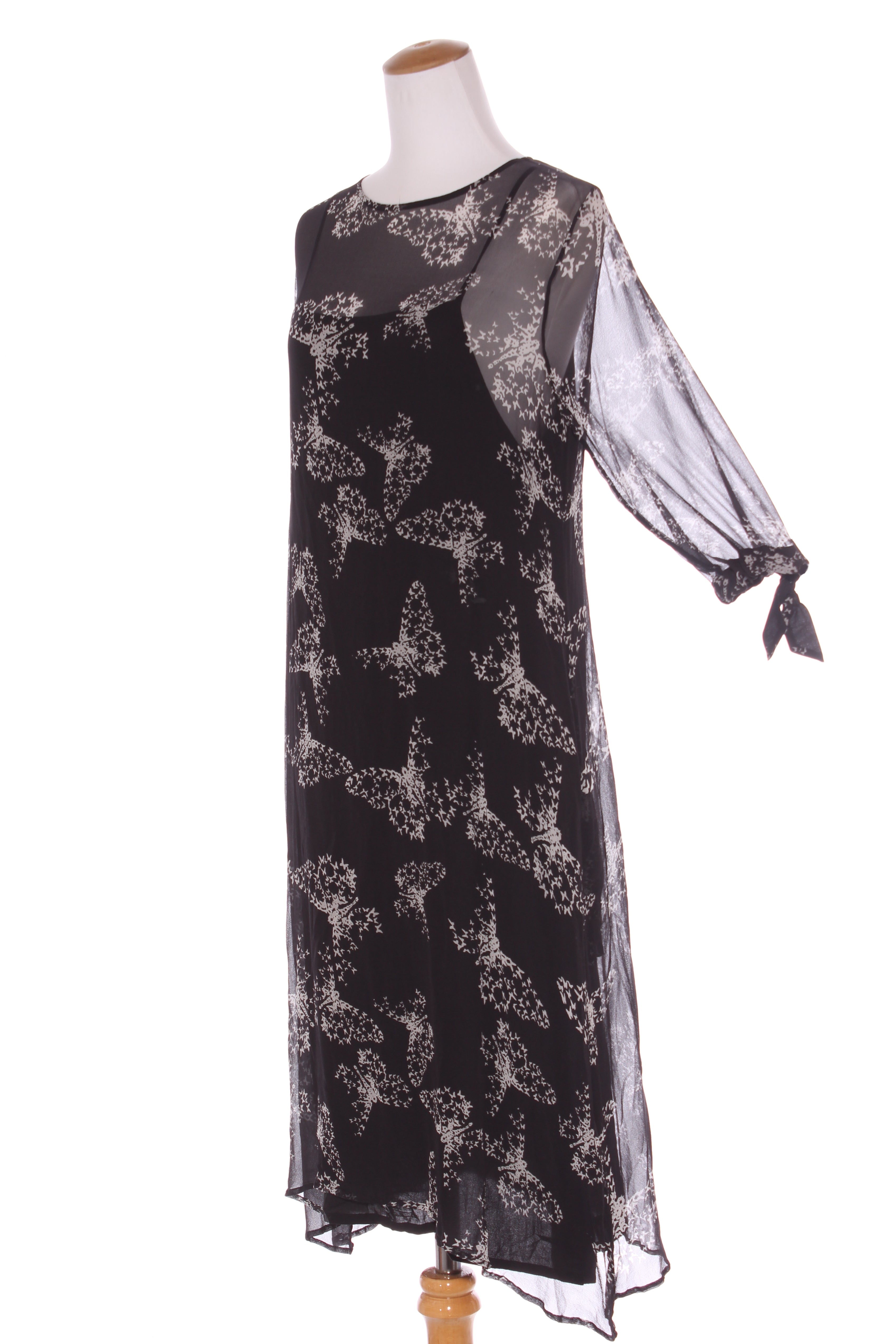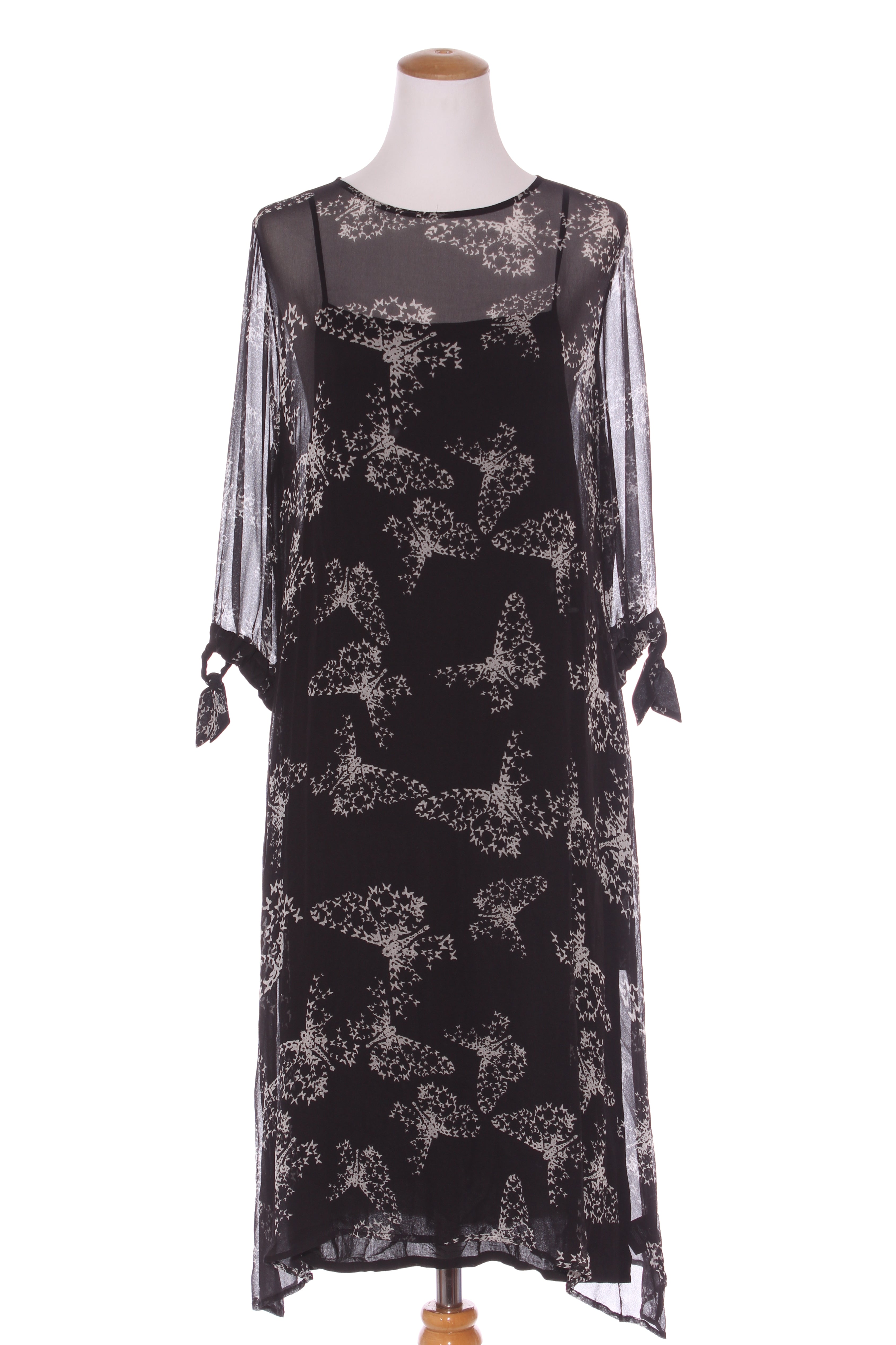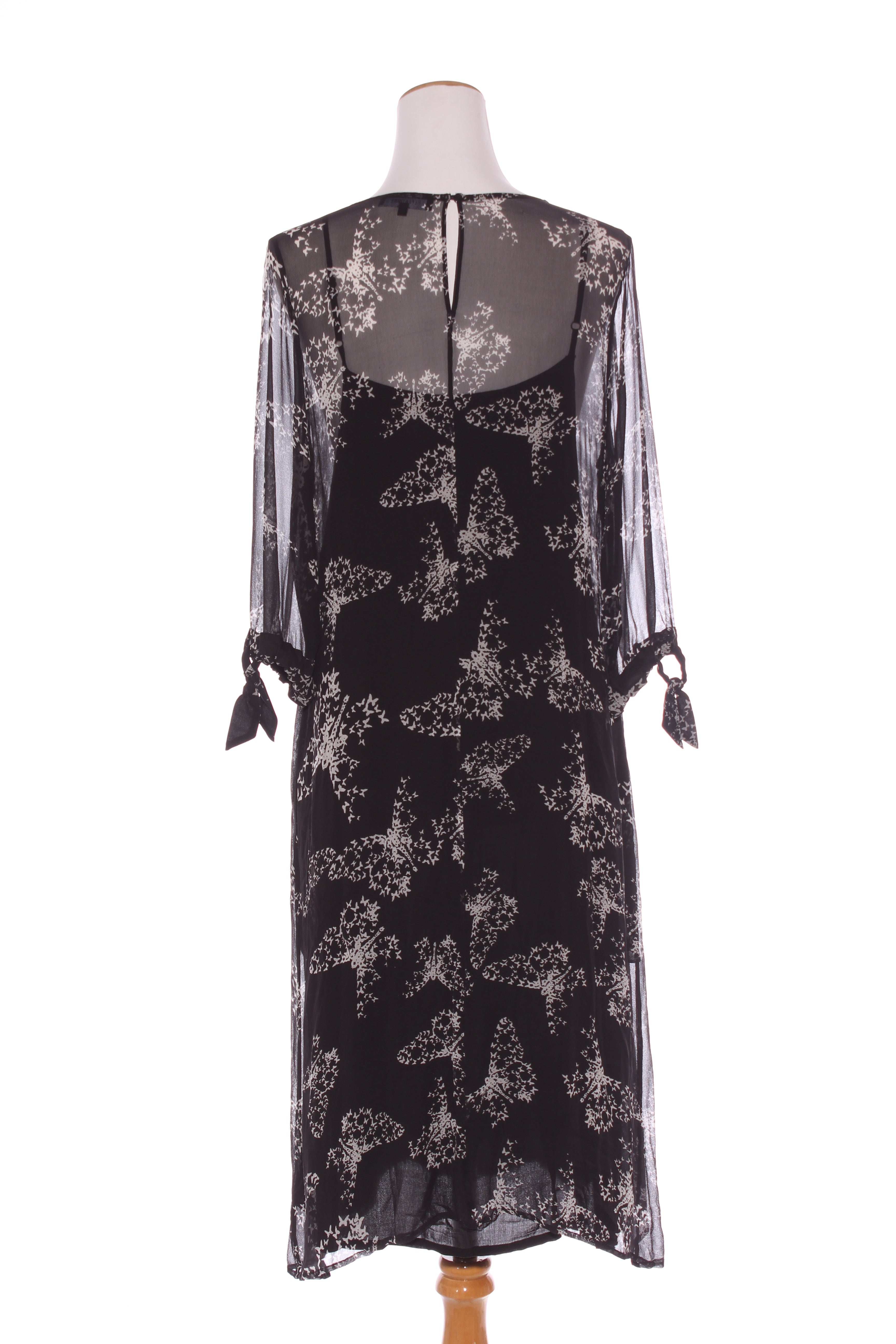 SIZE ON TAG: 14FITS LIKE: N/ACOLOUR: Black, whiteFABRIC: Silk, Slip - viscoseCONDITION: Very good preloved, couple of fine pulls but nothing major at allSLIP MEASUREMENTS:BUST: 51cms WAIST: 51cms...