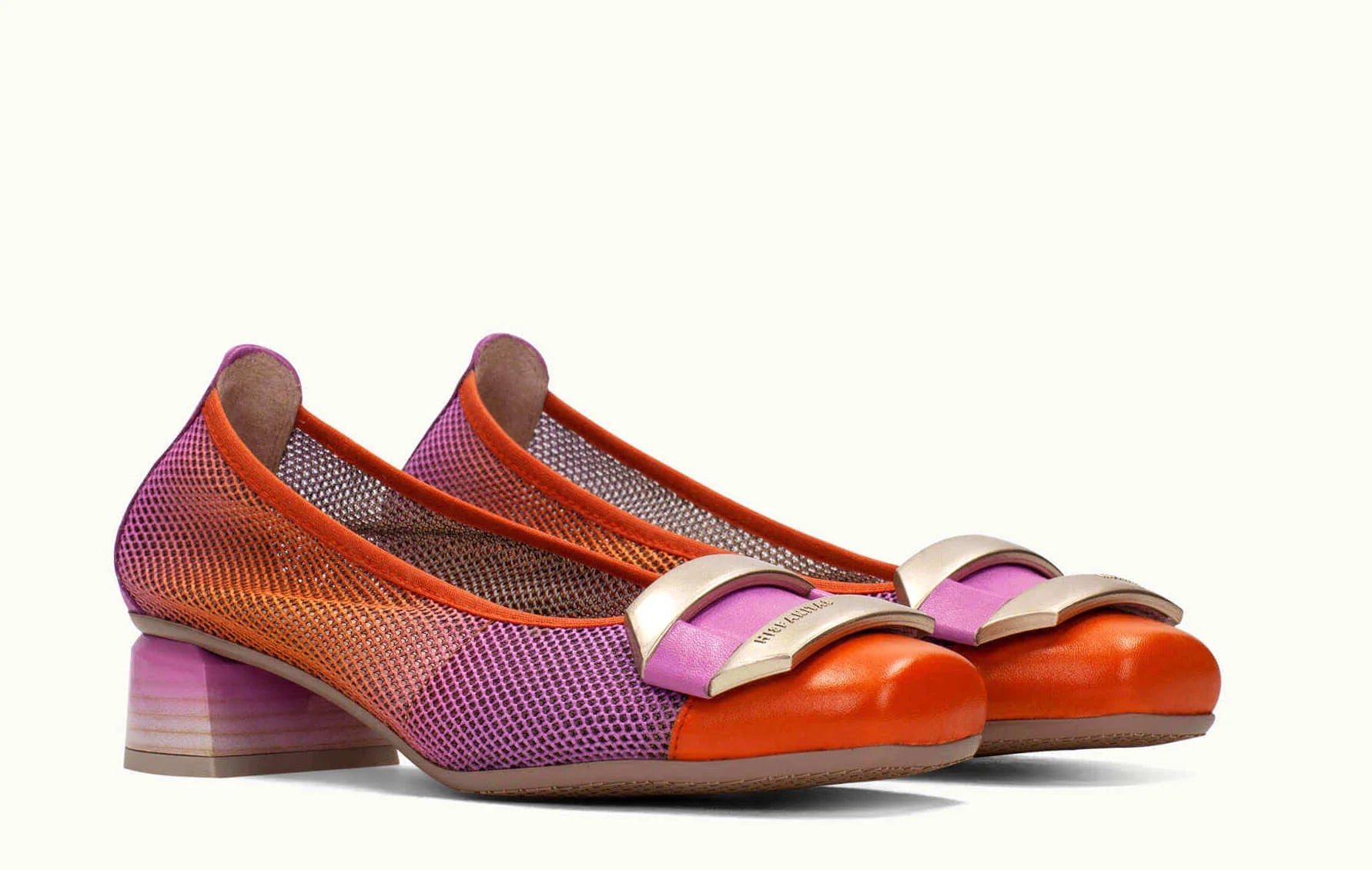 SIZE ON SHOE: 40FITS LIKE: 9COLOUR: Orange, pink, goldFABRIC: Leather upper, leather lining, synthetic soleCONDITION: Excellent preloved - hardly wornMEASUREMENTS:INNER SOLE: 26.5cms WIDTH: 8.5cms HEEL: 4cms...