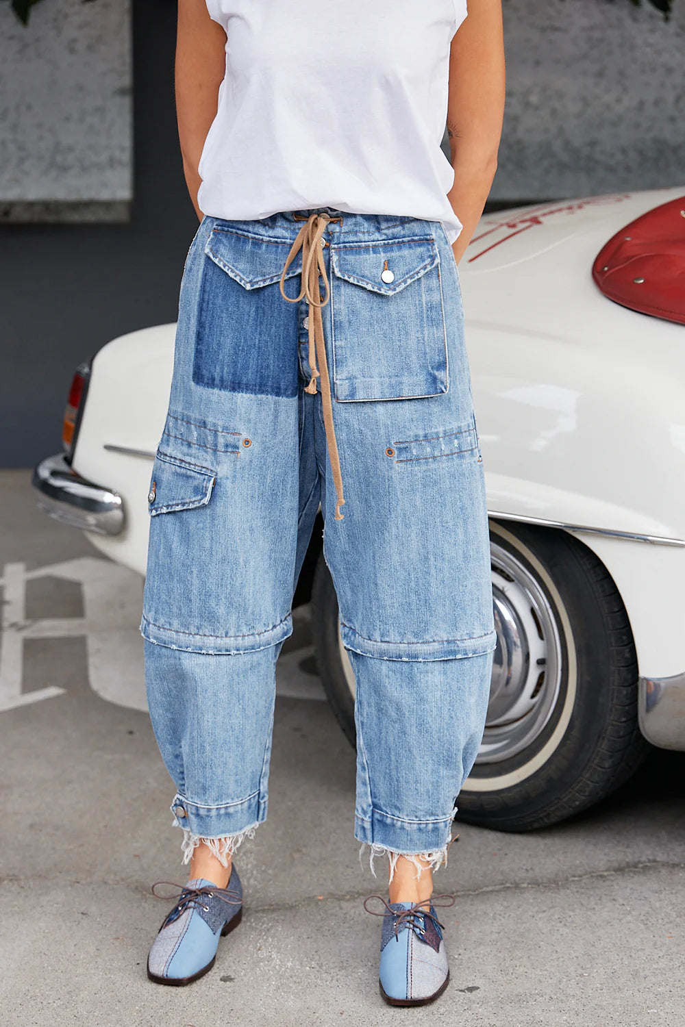 SIZE ON TAG: 12FITS LIKE: 12-14 higher on the hipsCOLOUR: BlueFABRIC: CottonCONDITION: Like newMEASUREMENTS:WAIST: 47cms HIPS: 61cms RISE: 34cms LENGTH: 64cms (From crotch to...
