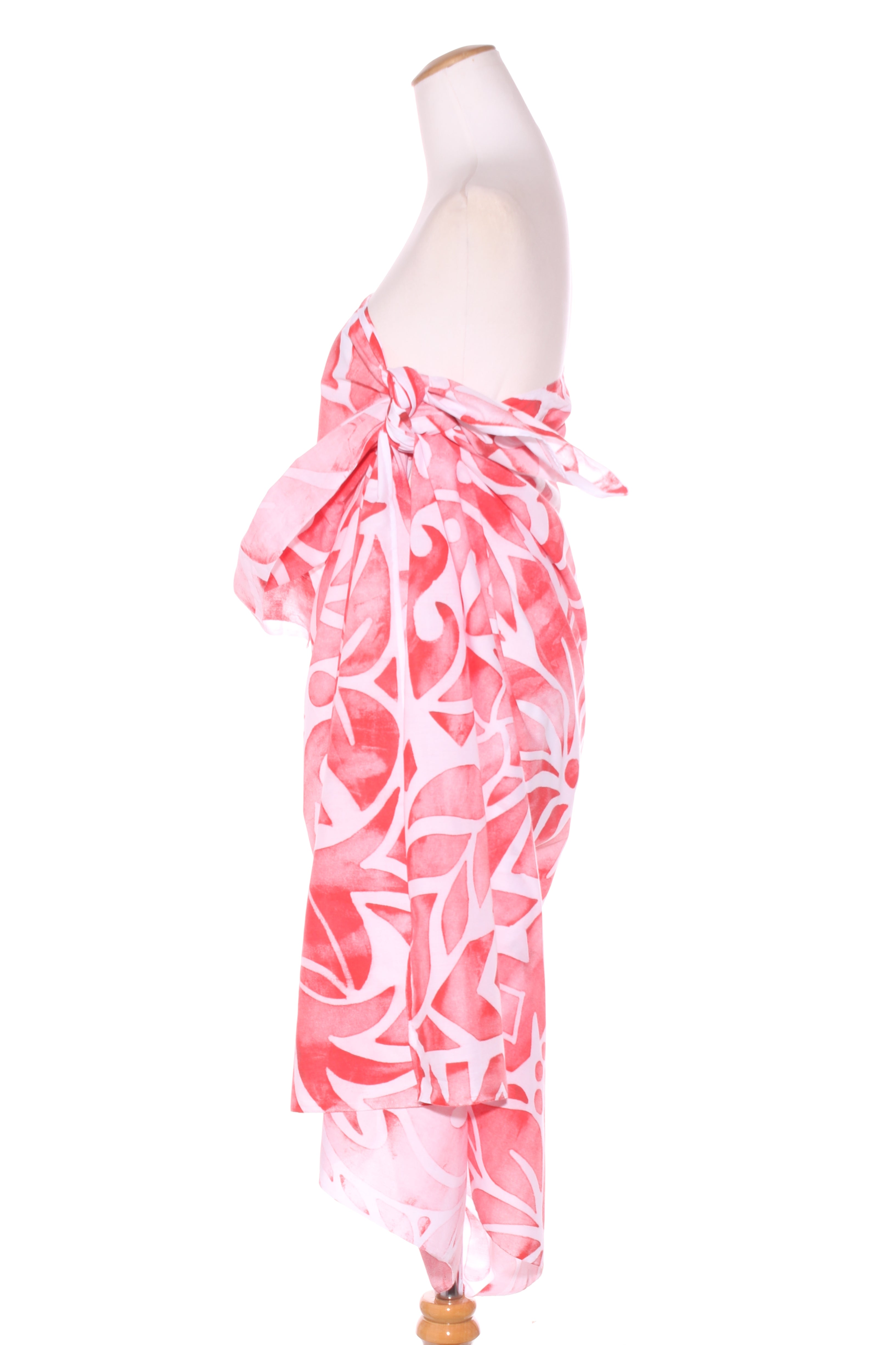 SIZE ON TAG: No tagFITS LIKE: One sizeCOLOUR: Red, whiteFABRIC: No tag, cottonCONDITION: Excellent prelovedMEASUREMENTS:WIDTH: 180cms LENGTH: 113cmsNOTES: Wraps and ties in place.