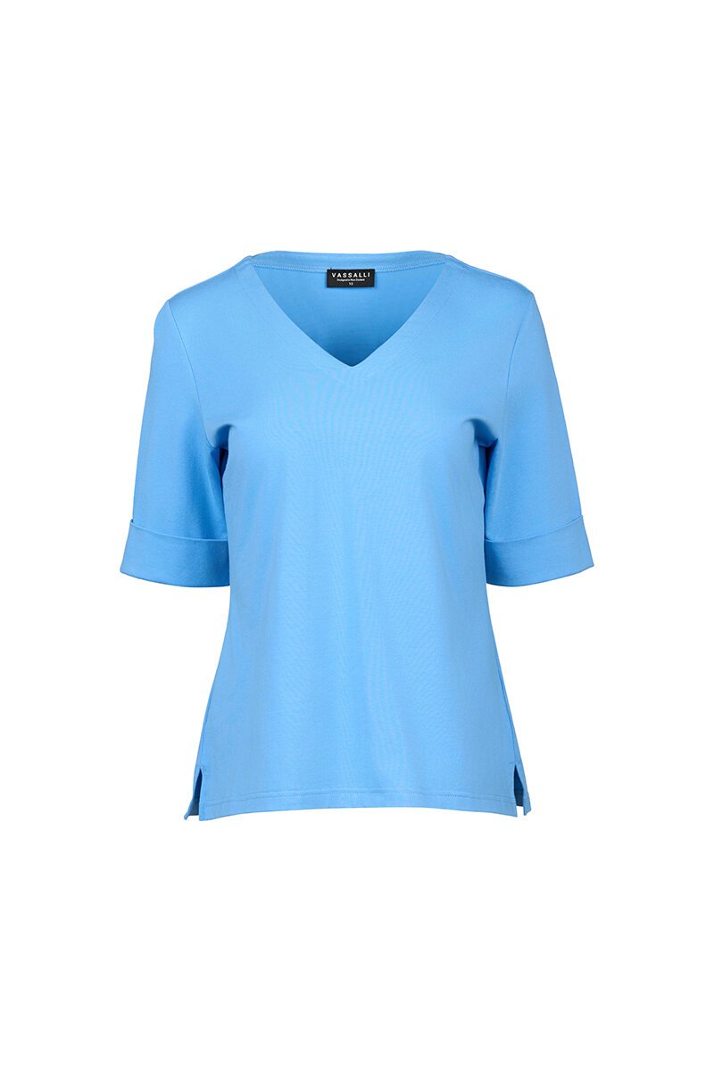 SIZE ON TAG: 16FITS LIKE: N/ACOLOUR: Sky blueFABRIC: 95% cotton, 5% elastaneCONDITION: Like newMEASUREMENTS:BUST: 56cms WAIST: 53cms LENGTH: 62cmsNOTES: This simple white V-neck top is made...