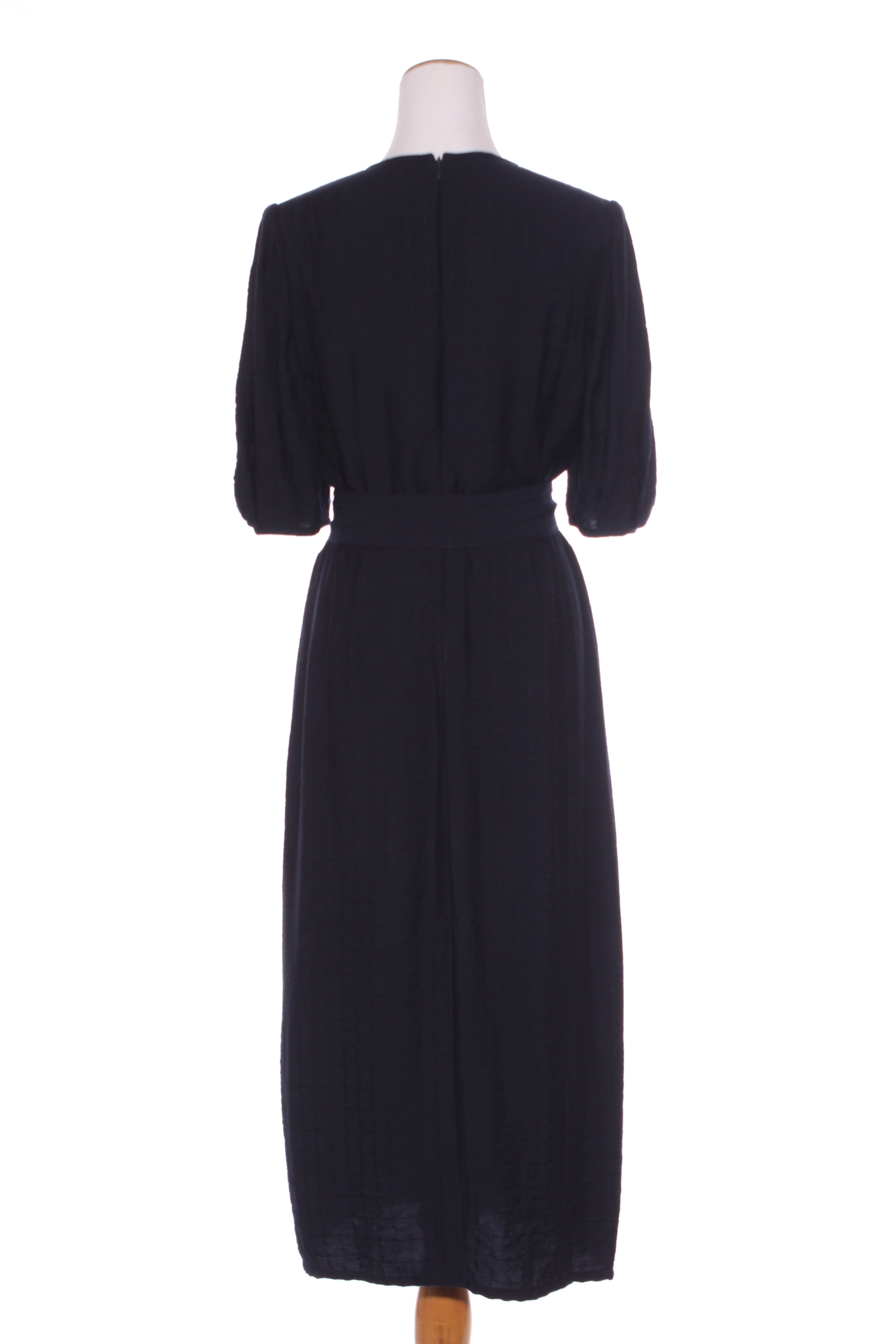 SIZE ON TAG: 8FITS LIKE: N/ACOLOUR: Navy blueFABRIC: 90% rayon, 10% nylonCONDITION: Excellent prelovedMEASUREMENTS:BUST: 48cms WAIST: 44cms LENGTH: 126cmsNOTES: Back zip access. Side belt loops. Comes...