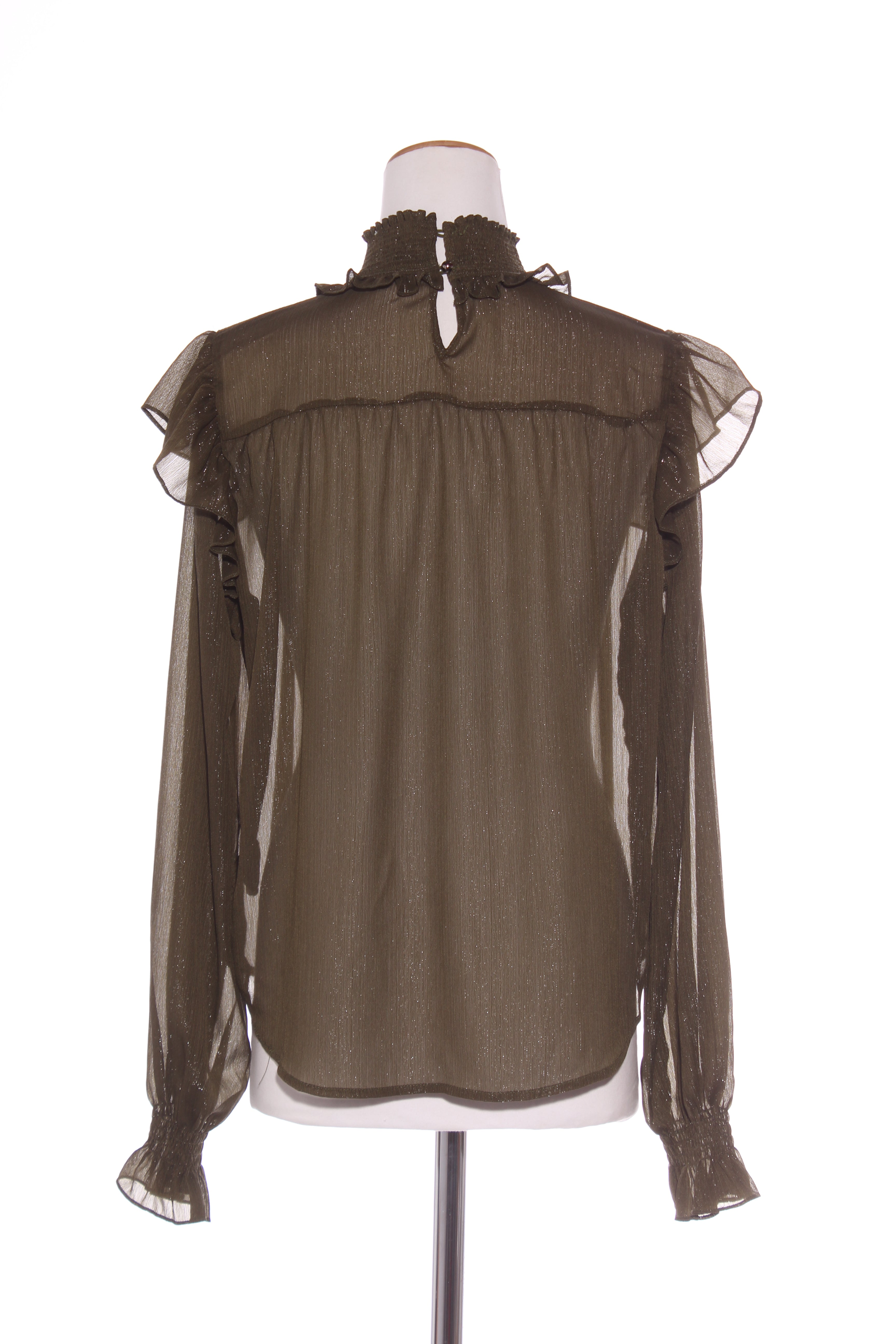 SIZE ON TAG: 10FITS LIKE: 10-12COLOUR: KhakiFABRIC: PolyesterCONDITION: Excellent prelovedMEASUREMENTS:BUST: 65cms WAIST: 61cms LENGTH: 67cms NOTES: Button up nape of neck. Elasticated neckline and sleeve ends. ...