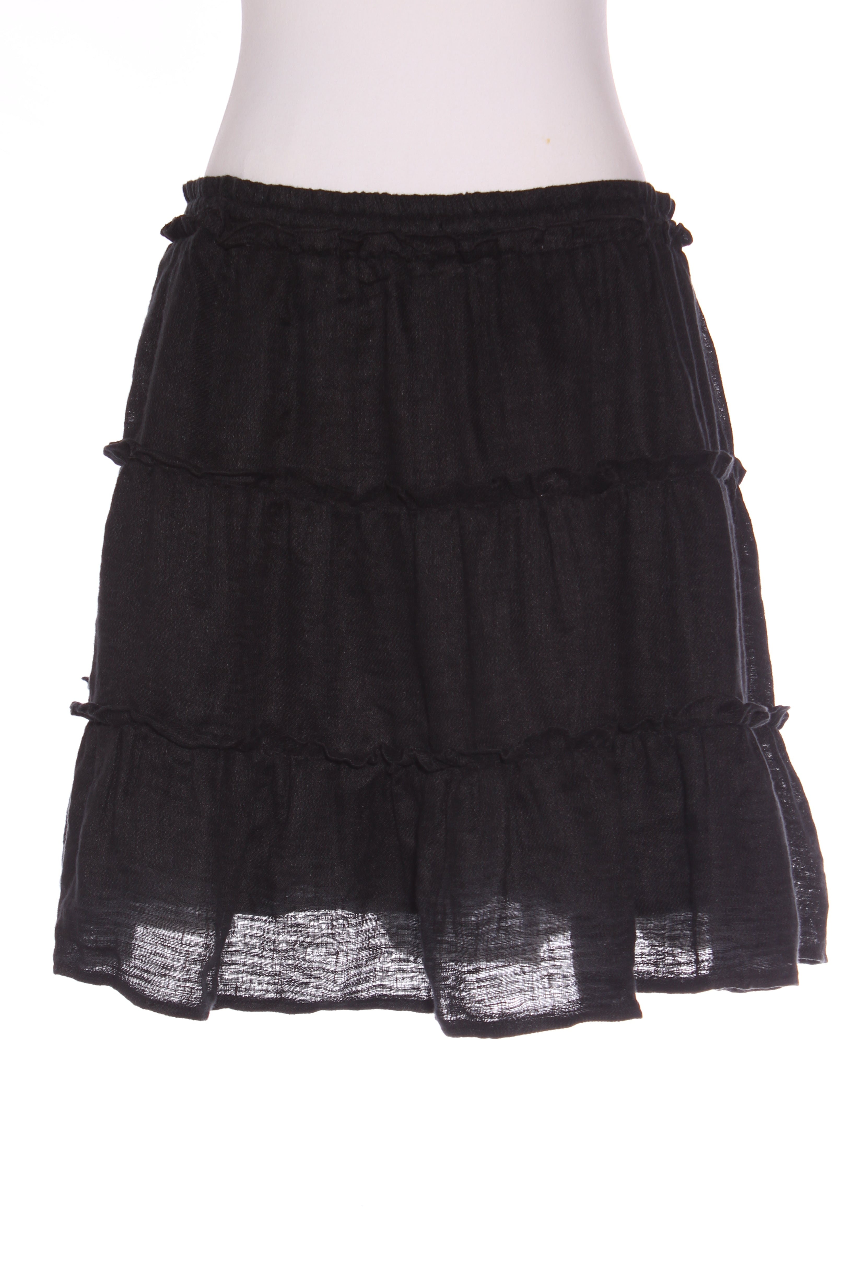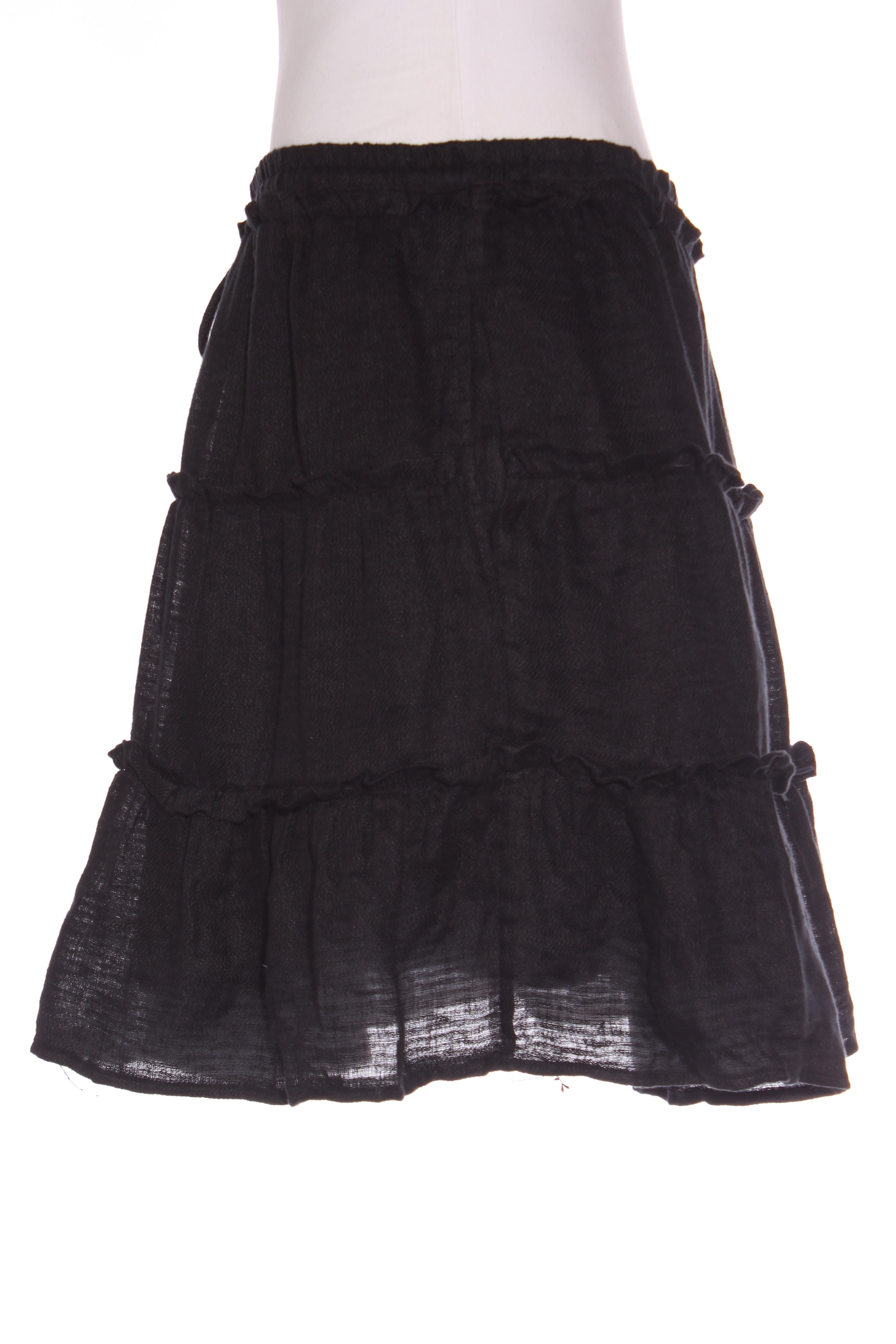 SIZE ON TAG: 16FITS LIKE: N/ACOLOUR: BlackFABRIC: Organic linen, Lining - cottonCONDITION: Excellent prelovedMEASUREMENTS: WAIST: 46cms HIPS: 78cms LENGTH: 48cms NOTES: Made using linen, this tiered mini has an...