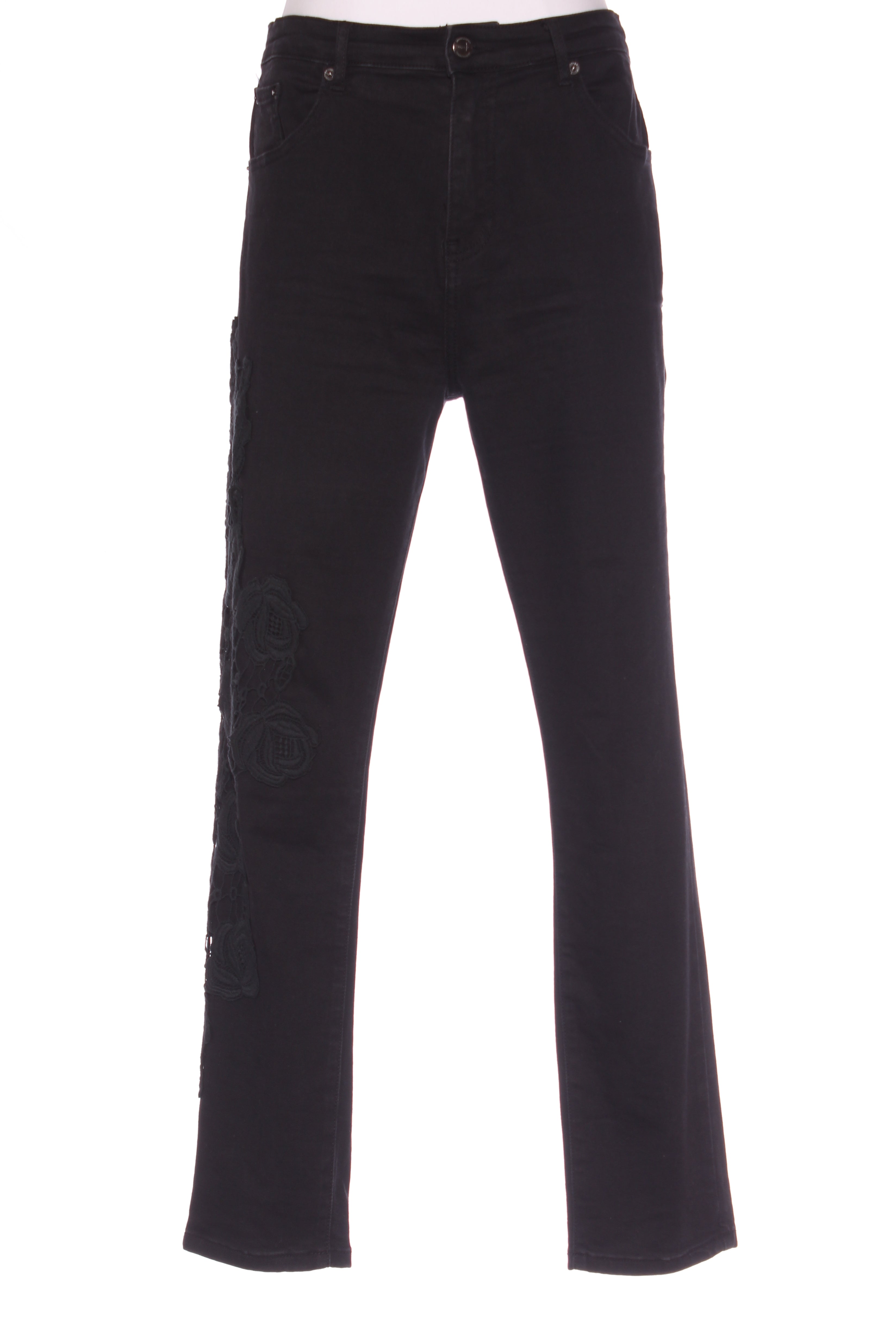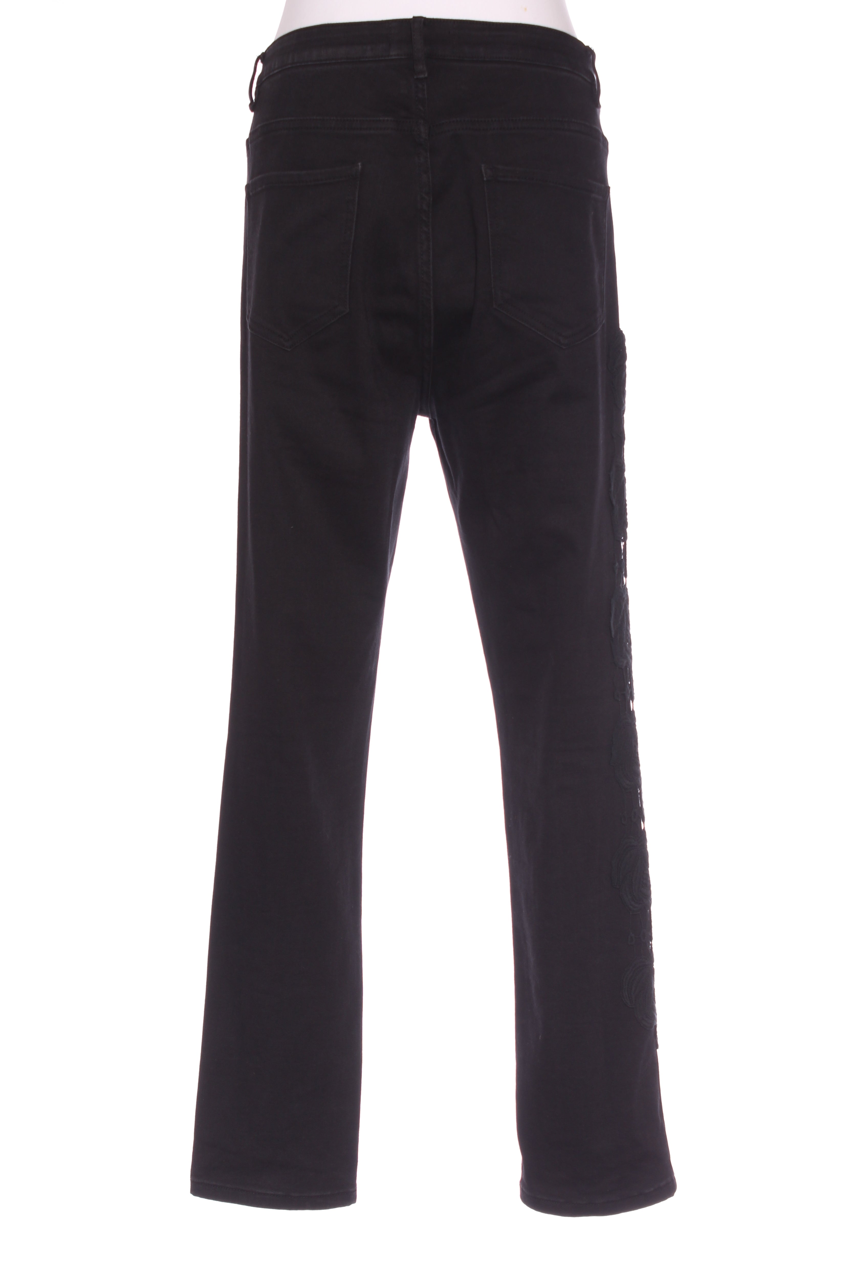 SIZE ON TAG: Tag removedFITS LIKE: 14COLOUR: BlackFABRIC: 90% cotton, 8% polyester, 2% spandexCONDITION: Excellent prelovedMEASUREMENTS:WAIST: 45cms HIPS: 54cms RISE: 30cms LENGTH: 72cms (From...