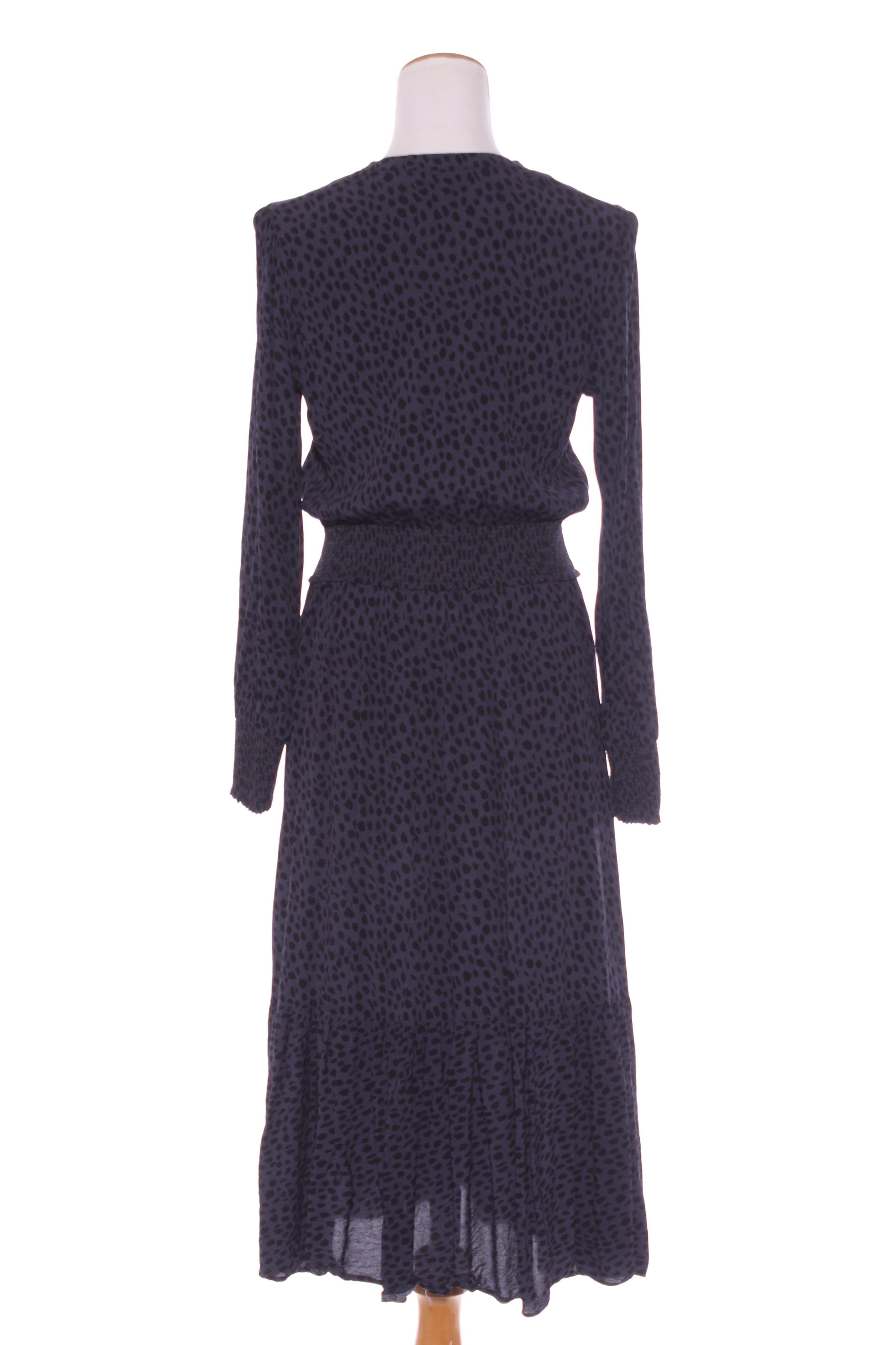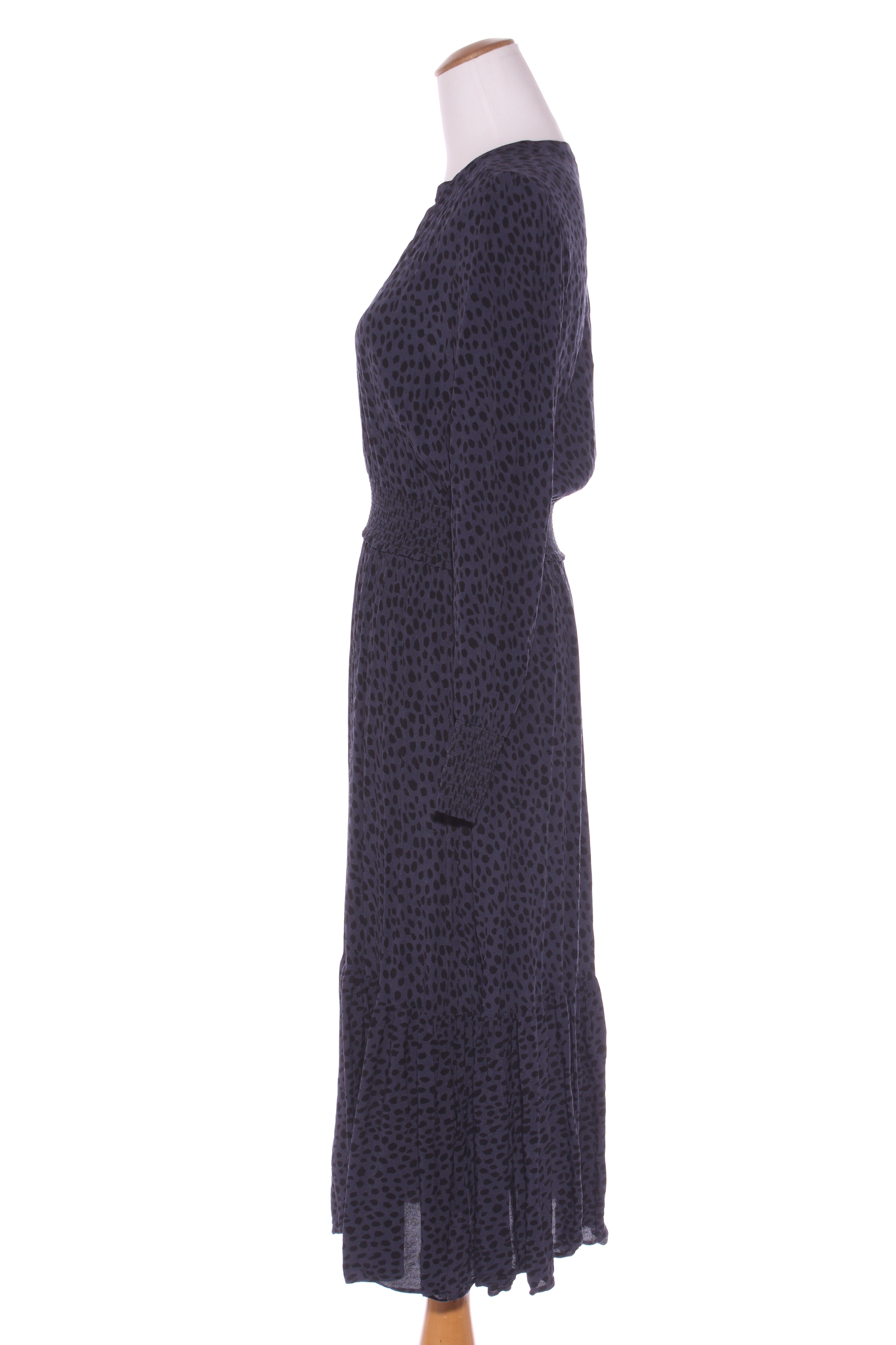SIZE ON TAG: 10FITS LIKE: 10-12COLOUR: Navy blue, blackFABRIC: ViscoseCONDITION: Excellent prelovedMEASUREMENTS:BUST: 51cms WAIST: 34cms LENGTH: 117cmsNOTES: Pull over style. Elasticated waist and sleeve ends