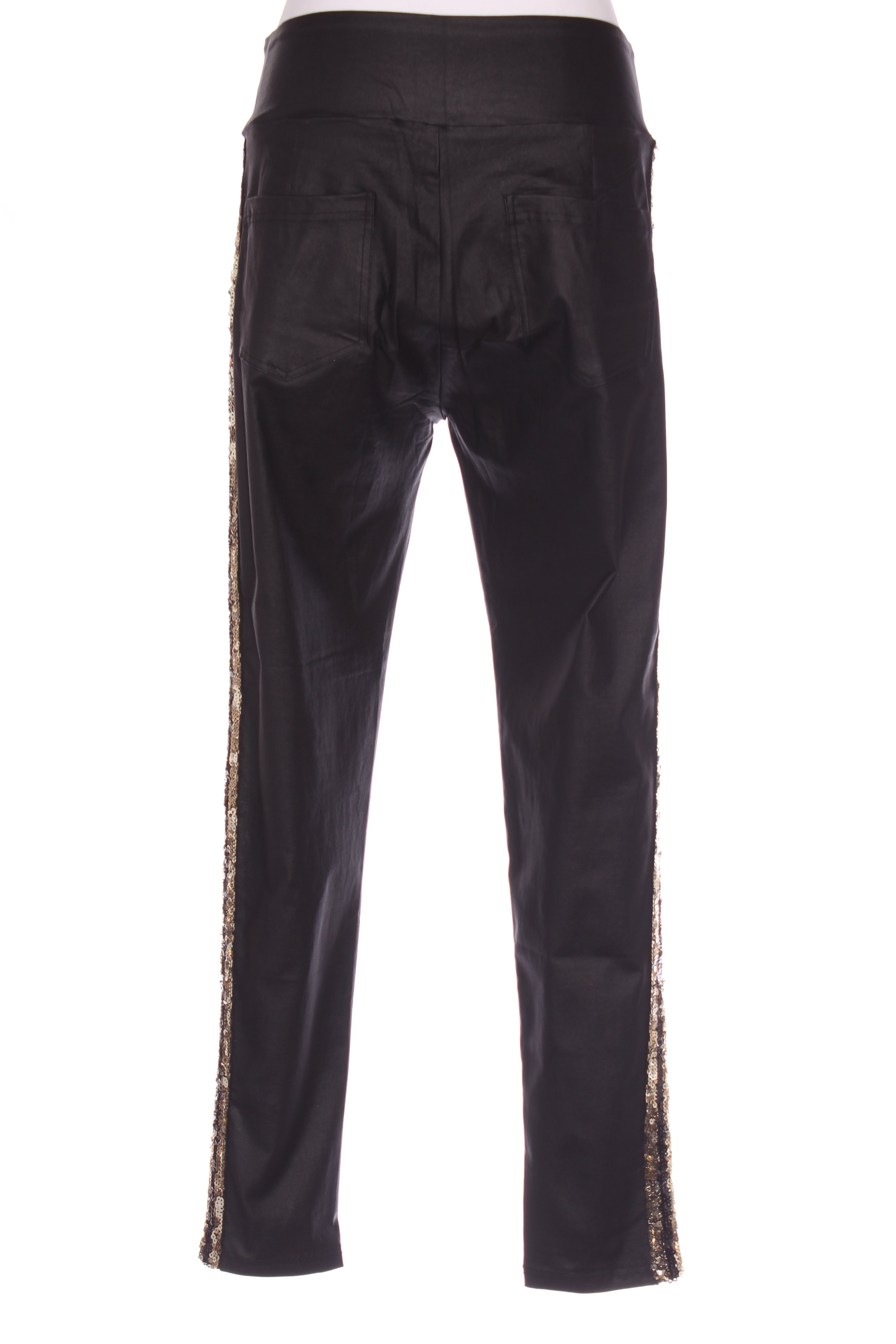 SIZE ON TAG: 14FITS LIKE: N/ACOLOUR: Black, goldFABRIC: 77% viscose, 20% nylon, 3% elastaneCONDITION: Excellent prelovedMEASUREMENTS:WAIST: 37cms HIPS: 50cms RISE: 29cms LENGTH: 71cms (From...