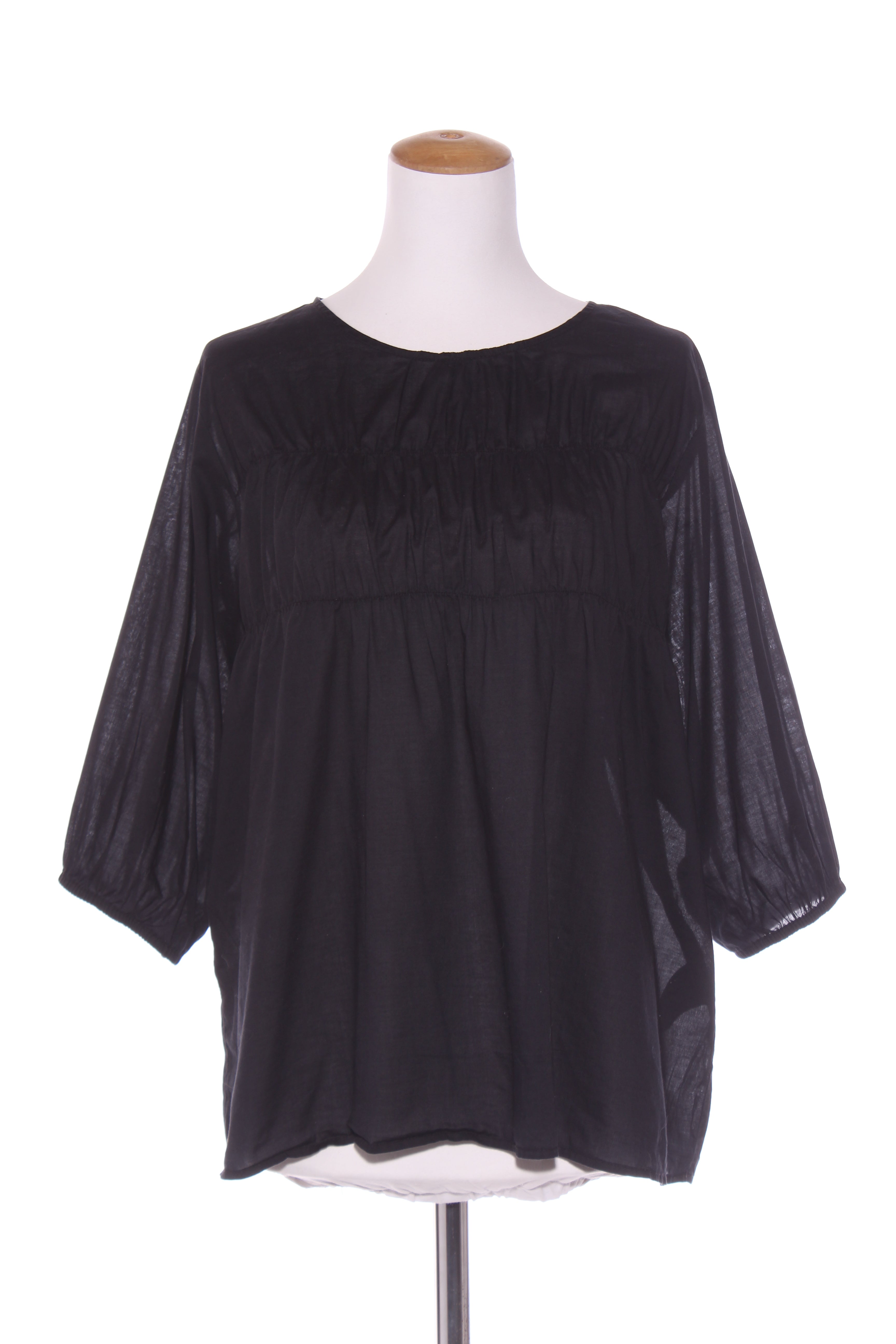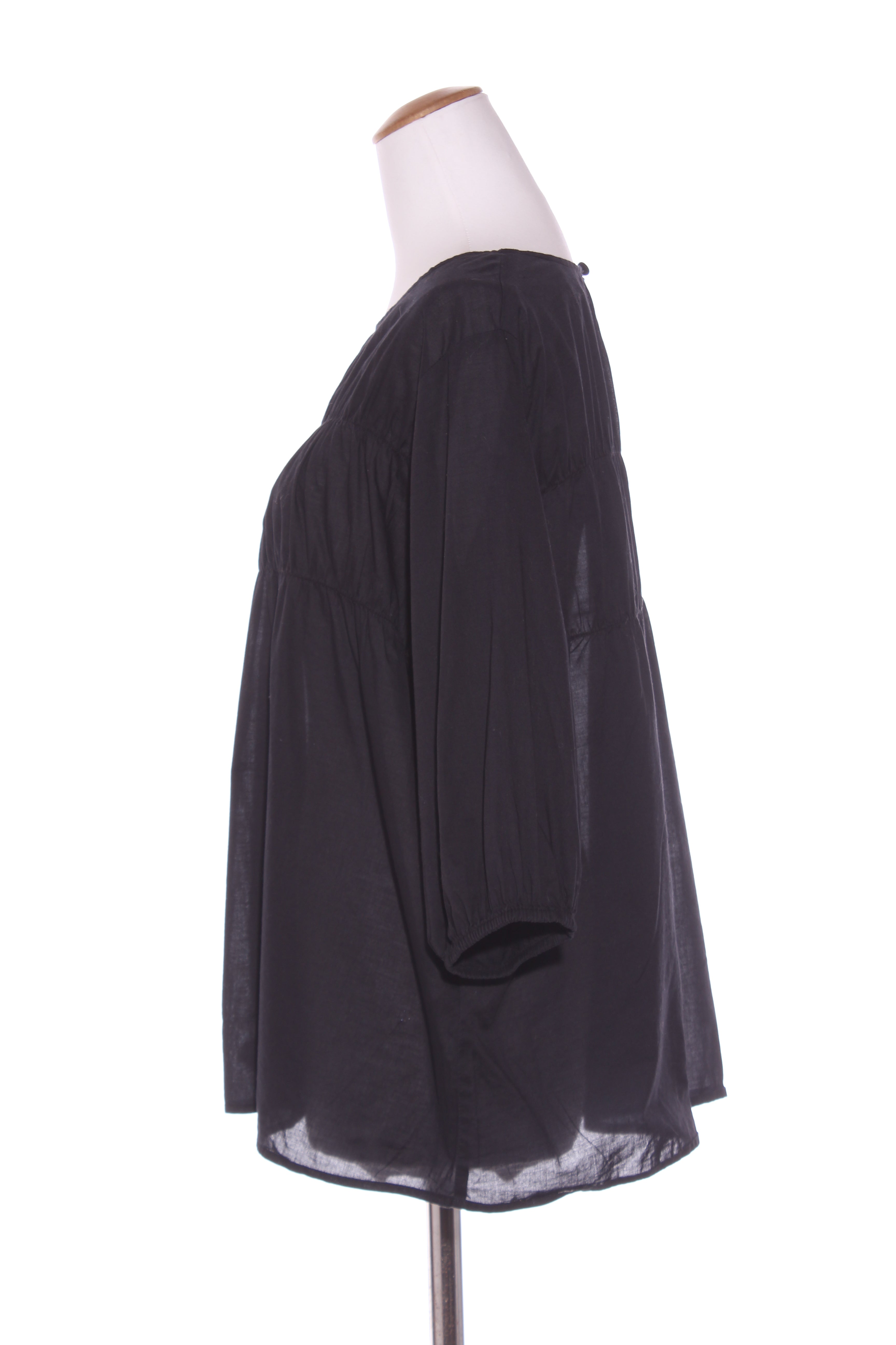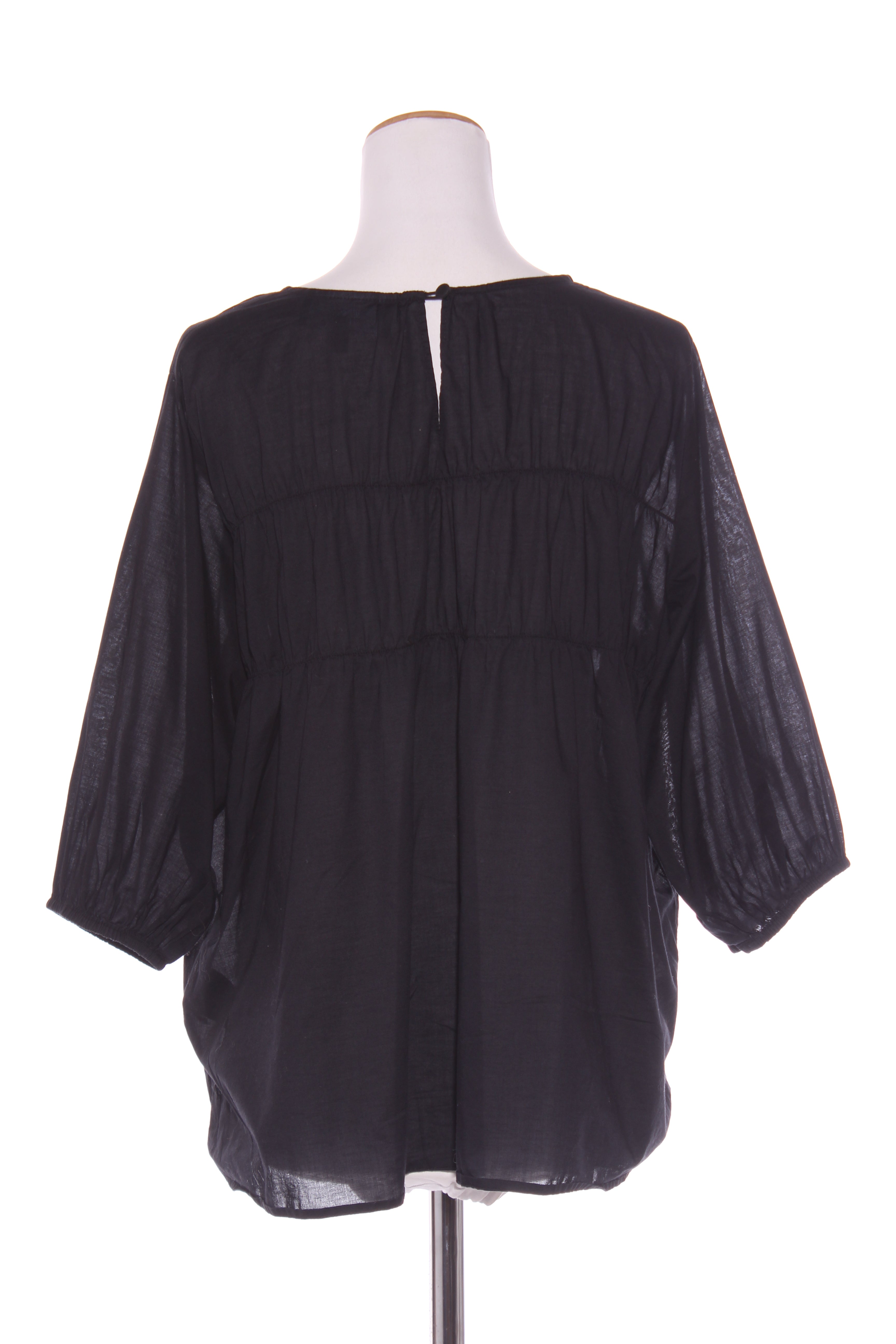 SIZE ON TAG: 12FITS LIKE: N/ACOLOUR: BlackFABRIC: Organic cottonCONDITION: Excellent prelovedMEASUREMENTS:BUST: 62cms WAIST: 71cms LENGTH: 68cmsNOTES: Made in NZ. Elasticated bust and sleeve end detail.