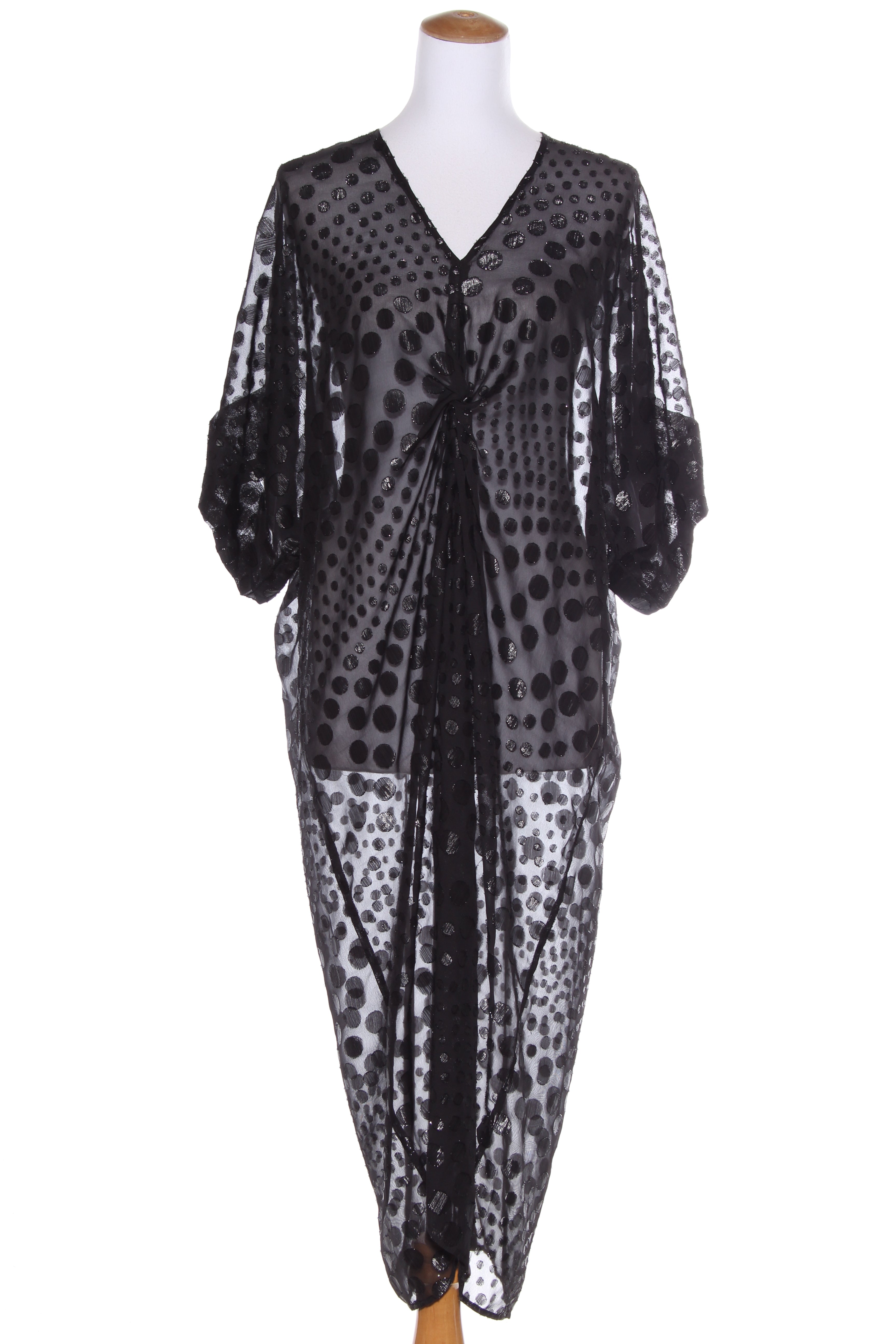 SIZE ON TAG: 8FITS LIKE: N/ACOLOUR: Black, white, goldFABRIC: 92% silk, 8% lycraCONDITION: Excellent preloved - hardly wornMEASUREMENTS:BUST: 46cms WAIST: 44cms LENGTH: 129-155cmsNOTES: be bold in...
