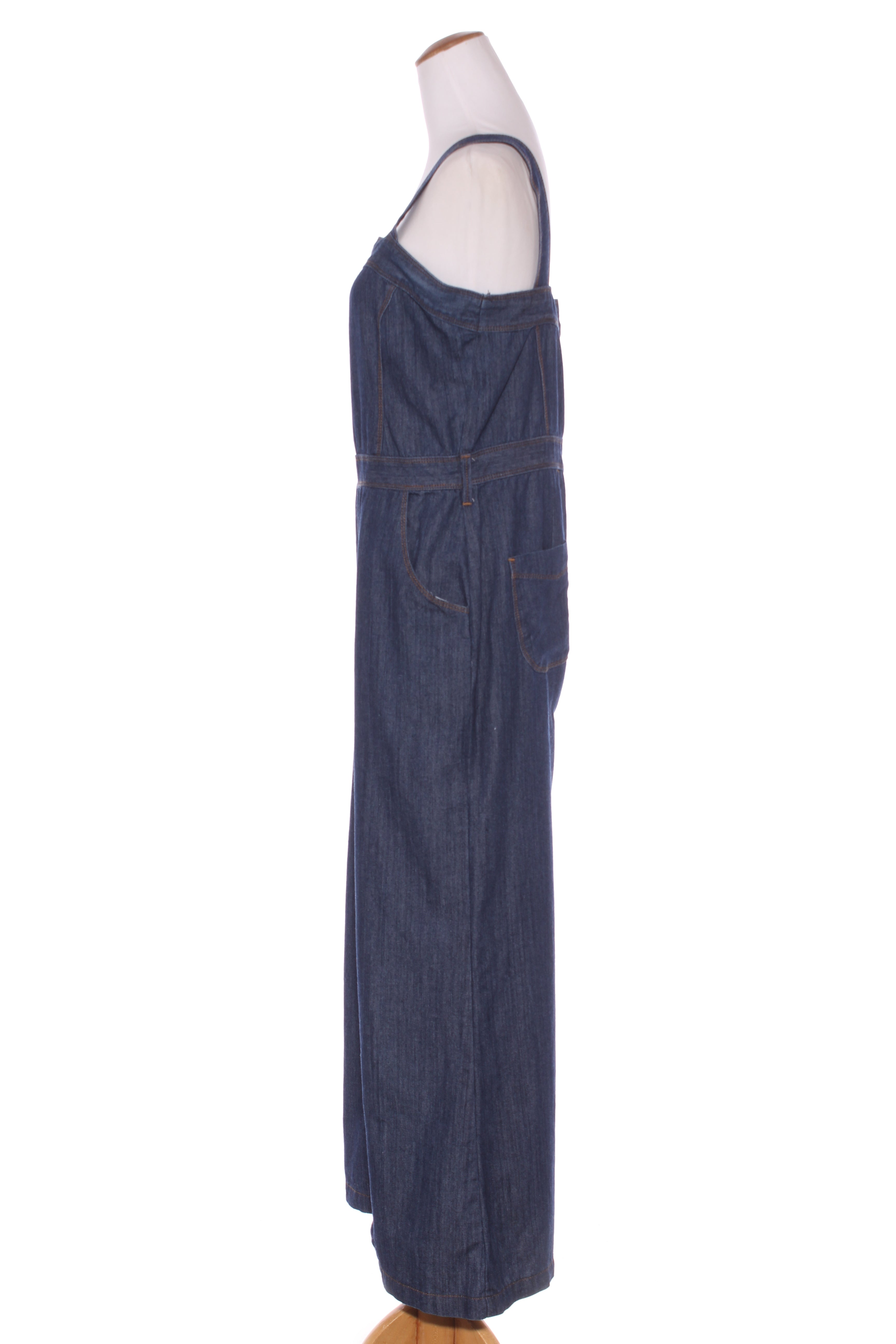 SIZE ON TAG: SFITS LIKE: 10COLOUR: BlueFABRIC: CottonCONDITION: Excellent prelovedMEASUREMENTS:BUST: Free WAIST: Free HIPS: 47cms LENGTH: 88cms NOTES: Button up sides. Has adjustable suspenders. Front...