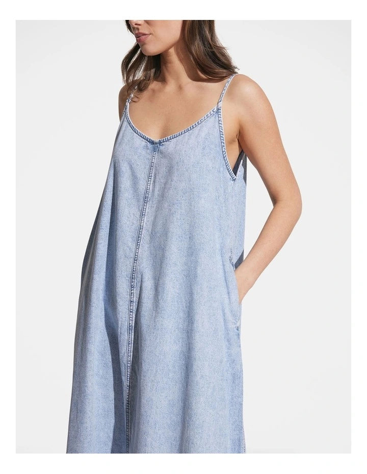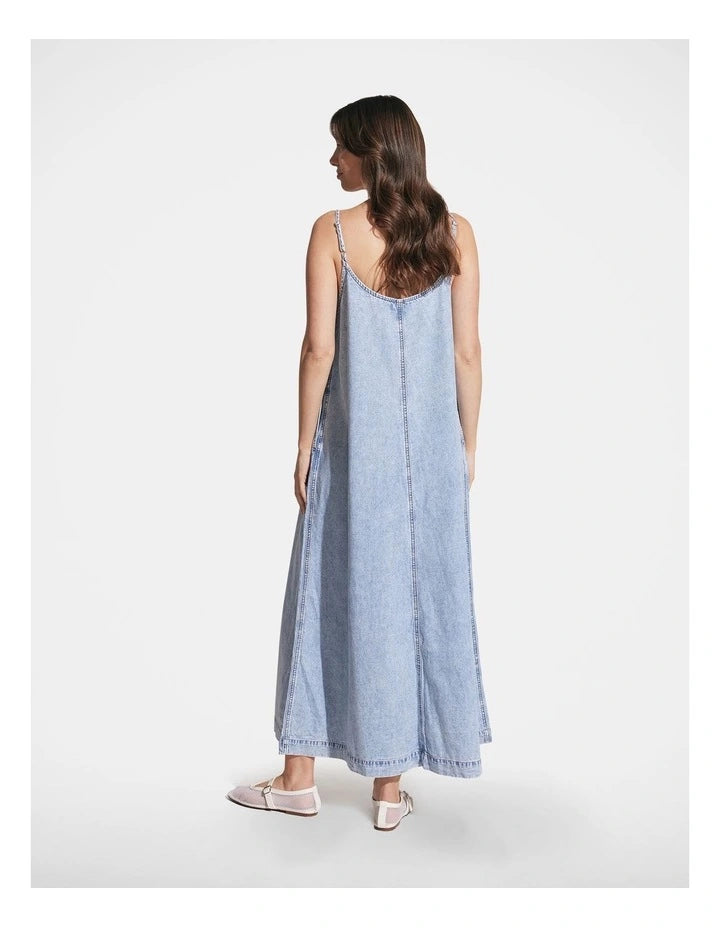 SIZE ON TAG: 14FITS LIKE: N/ACOLOUR: BlueFABRIC: CottonCONDITION: Excellent prelovedMEASUREMENTS:BUST: 53cms WAIST: 61cms LENGTH: 140cmsNOTES: Denim so good, youll love it forever. V neck maxi dress...