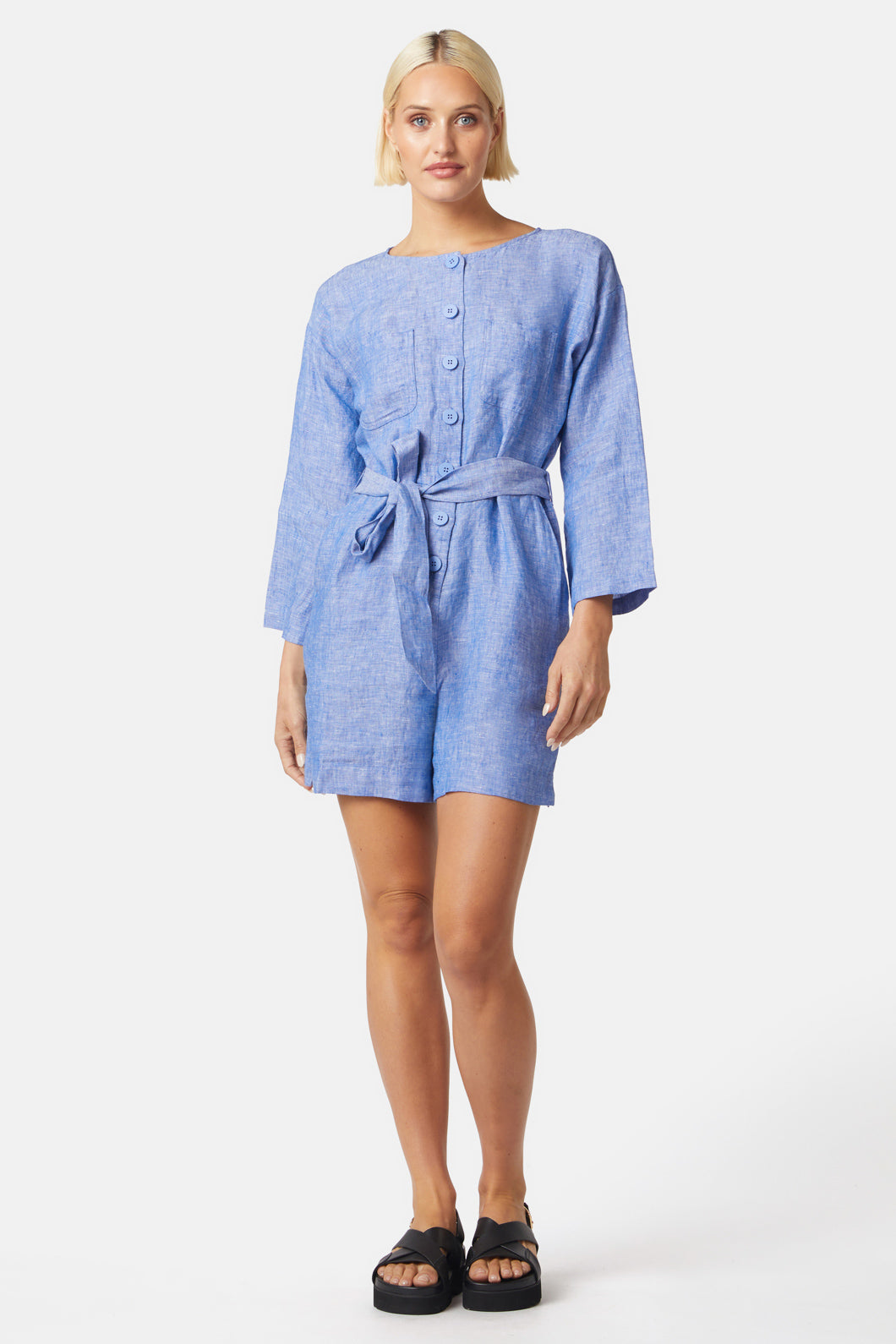 SALE ITEM - [NOT ELIGIBLE FOR RETURN] - Was $24SIZE ON TAG: 10FITS LIKE: 10-12COLOUR: BlueFABRIC: LinenCONDITION: Excellent prelovedMEASUREMENTS:BUST: 54cms WAIST: 53cms LENGTH: 74cmsNOTES: Button up...