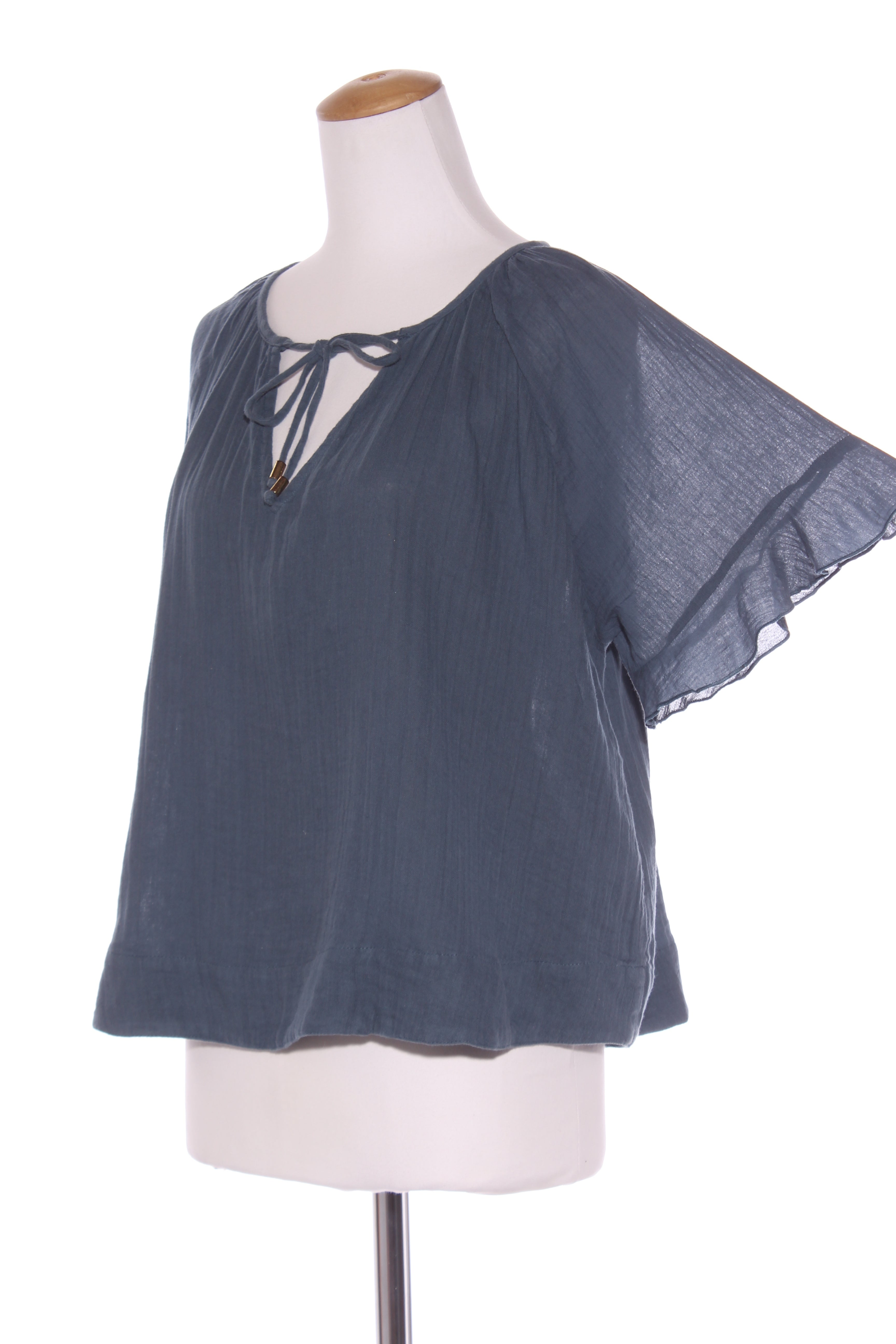 SIZE ON TAG: M/LFITS LIKE: 12-14COLOUR: Petrol blueFABRIC: Cotton gauzeCONDITION: Excellent prelovedMEASUREMENTS:BUST: 66cms WAIST: 68cms LENGTH: 57cmsNOTES: A soft, floaty feminine summer blouse. Gorgeous, cool, relaxed...