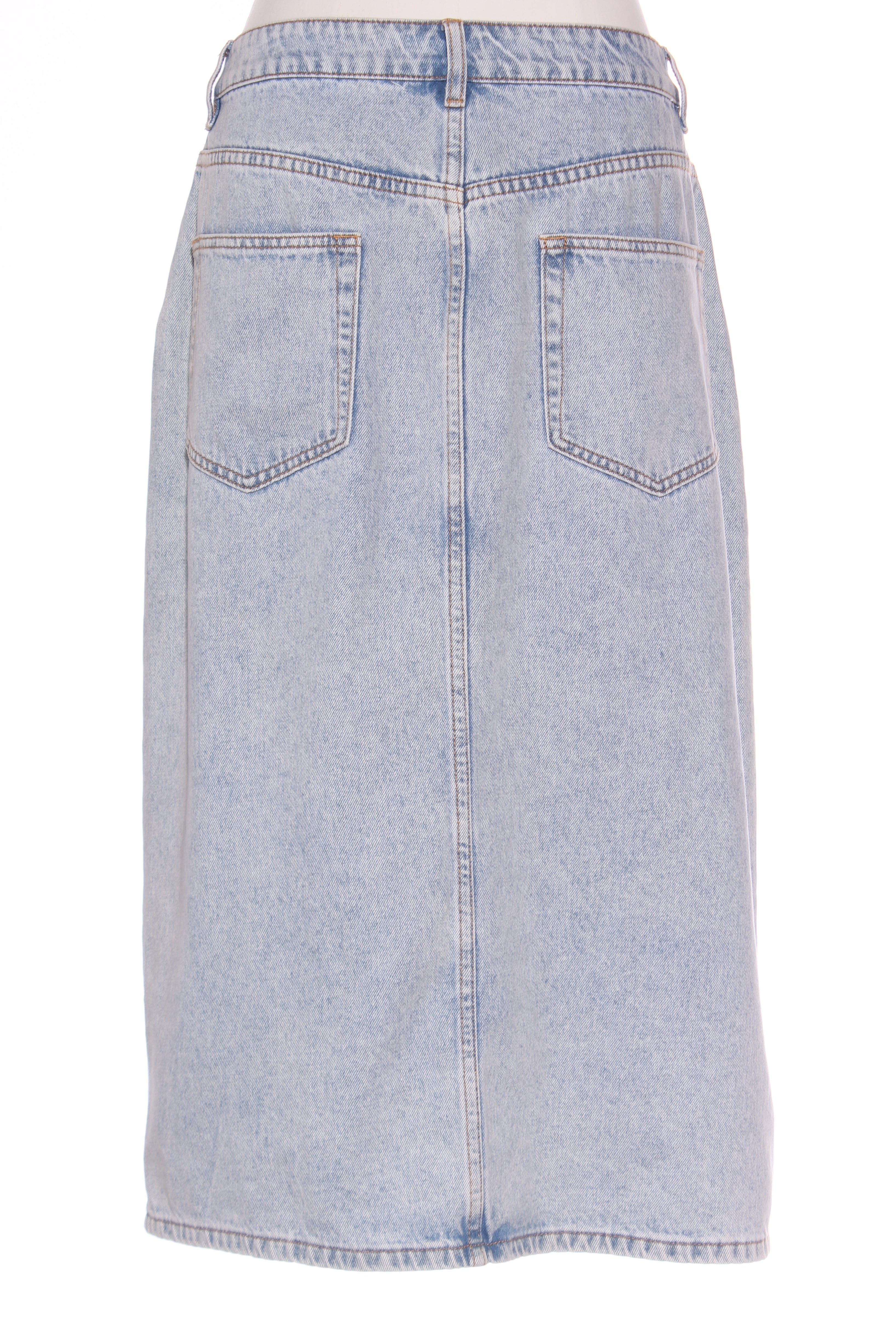 SIZE ON TAG: 14FITS LIKE: N/ACOLOUR: BlueFABRIC: Cotton, polyester, viscoseCONDITION: Excellent prelovedMEASUREMENTS:WAIST: 42cms HIPS: 55cms LENGTH: 74cmsNOTES: Button and zip up front.l. Front and back pockets. ...