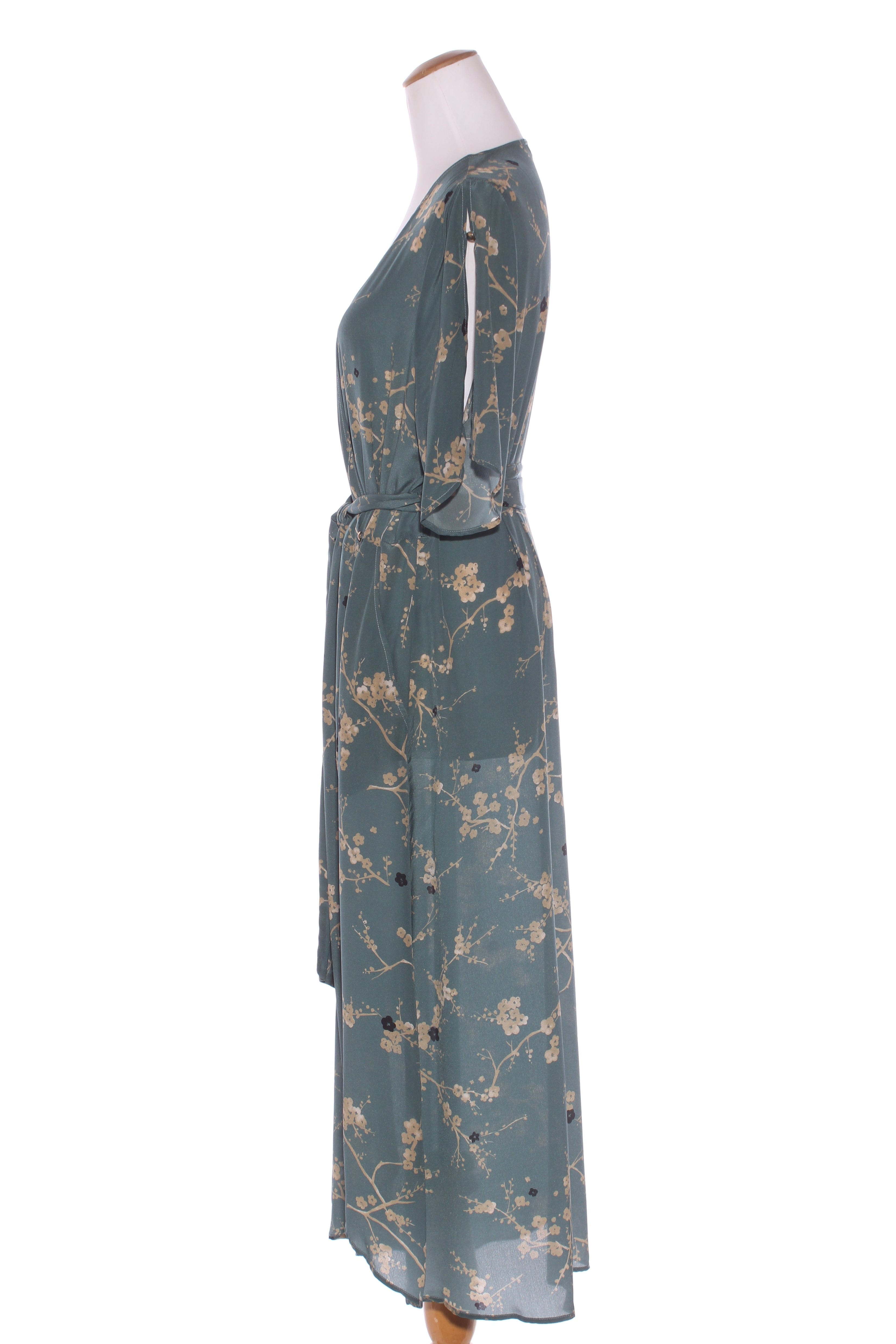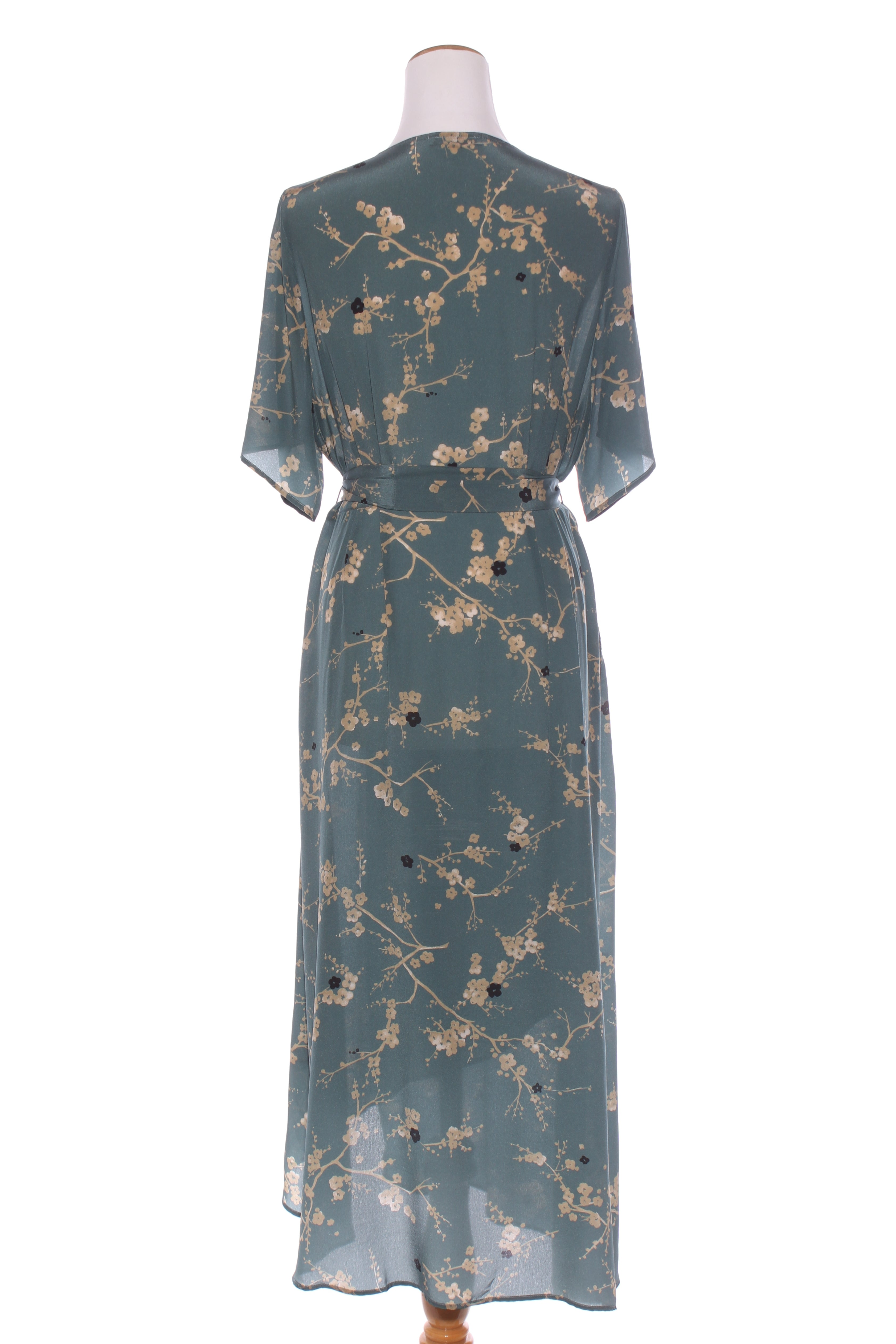 SIZE ON TAG: LFITS LIKE: 14COLOUR: Teal, beige, blackFABRIC: SilkCONDITION: Excellent prelovedMEASUREMENTS:BUST: 57cms WAIST: 46cms LENGTH: 110-130cms NOTES: Made in NZ. Wrap buttons and ties in...