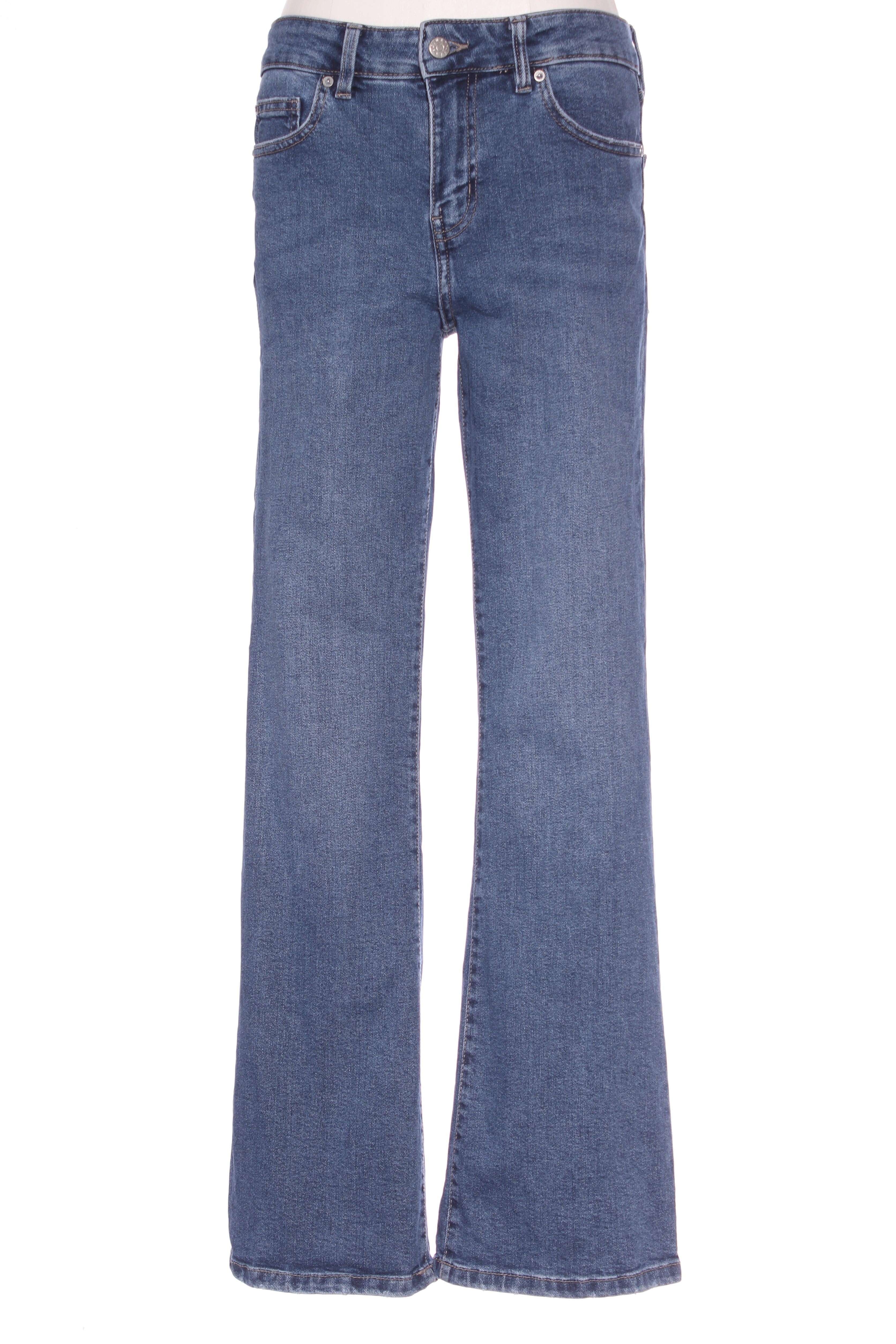 SIZE ON TAG: 10PFITS LIKE: 10COLOUR: BlueFABRIC: 94% cotton, 5% polyester, 1% elastaneCONDITION: Excellent prelovedMEASUREMENTS:WAIST: 39cms HIPS: 46cms RISE: 26cms LENGTH: 77cms (From crotch...
