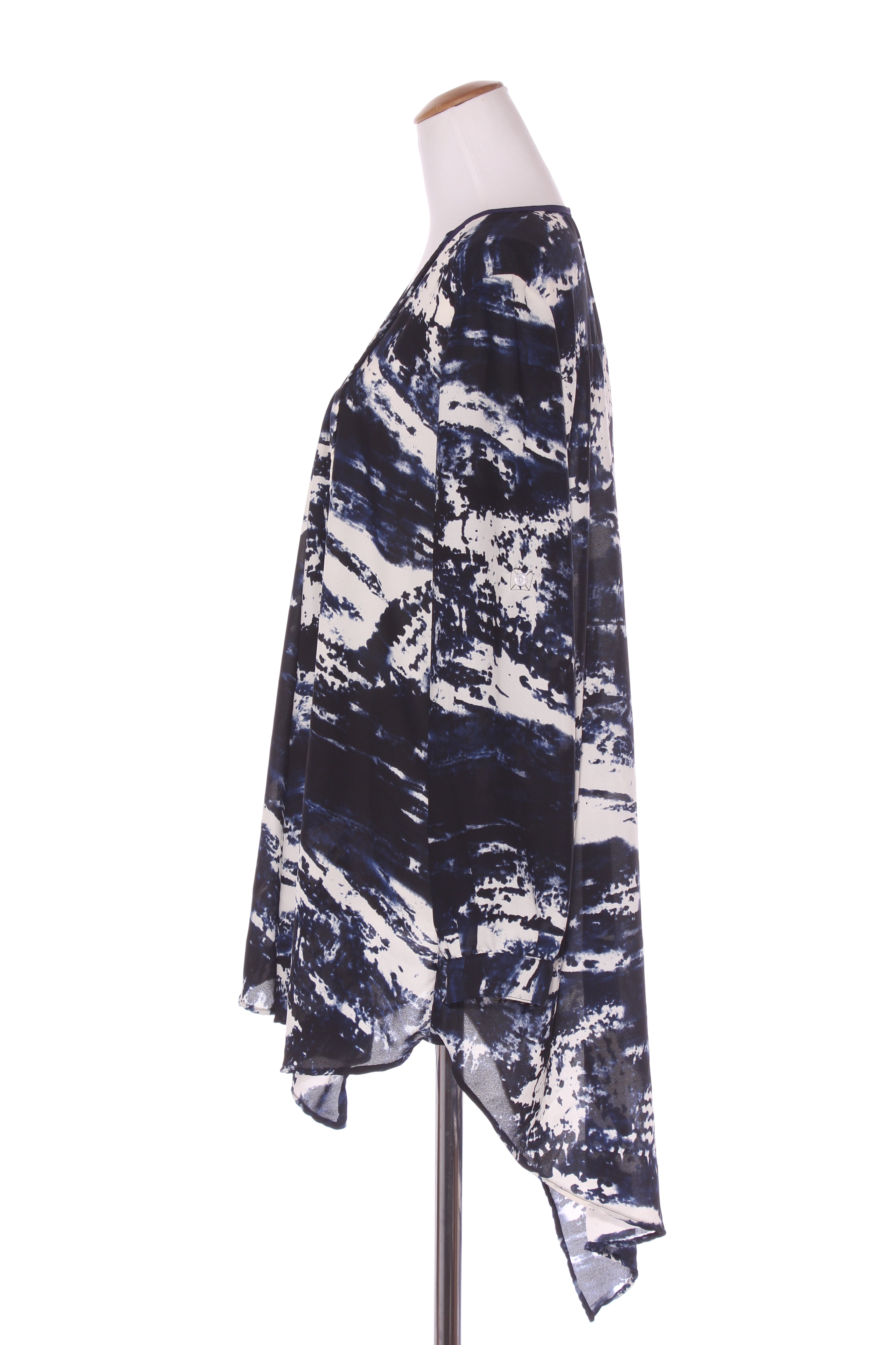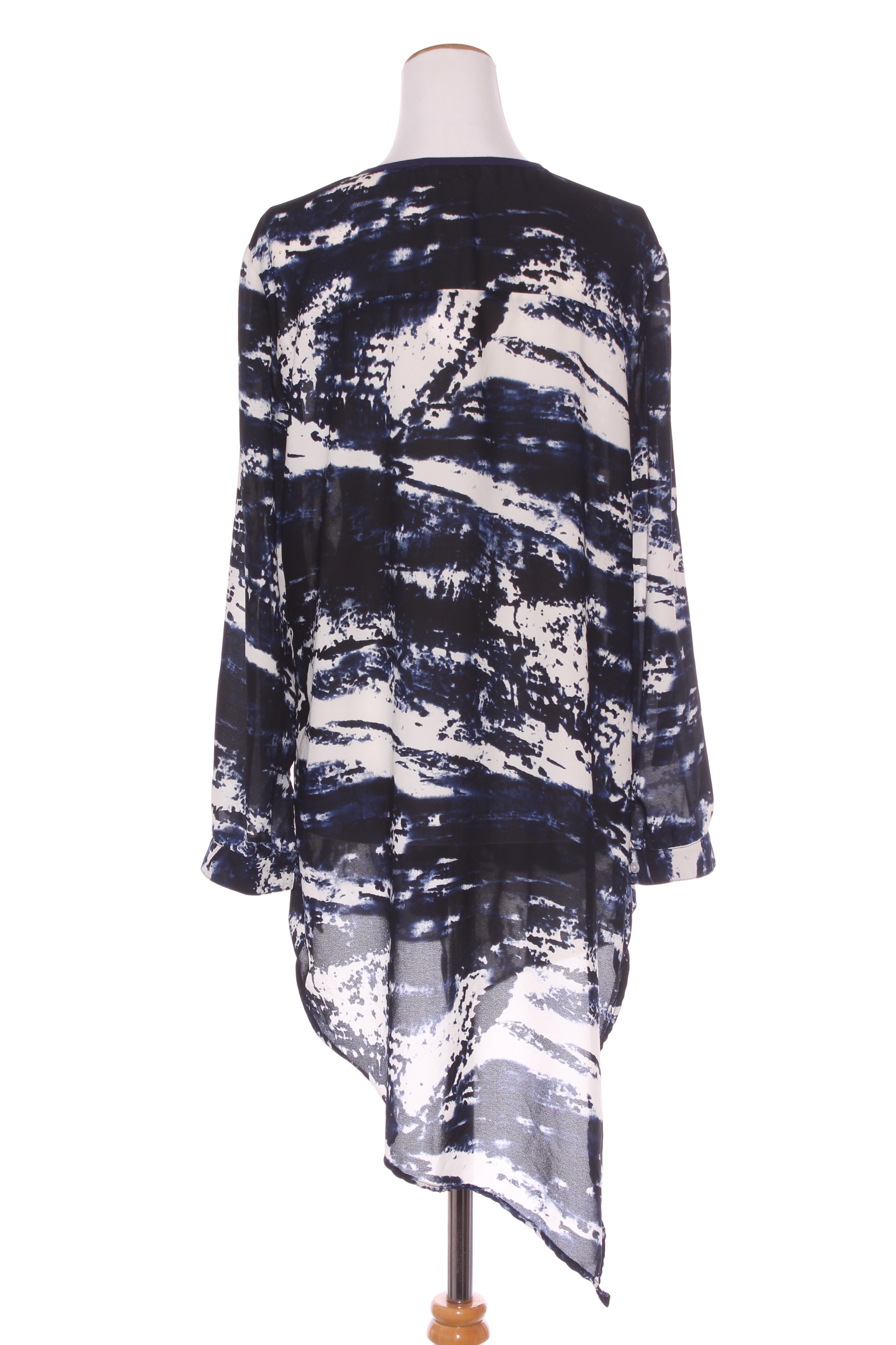 SIZE ON TAG: 16FITS LIKE: N/ACOLOUR: Black, blue, whiteFABRIC: PolyesterCONDITION: Like newMEASUREMENTS:BUST: 55cms WAIST: 57cms LENGTH: 82-114cms NOTES: Button up sleeve ends.