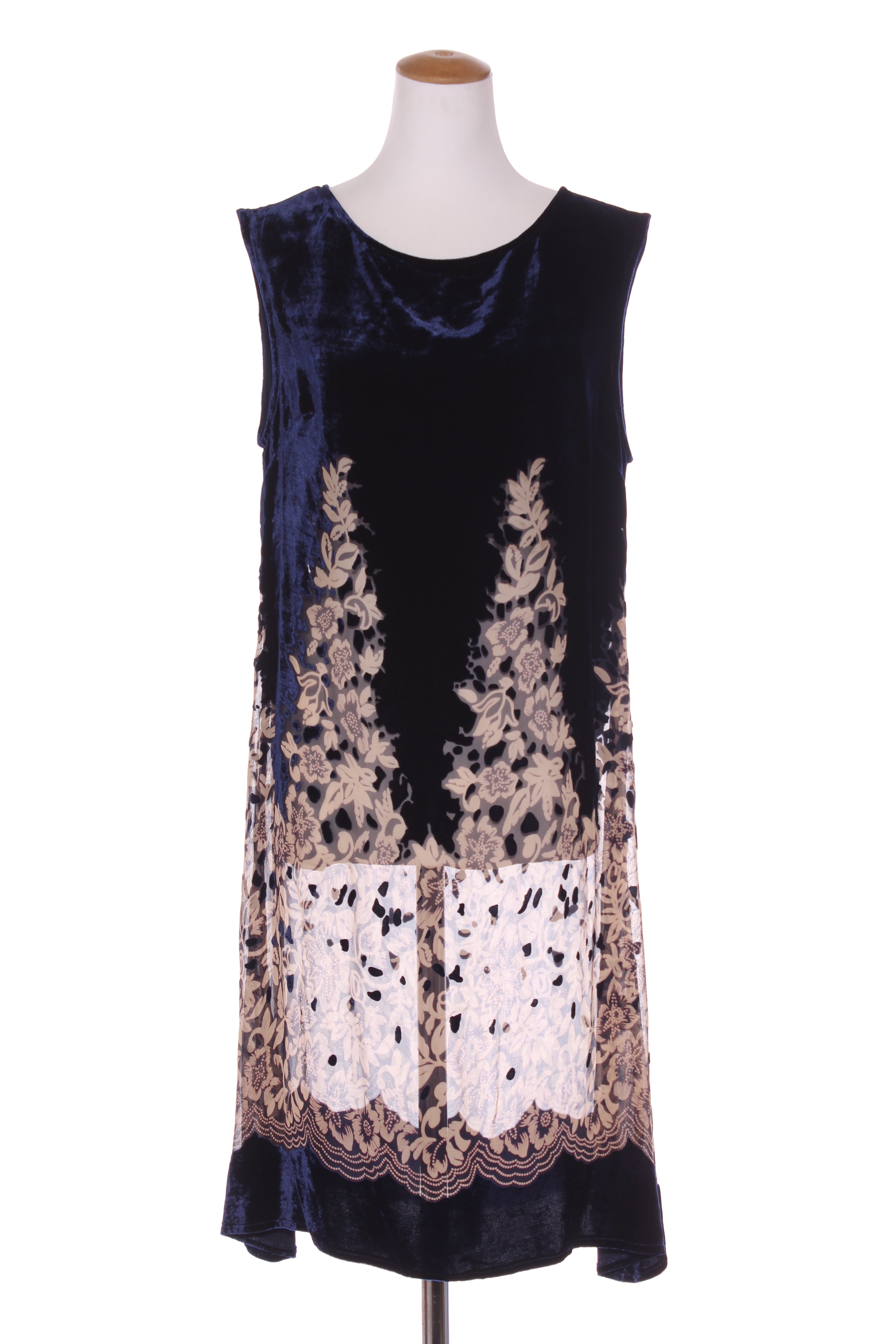 SIZE ON TAG: 4FITS LIKE: 14COLOUR: Navy blue, beigeFABRIC: 82% rayon, 18% silkCONDITION: Excellent prelovedMEASUREMENTS:BUST: 53cms WAIST: 51cms LENGTH: 107cms NOTES: Australian label. Pull over style. ...
