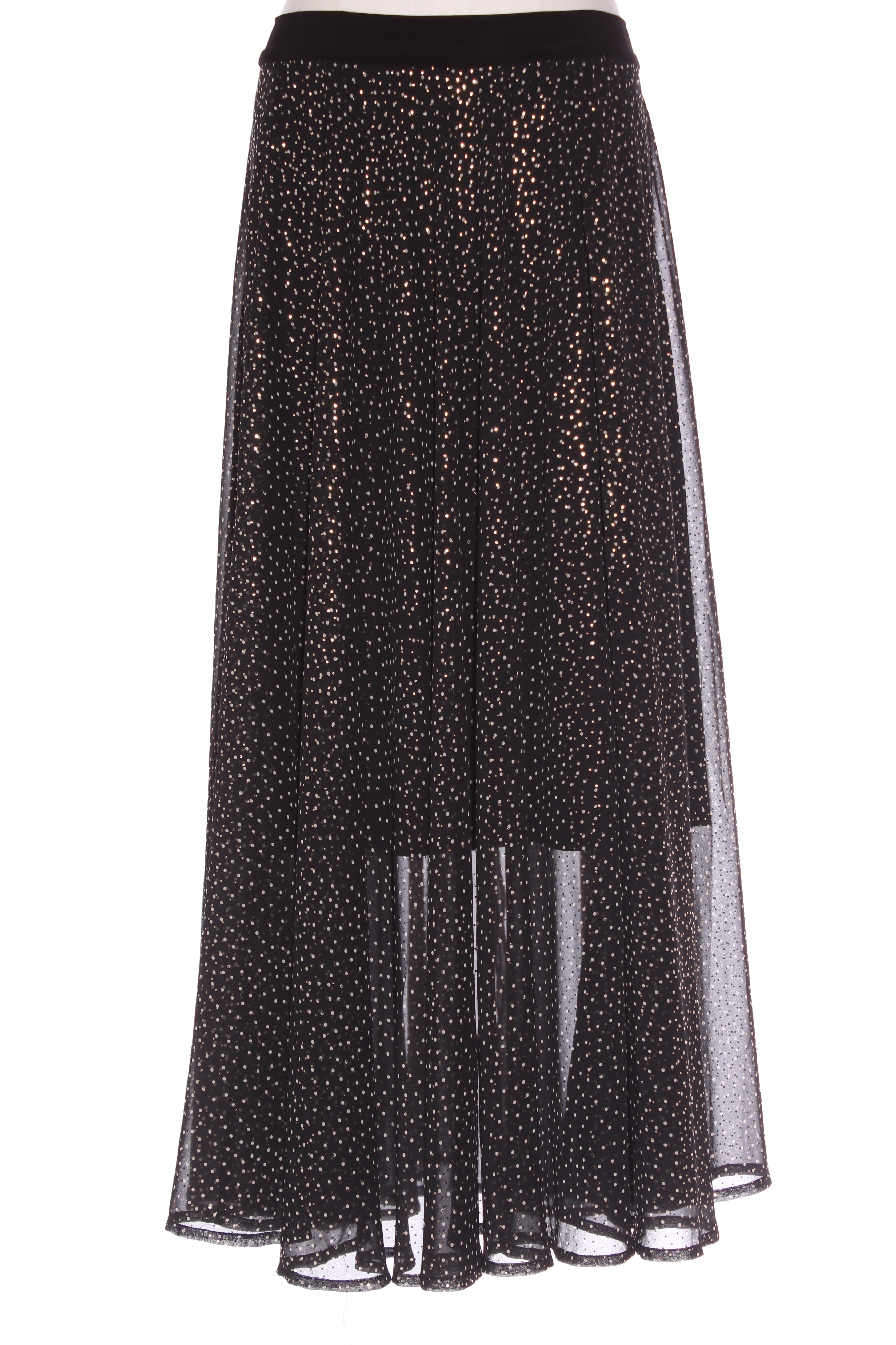 SIZE ON TAG: 14FITS LIKE: N/ACOLOUR: Black, gold, whiteFABRIC: PolyesterCONDITION: Excellent prelovedMEASUREMENTS:WAIST: 40cms HIPS: 57cms LENGTH: 91cms NOTES: Back hook 'n' eye and zip access. Elasticated waist. ...