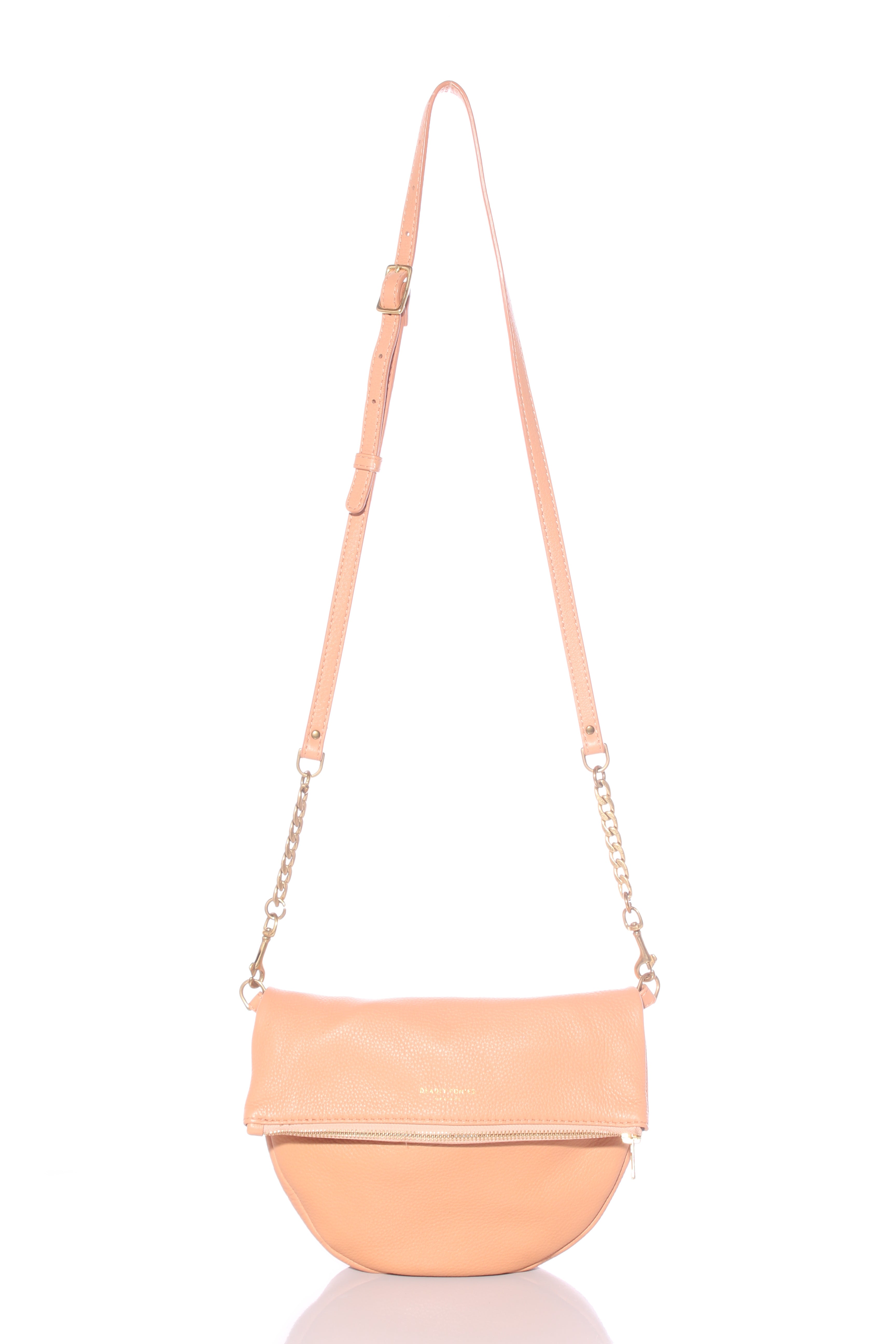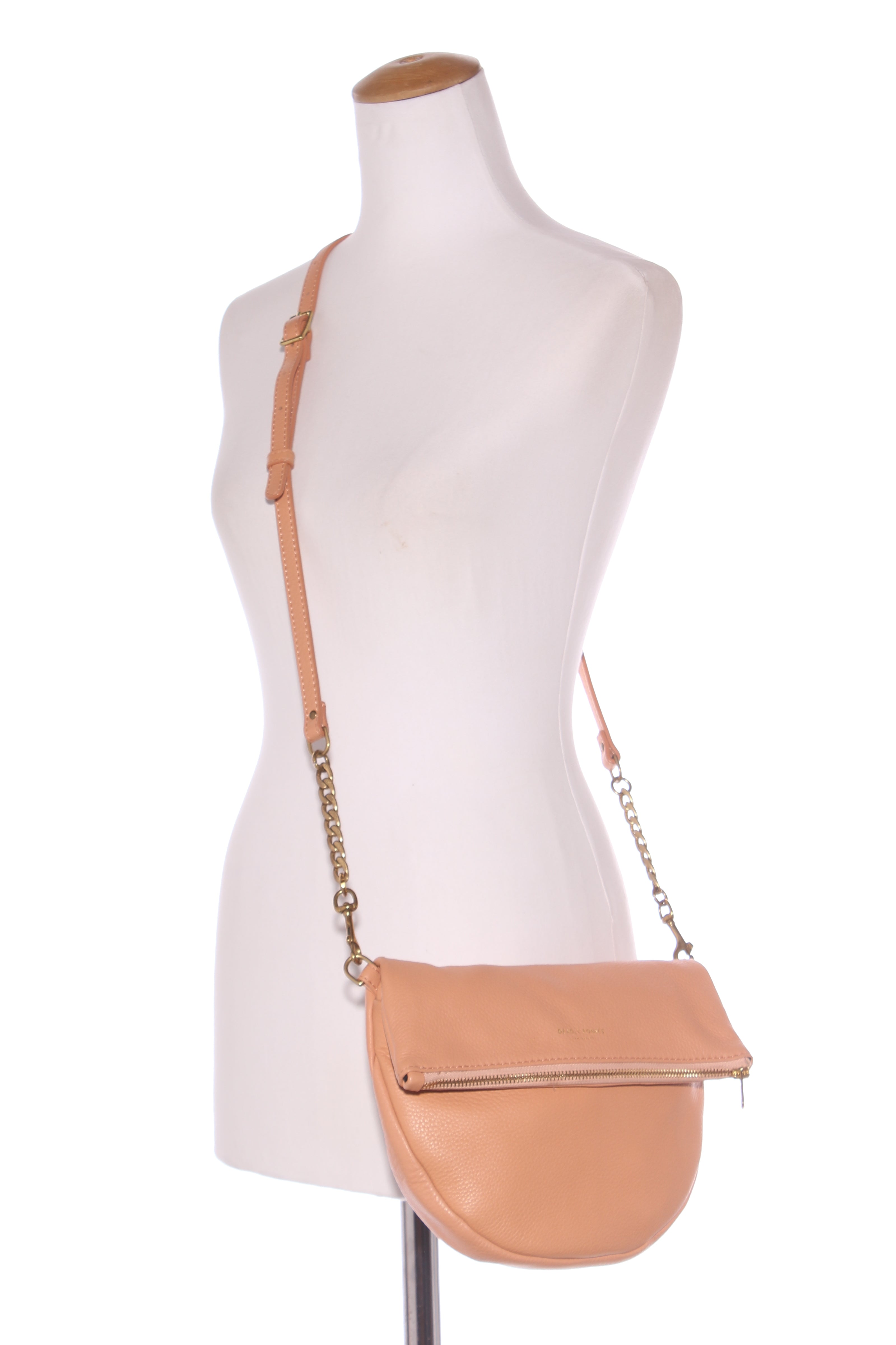 COLOUR: Peach caramelFABRIC: Leather, textile lining, brassCONDITION: Excellent prelovedMEASUREMENTS:HEIGHT: 19cms WIDTH: 26cms DEPTH: 5cms STRAP: 111-129cms NOTES: Buttery Ironed Calf Nappa shapes the slimline...