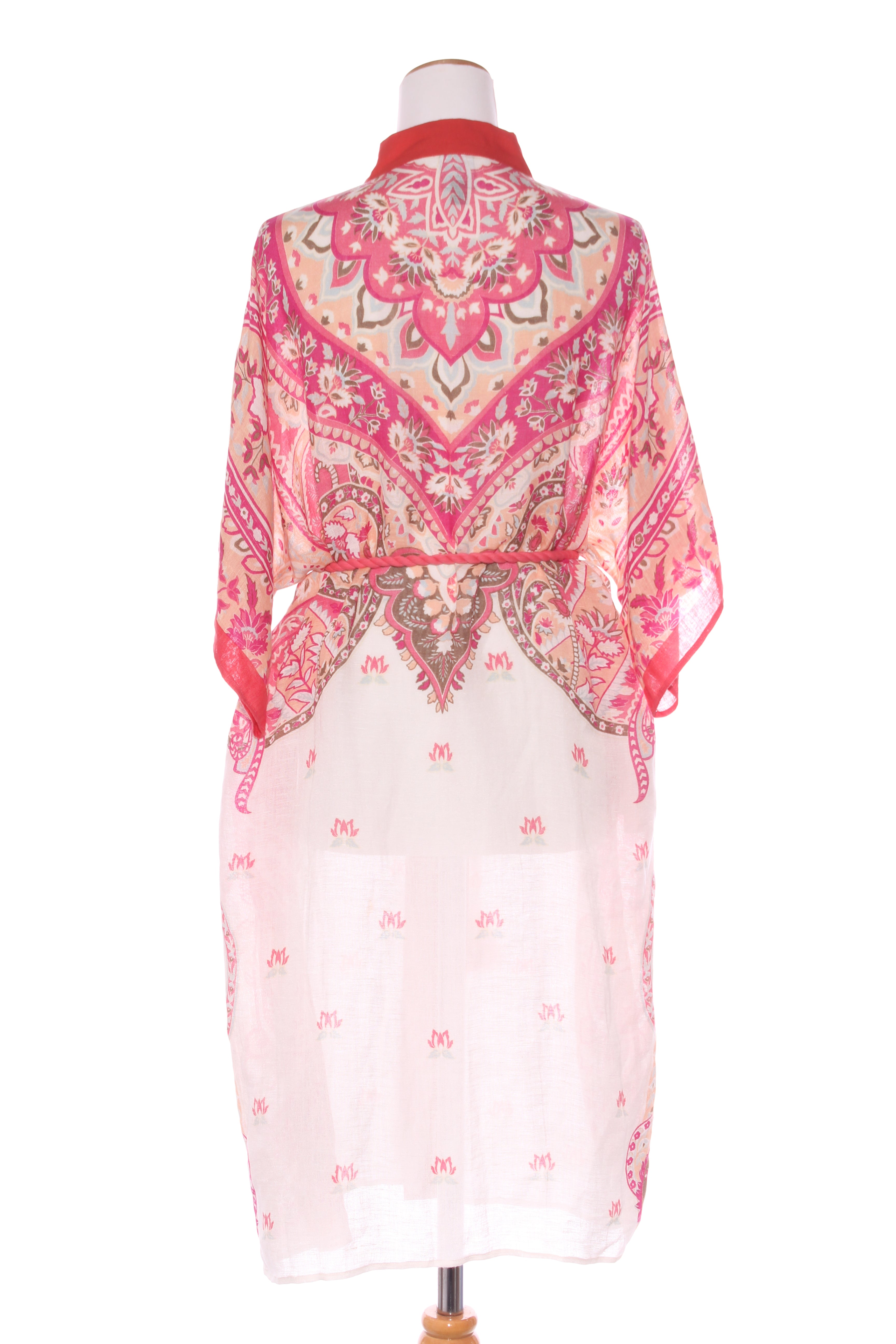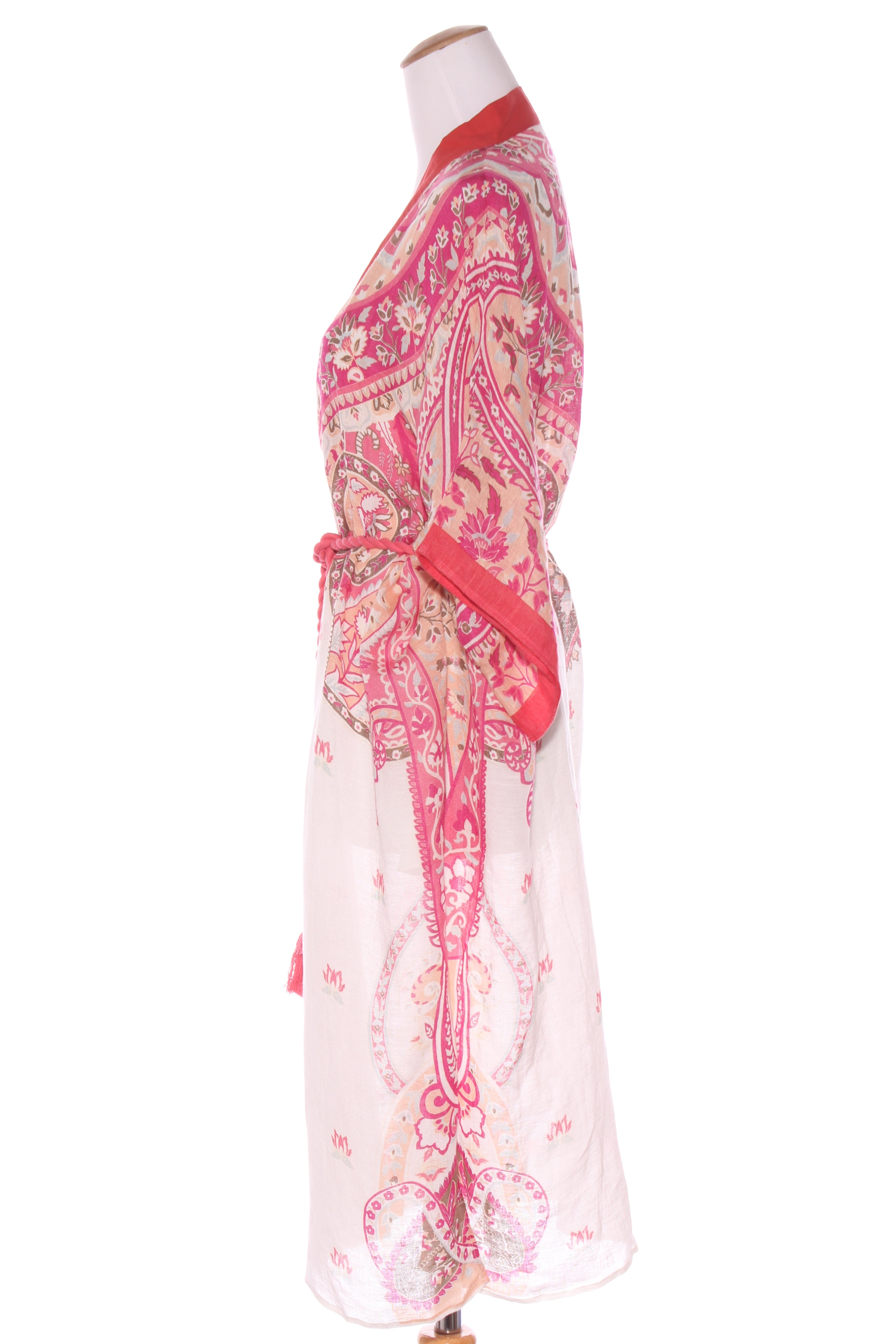 SALE ITEM - [NOT ELIGIBLE FOR RETURN] - Was $42SIZE ON TAG: O/SFITS LIKE: 8-18COLOUR: Pink, multi, whiteFABRIC: 63% linen, 37% modalCONDITION: Excellent prelovedMEASUREMENTS:BUST: Free WAIST: Free ...