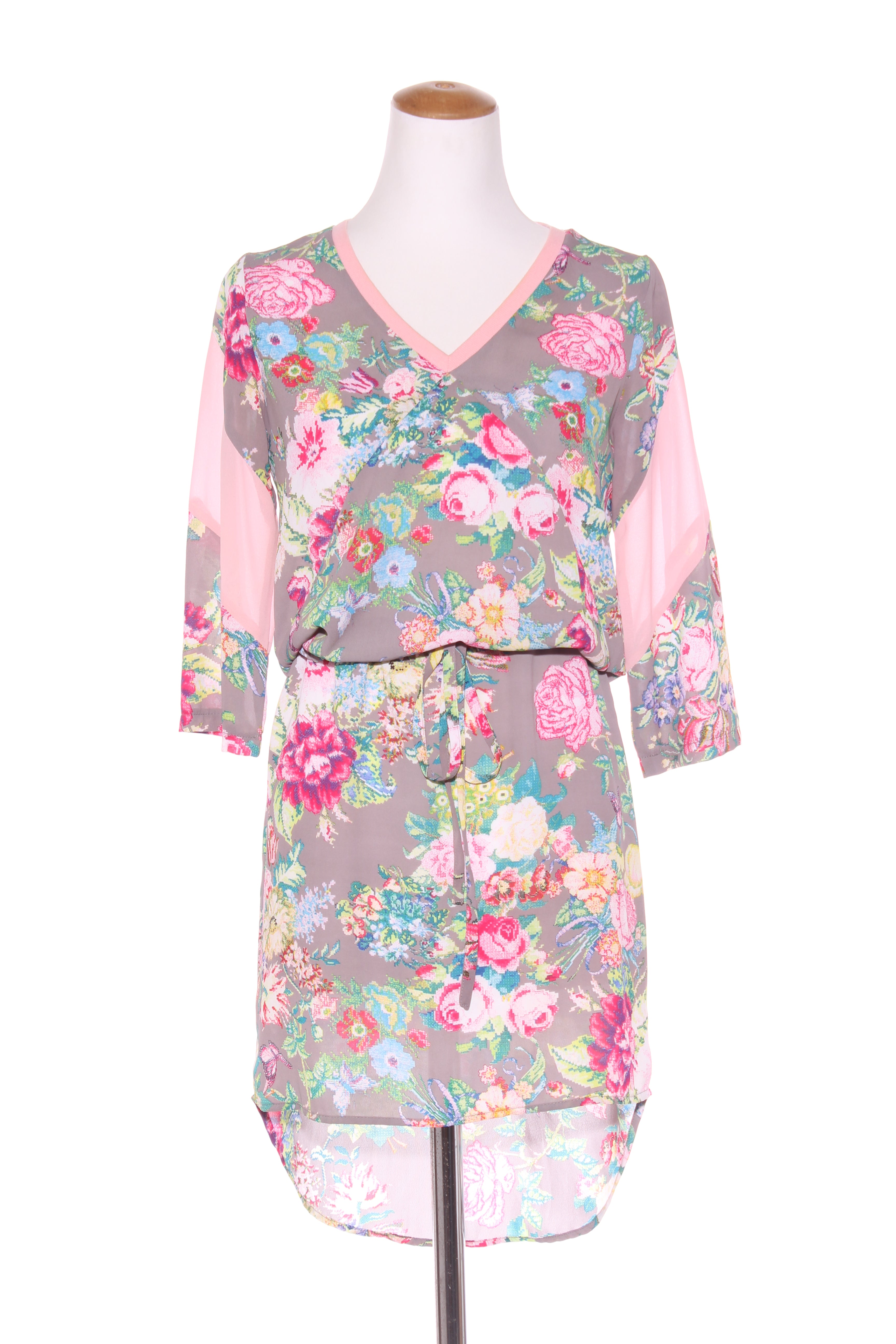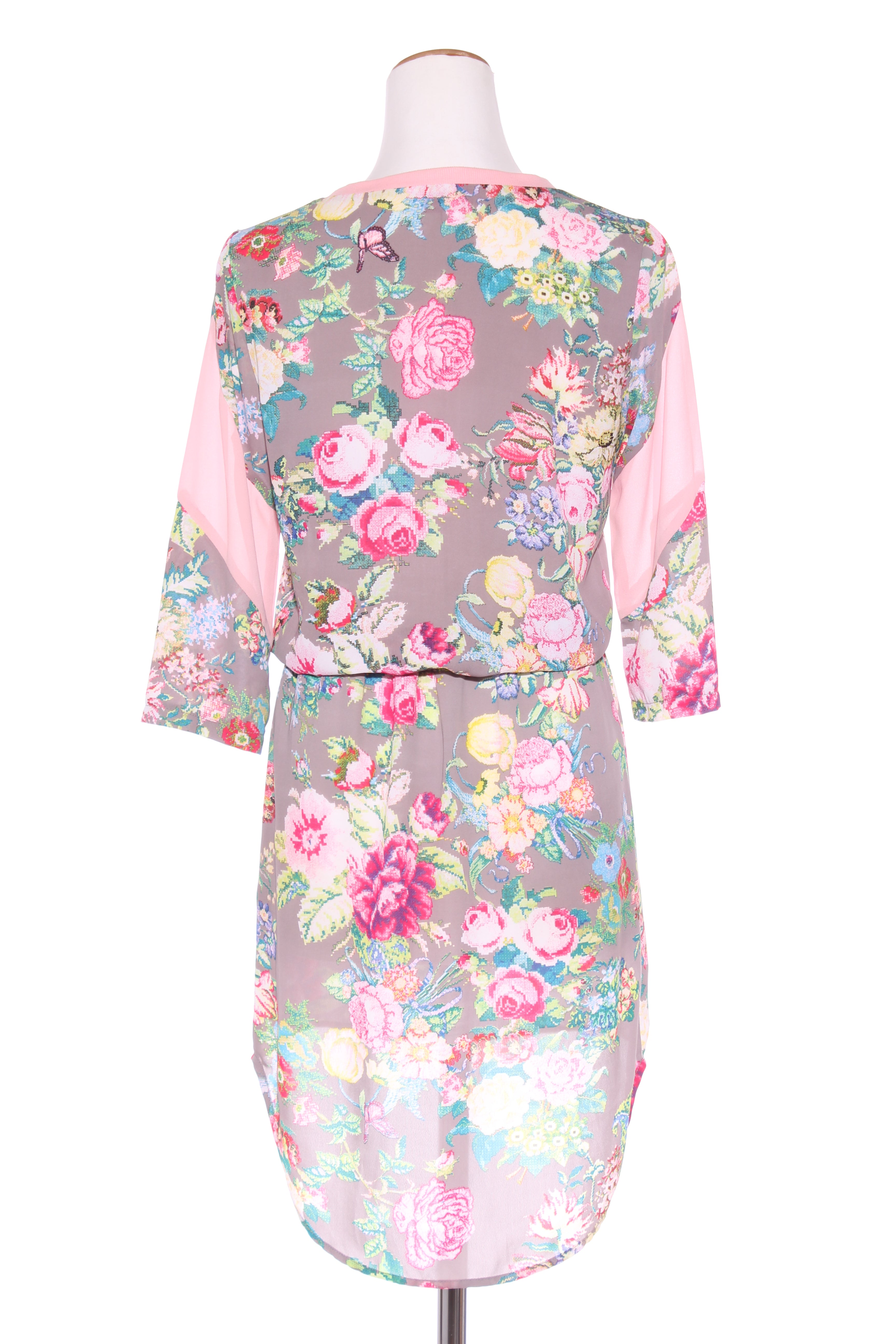 SIZE ON TAG: LFITS LIKE: 14COLOUR: Pink, multiFABRIC: ViscoseCONDITION: Excellent prelovedMEASUREMENTS:BUST: Free WAIST: 59cms LENGTH: 122-130cms NOTES: "I think in pink - Dream to dance" Spring...