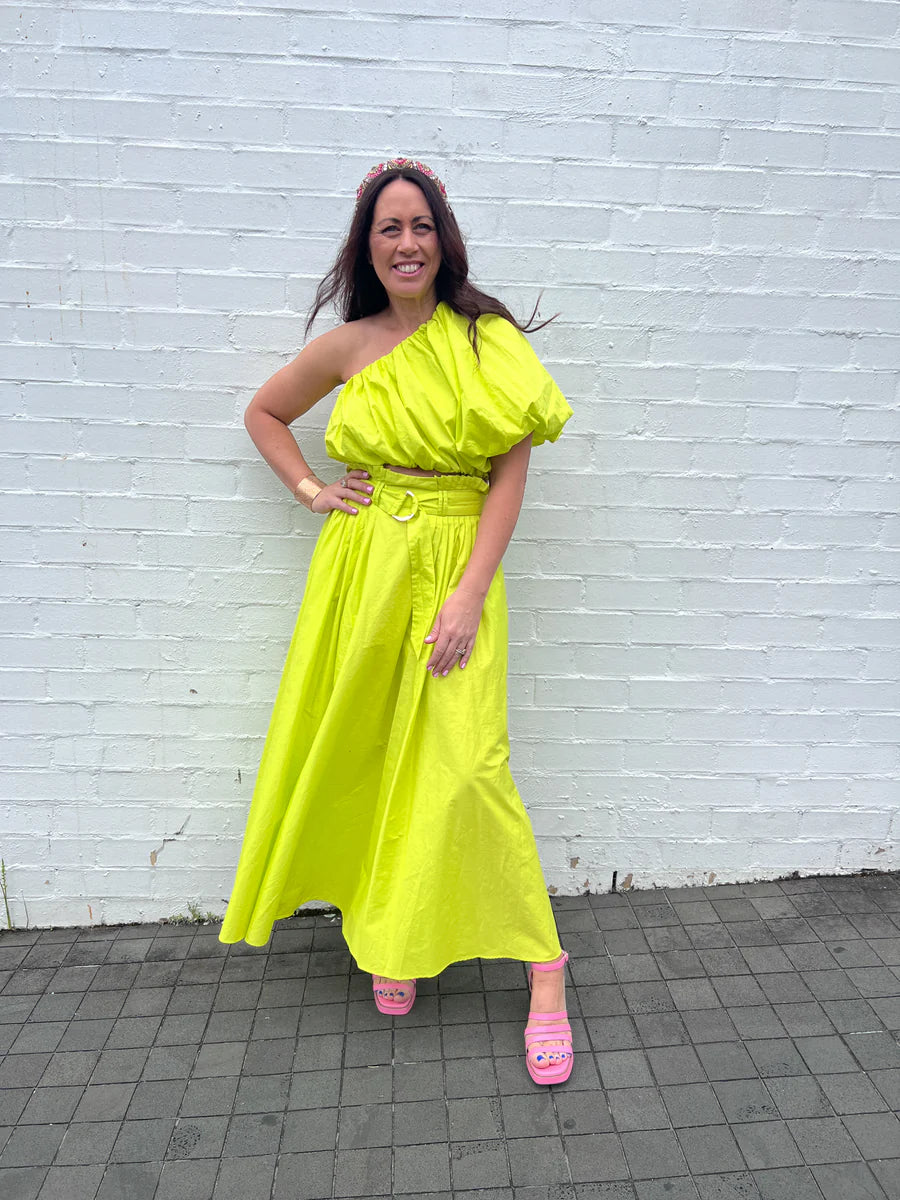 SALE ITEM - [NOT ELIGIBLE FOR RETURN] - Was $85SIZE ON TAG: MFITS LIKE: 12COLOUR: Pink, chartreuseFABRIC: 90% rayon, 10% polyesterCONDITION: Excellent prelovedMEASUREMENTS:WAIST: 34cms HIPS: 55cms ...