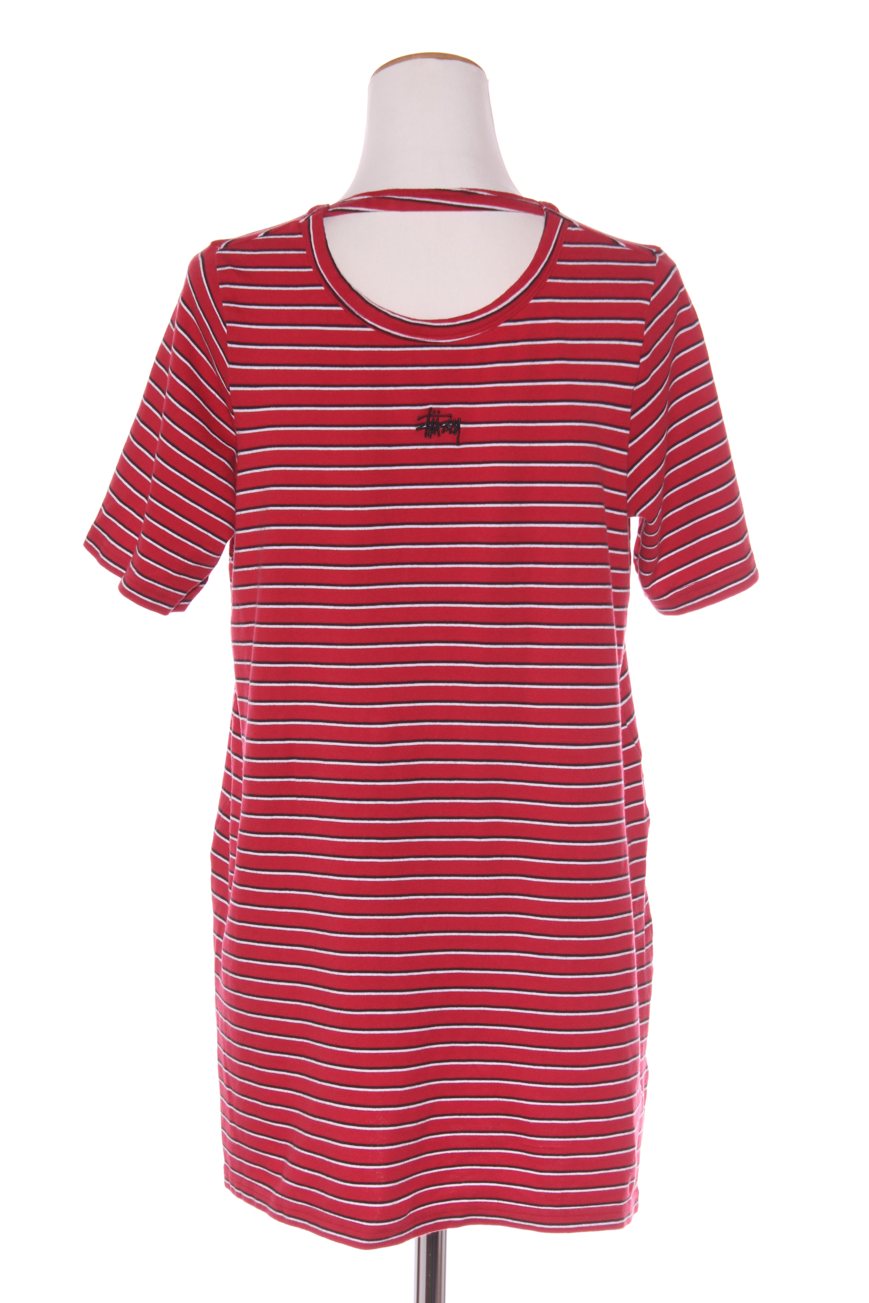 SIZE ON TAG: Not statedFITS LIKE: 10COLOUR: Red, black, whiteFABRIC: Cotton, elastaneCONDITION: Excellent prelovedMEASUREMENTS:BUST: 53cms WAIST: 54cms LENGTH: 78cms NOTES: Fabric has stretch.