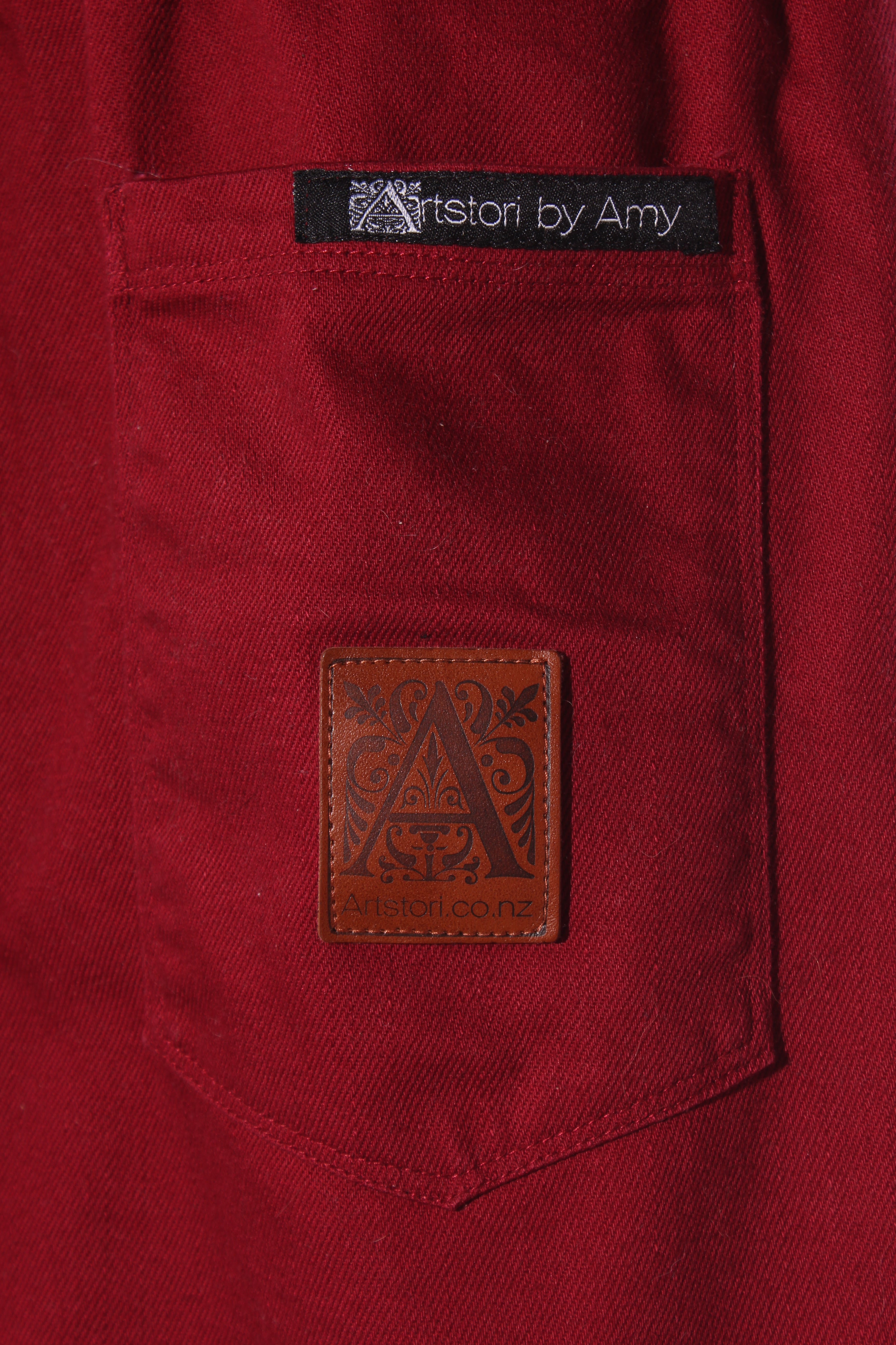 SIZE ON TAG: LFITS LIKE: 14COLOUR: RedFABRIC: Not stated, cottonCONDITION: Excellent prelovedMEASUREMENTS:WAIST: 41cms HIPS: 55cms LENGTH: 45cms NOTES: Made in NZ. Elasticated waist. Front pockets. Faux back...