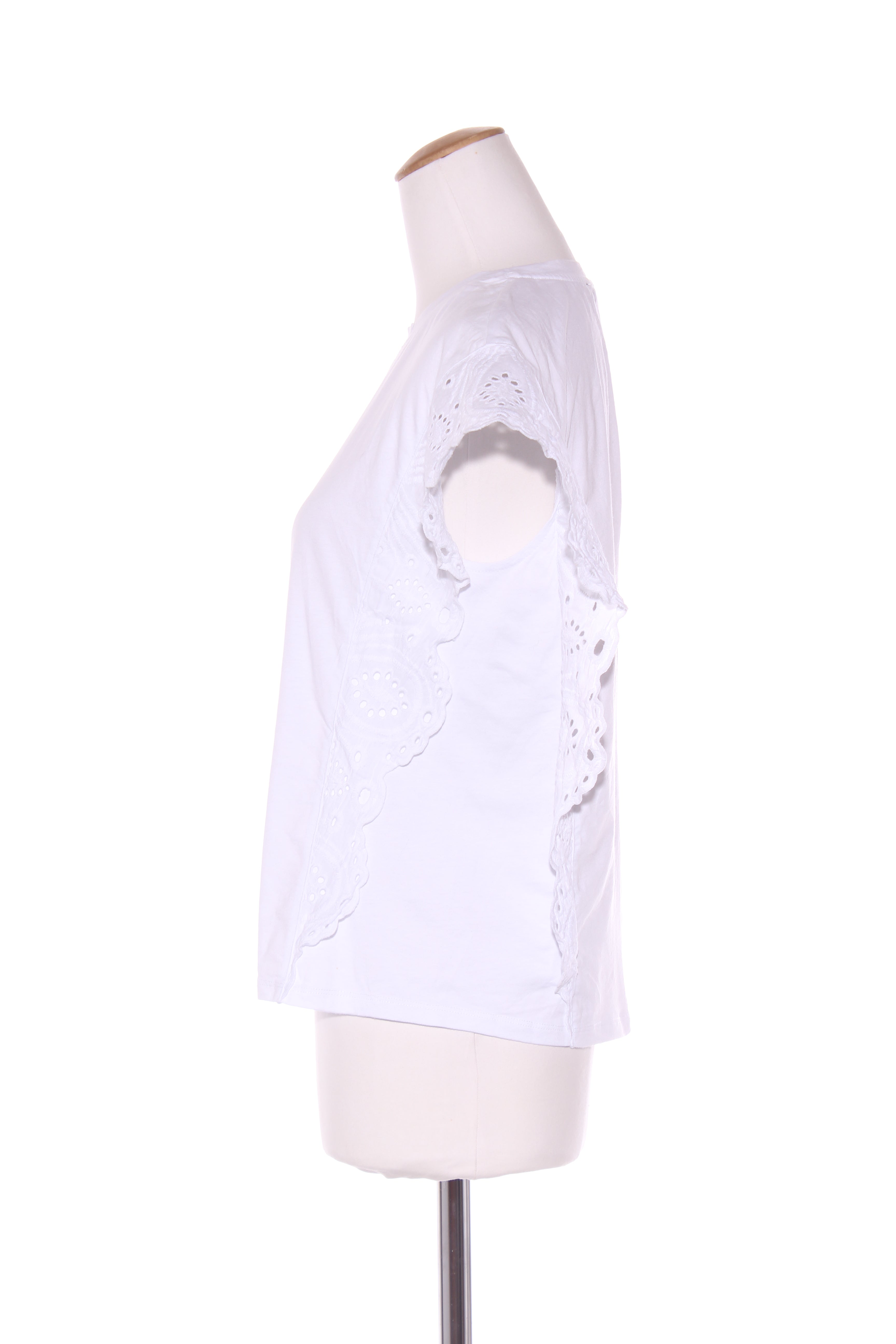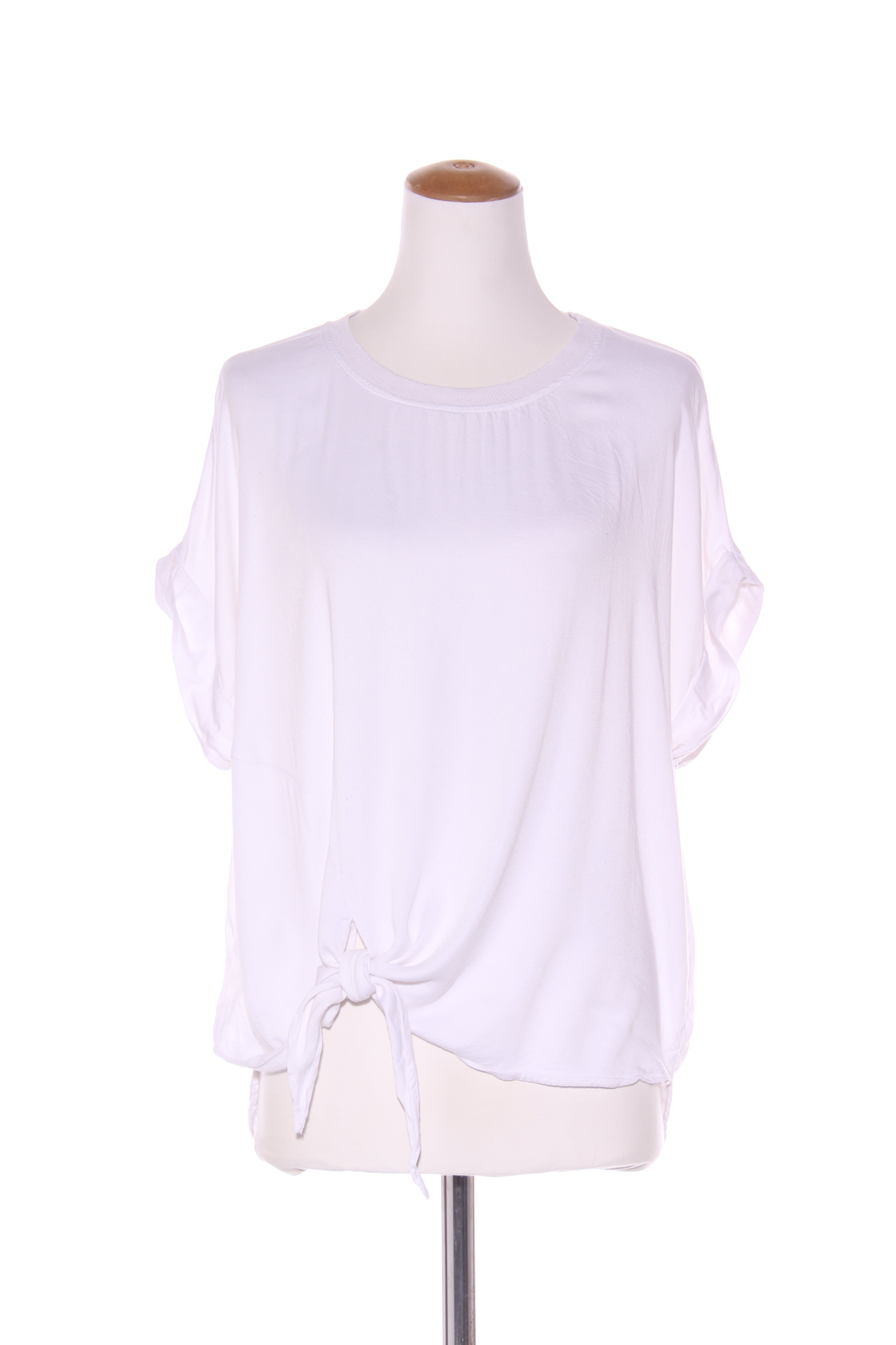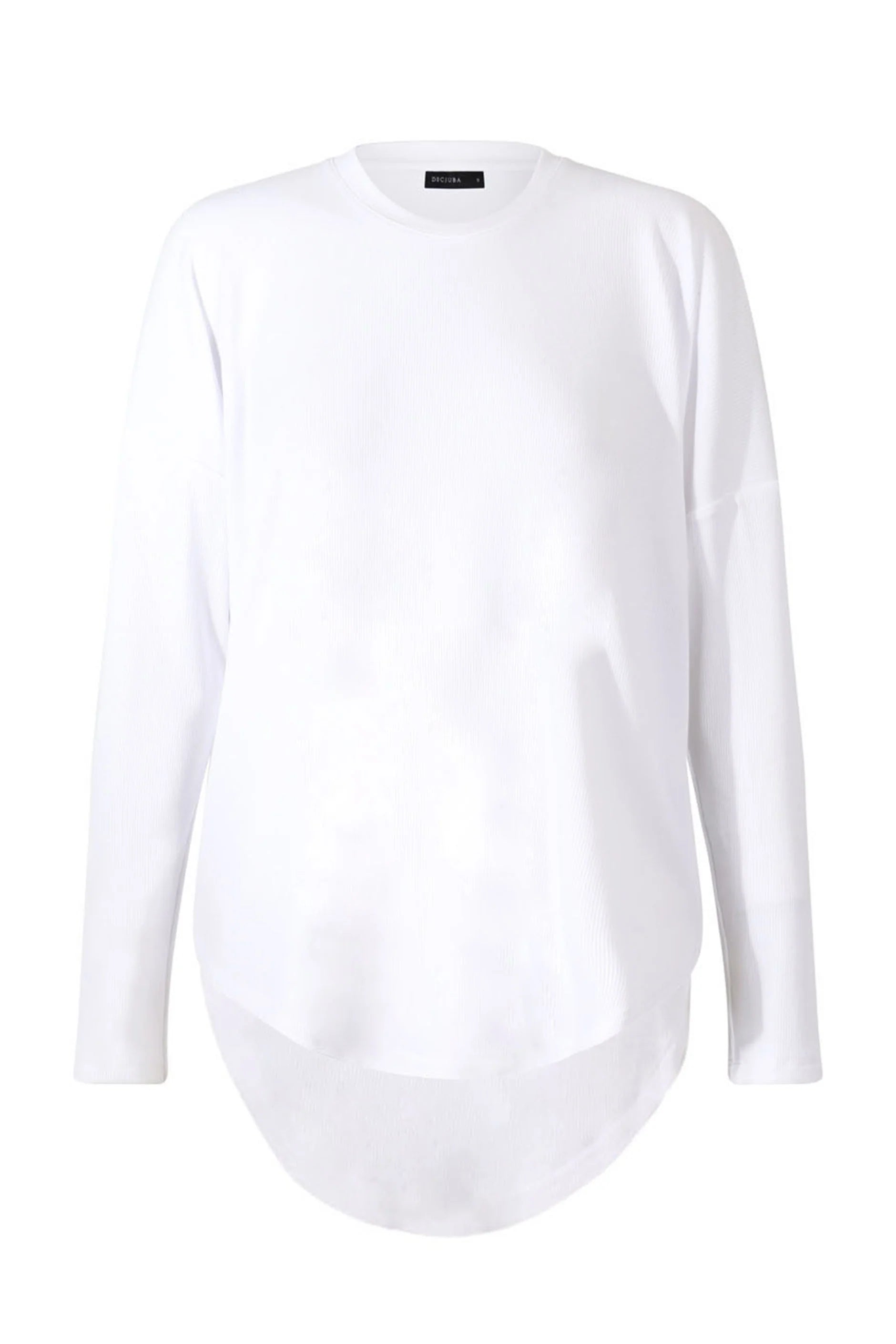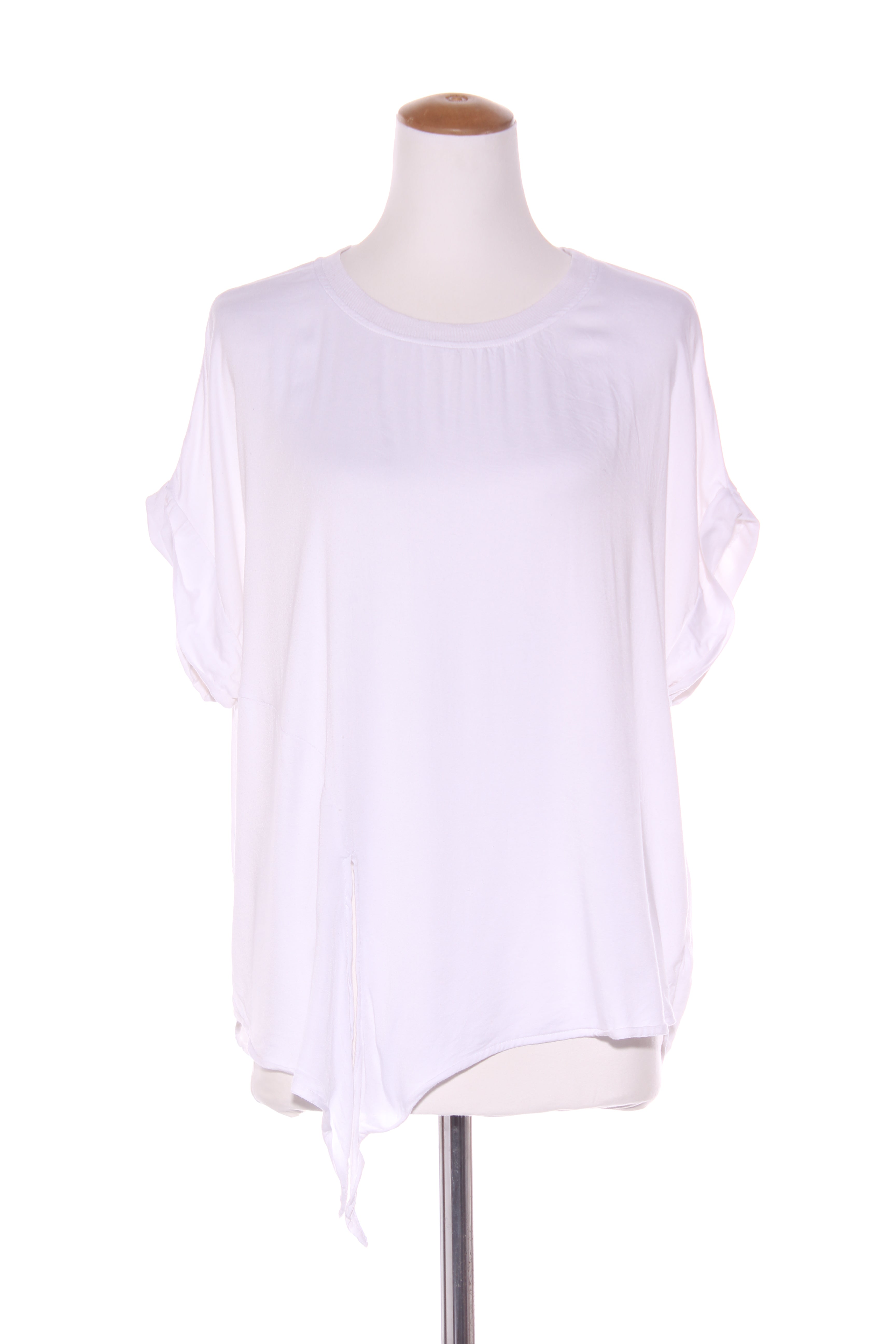 SIZE ON TAG: MFITS LIKE: 12COLOUR: WhiteFABRIC: 65% polyester, 30% viscose, 5% elastaneCONDITION: Excellent prelovedMEASUREMENTS:BUST: 60cms WAIST: 56cms LENGTH: 68-89cms NOTES: Crew neck Relaxed fit Ribbed...