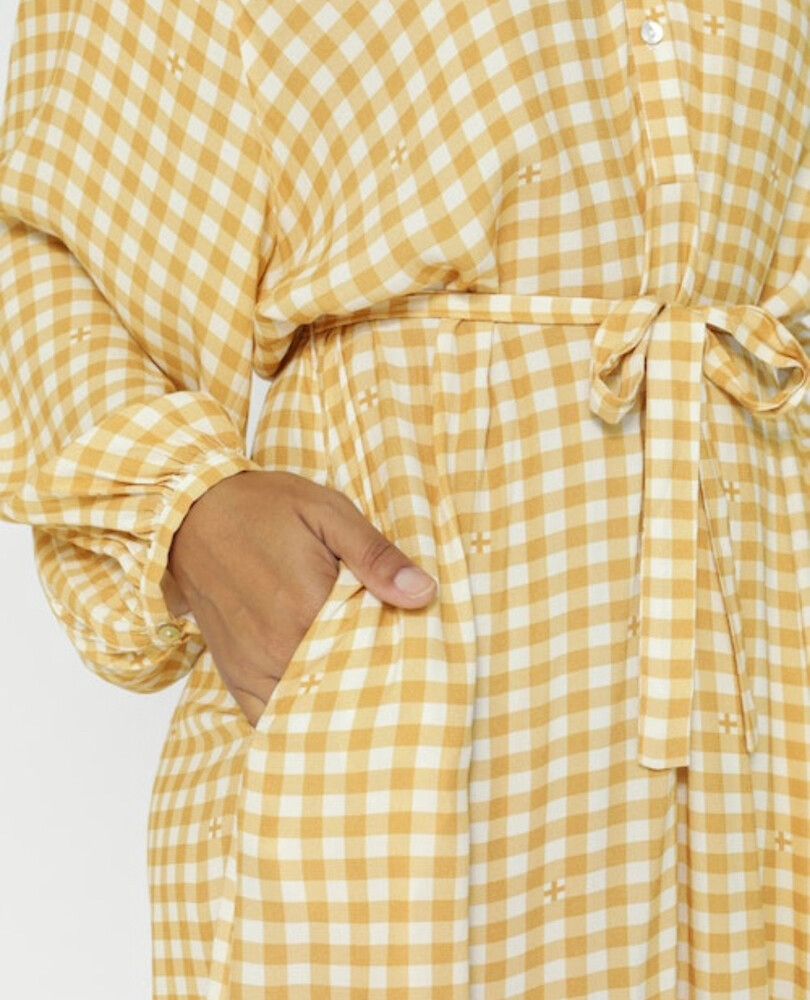 SIZE ON TAG: MFITS LIKE: 12COLOUR: YellowFABRIC: 65% polyester, 35% cottonCONDITION: Excellent prelovedMEASUREMENTS:BUST: 54cms WAIST: 60cms LENGTH: 57cmsNOTES: "Tee party - Frill life" Spring 2020. Fabric...