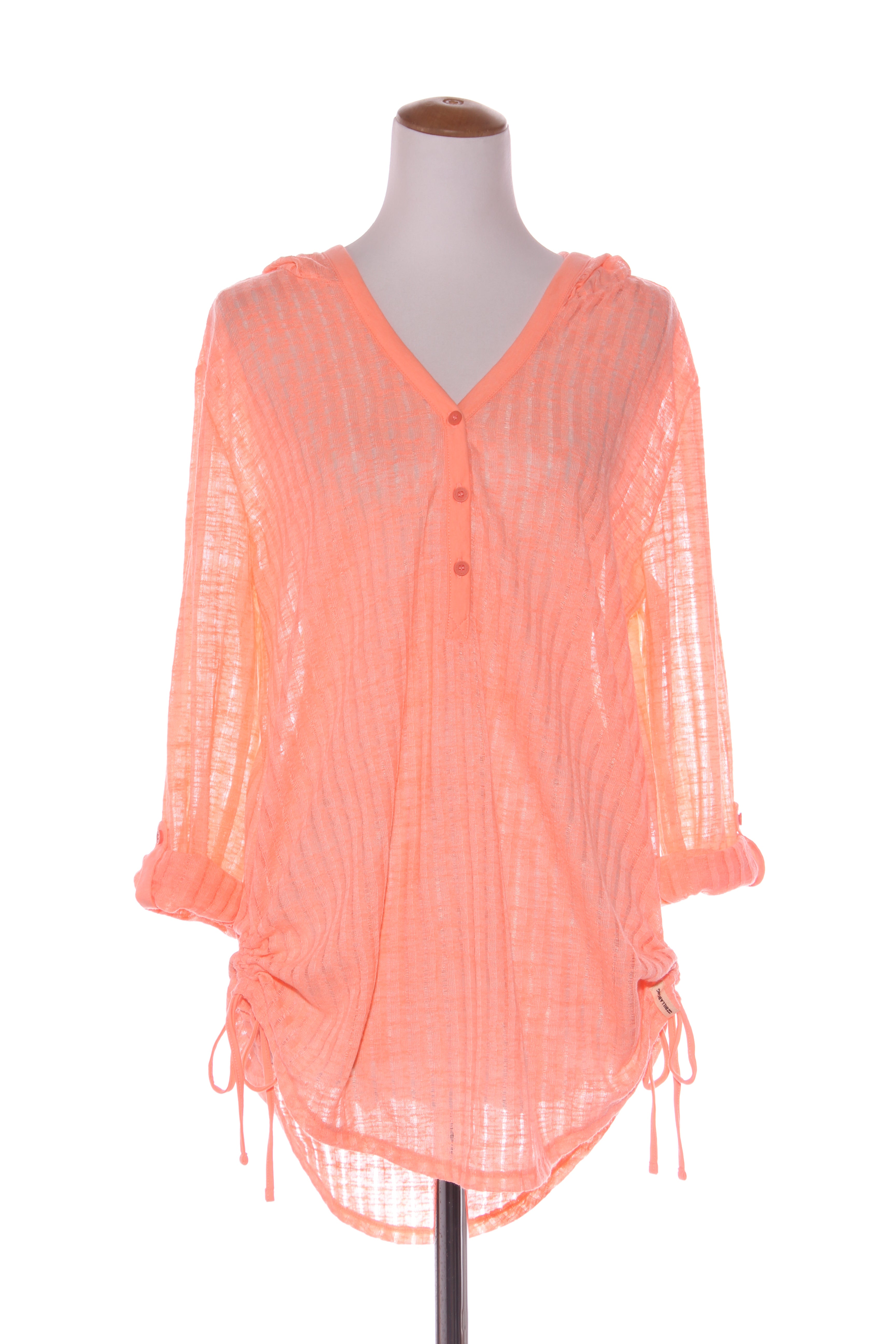 SIZE ON TAG: 14FITS LIKE: N/ACOLOUR: Fluro orangeFABRIC: PolyesterCONDITION: Excellent prelovedMEASUREMENTS:BUST: 56cms WAIST: 57cms LENGTH: 83-86cmsNOTES: Great coverup for the beach or poolside in a gorgeous...