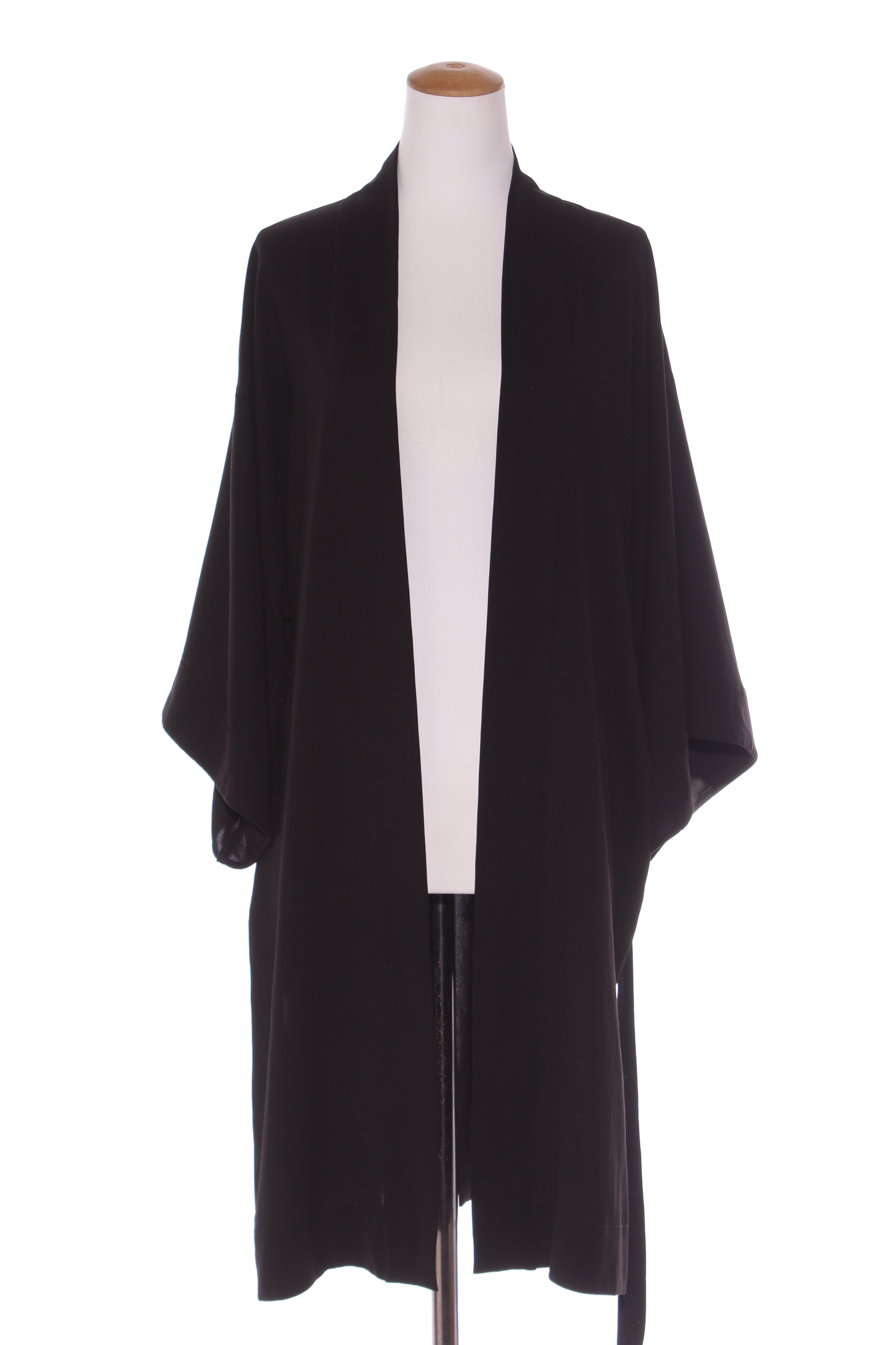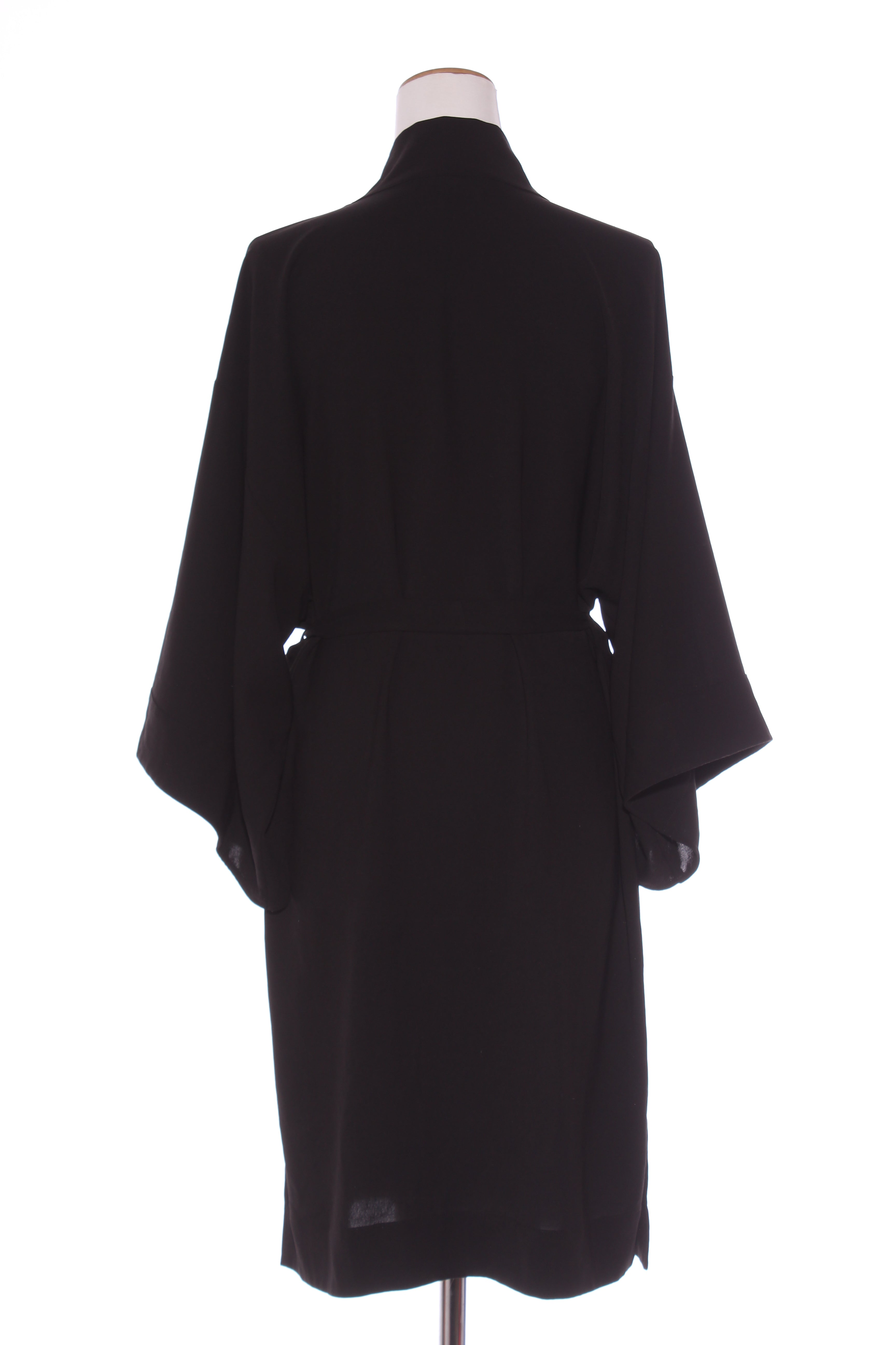 SIZE ON TAG: MFITS LIKE: 12-14COLOUR: BlackFABRIC: PolyesterCONDITION: Excellent prelovedMEASUREMENTS:BUST: 63cms WAIST: Free LENGTH: 105cms NOTES: Made in NZ. Comes with matching belt. Fabric has stretch. ...