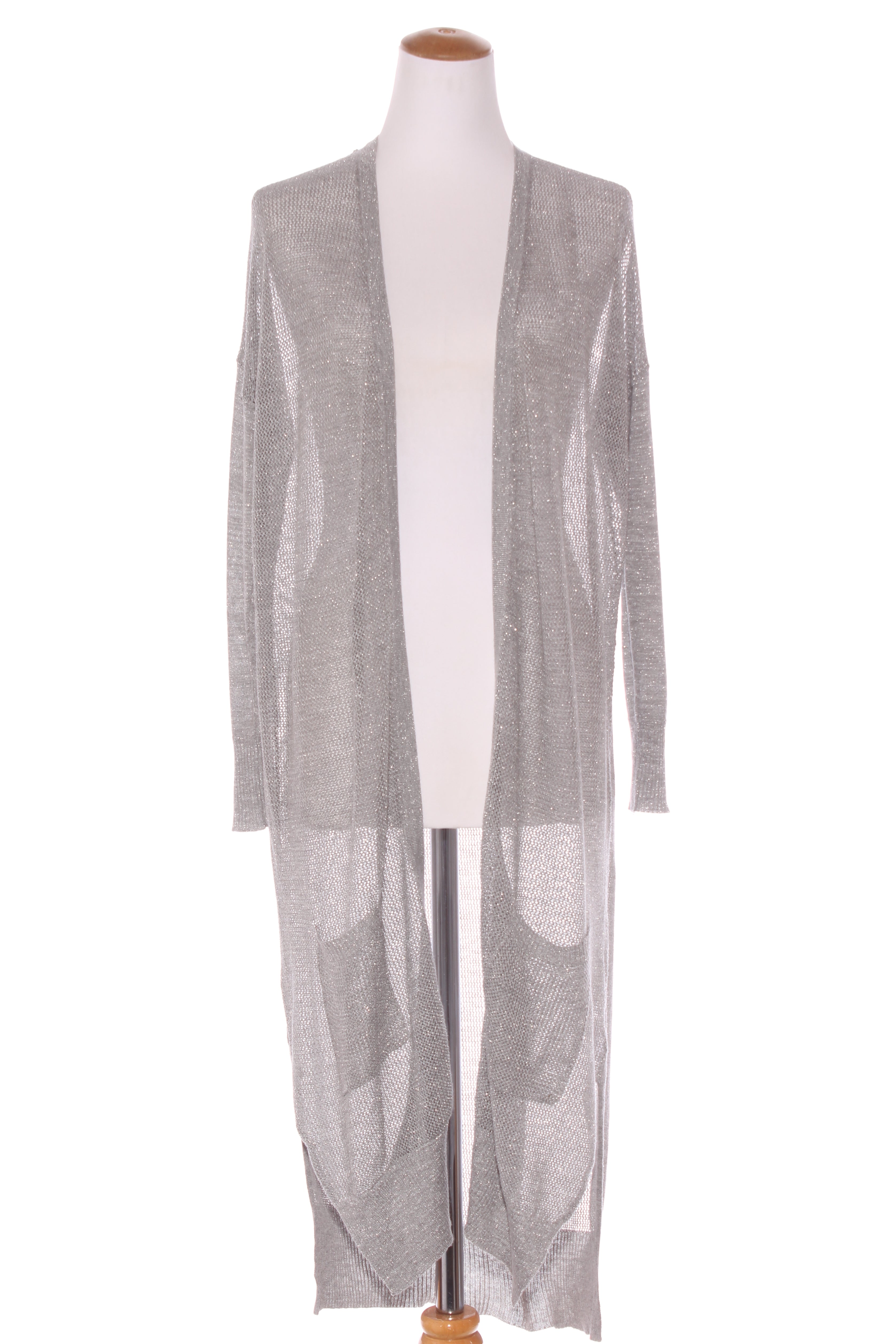 SIZE ON TAG: 12FITS LIKE: 12- small 14COLOUR: GreyFABRIC: 50% rayon, 33% cotton, 17% lurexCONDITION: Excellent prelovedMEASUREMENTS:BUST: 71cms WAIST: Free LENGTH: 110-123cms NOTES: Open front no...