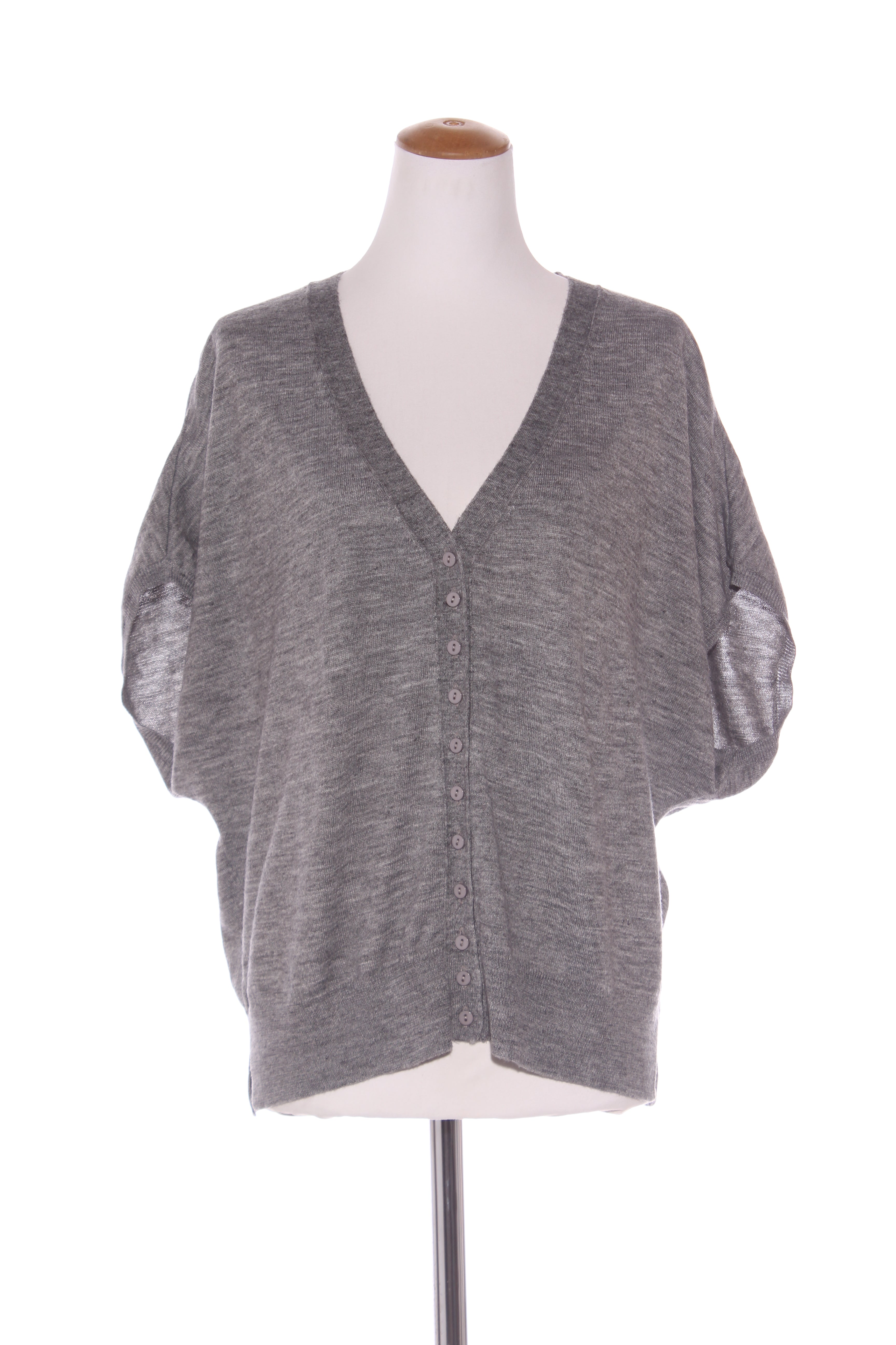 SIZE ON TAG: XLFITS LIKE: 16COLOUR: Grey marleFABRIC: 30% merino, 70% acrylicCONDITION: Excellent prelovedMEASUREMENTS:BUST: Free WAIST: 65cms LENGTH: 68cms NOTES: Button up front. Fabric has stretch.