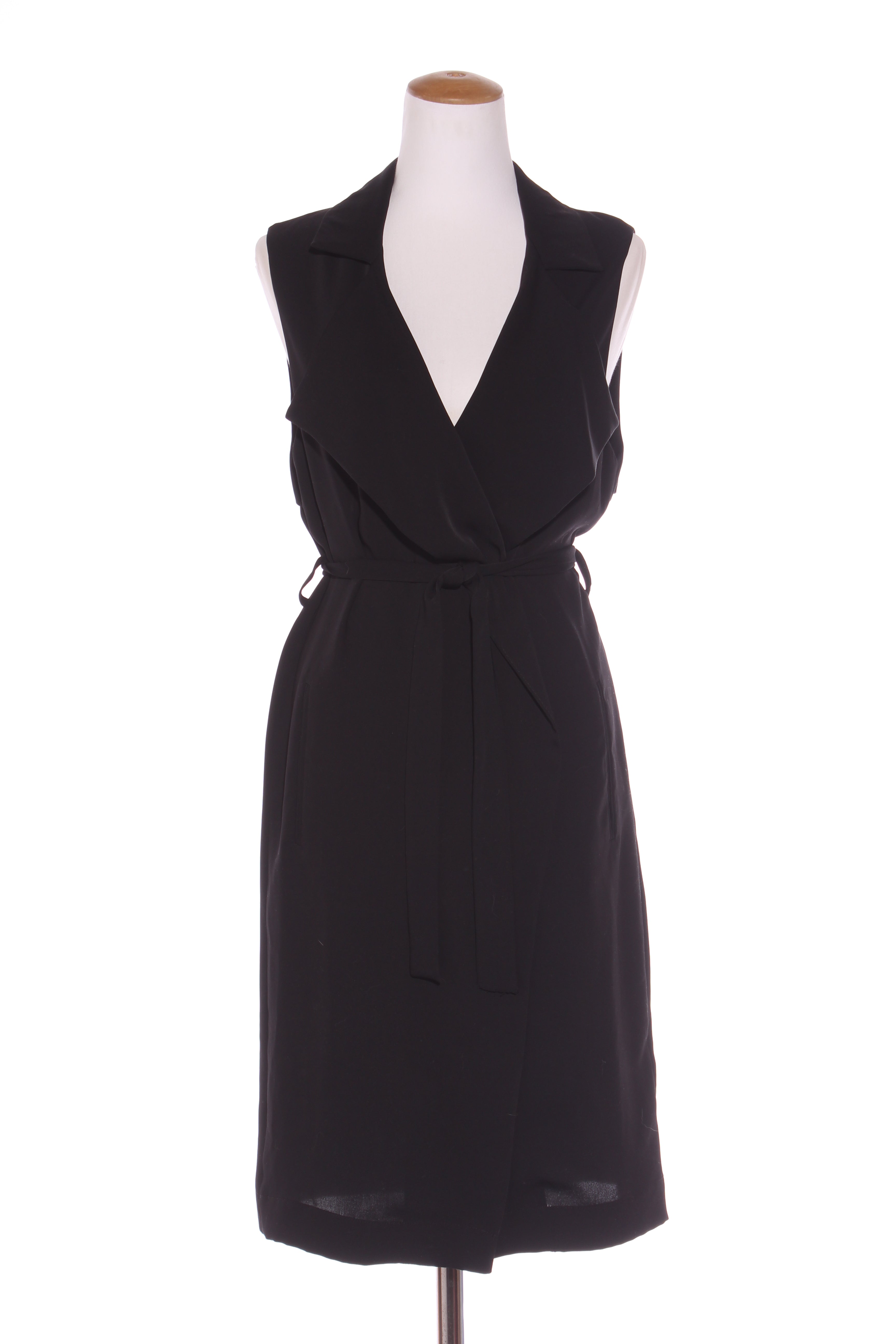 SIZE ON TAG: 12FITS LIKE: N/ACOLOUR: BlackFABRIC: PolyesterCONDITION: Excellent prelovedMEASUREMENTS:BUST: 52cms WAIST: Free LENGTH: 105cms NOTES: Open front. Side belt loops. Comes with matching belt. Sode...