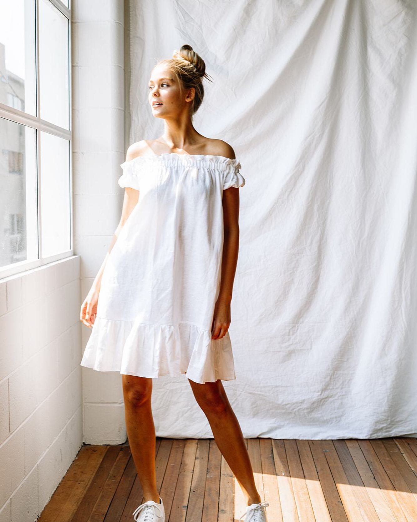 SALE ITEM - [NOT ELIGIBLE FOR RETURN] - Was $65SIZE ON TAG: MFITS LIKE: 12COLOUR: Light blueFABRIC: LinenCONDITION: Excellent prelovedMEASUREMENTS:BUST: 47cms WAIST: 68cms LENGTH: 83cmsNOTES: Modelled pics...