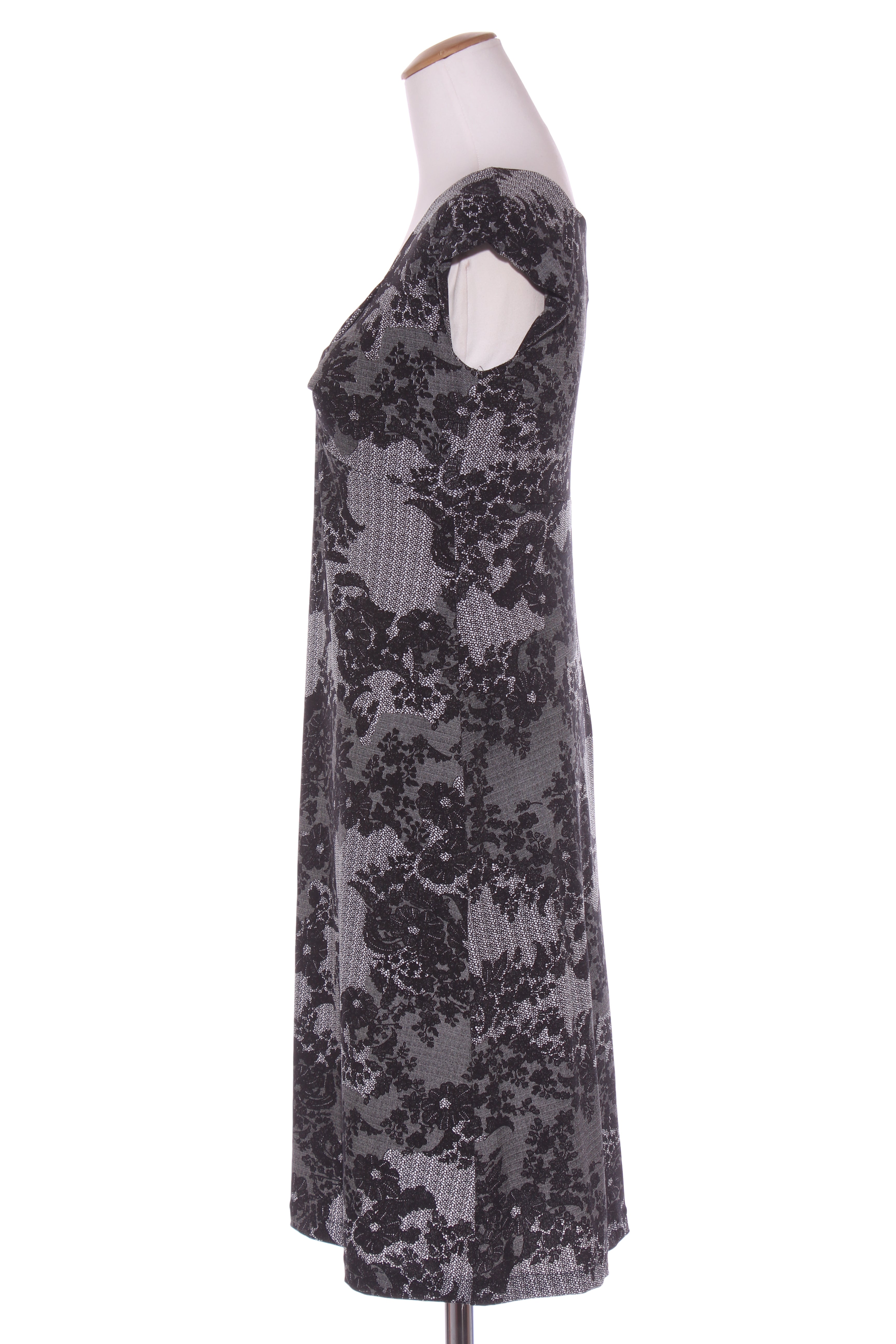 SIZE ON TAG: MFITS LIKE: 12COLOUR: MultiFABRIC: Polyester, Lining - 97% polyester, 3% elastaneCONDITION: Excellent prelovedMEASUREMENTS:BUST: 50cms WAIST: 43cms LENGTH: 137cmsNOTES: A bold black floral print...