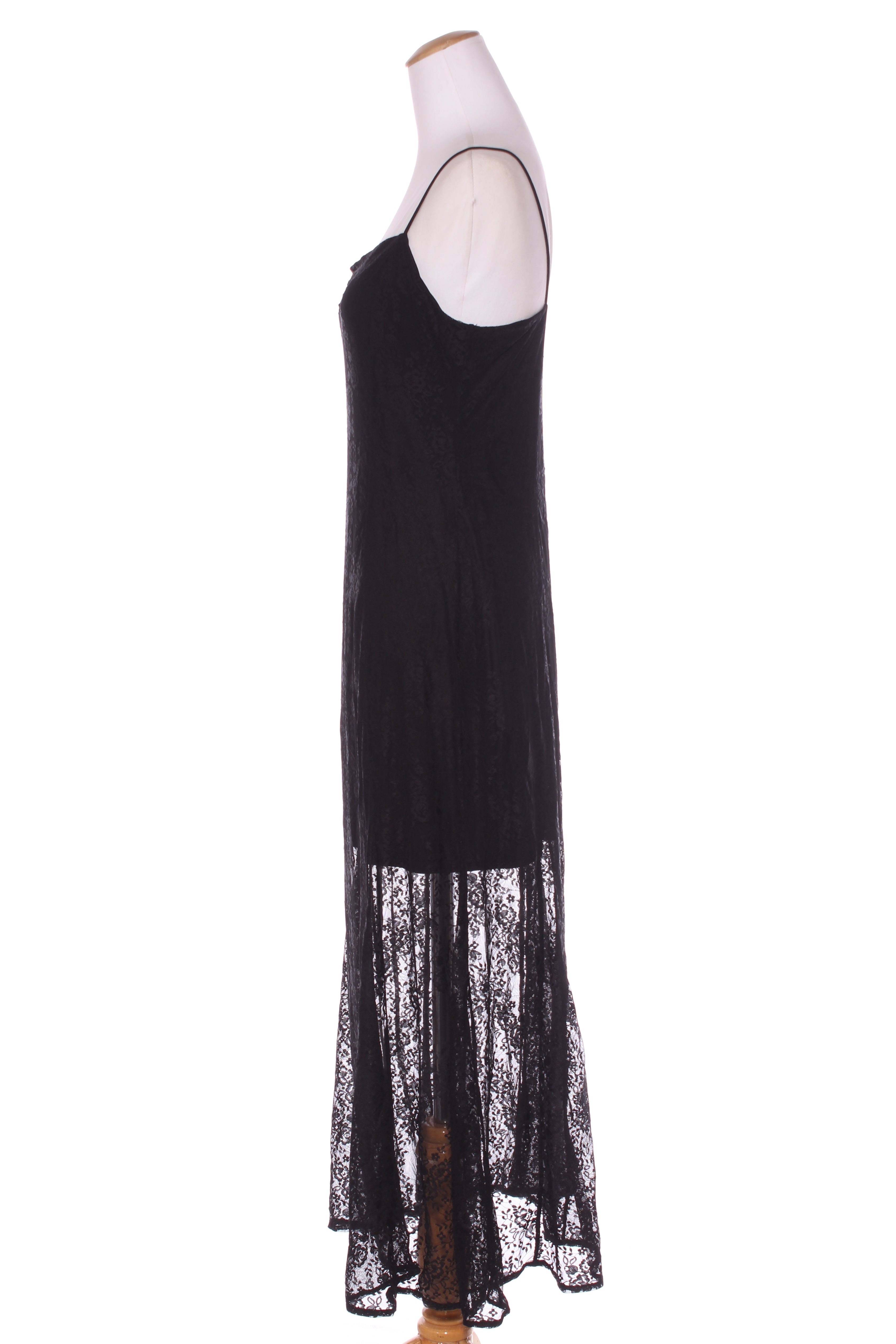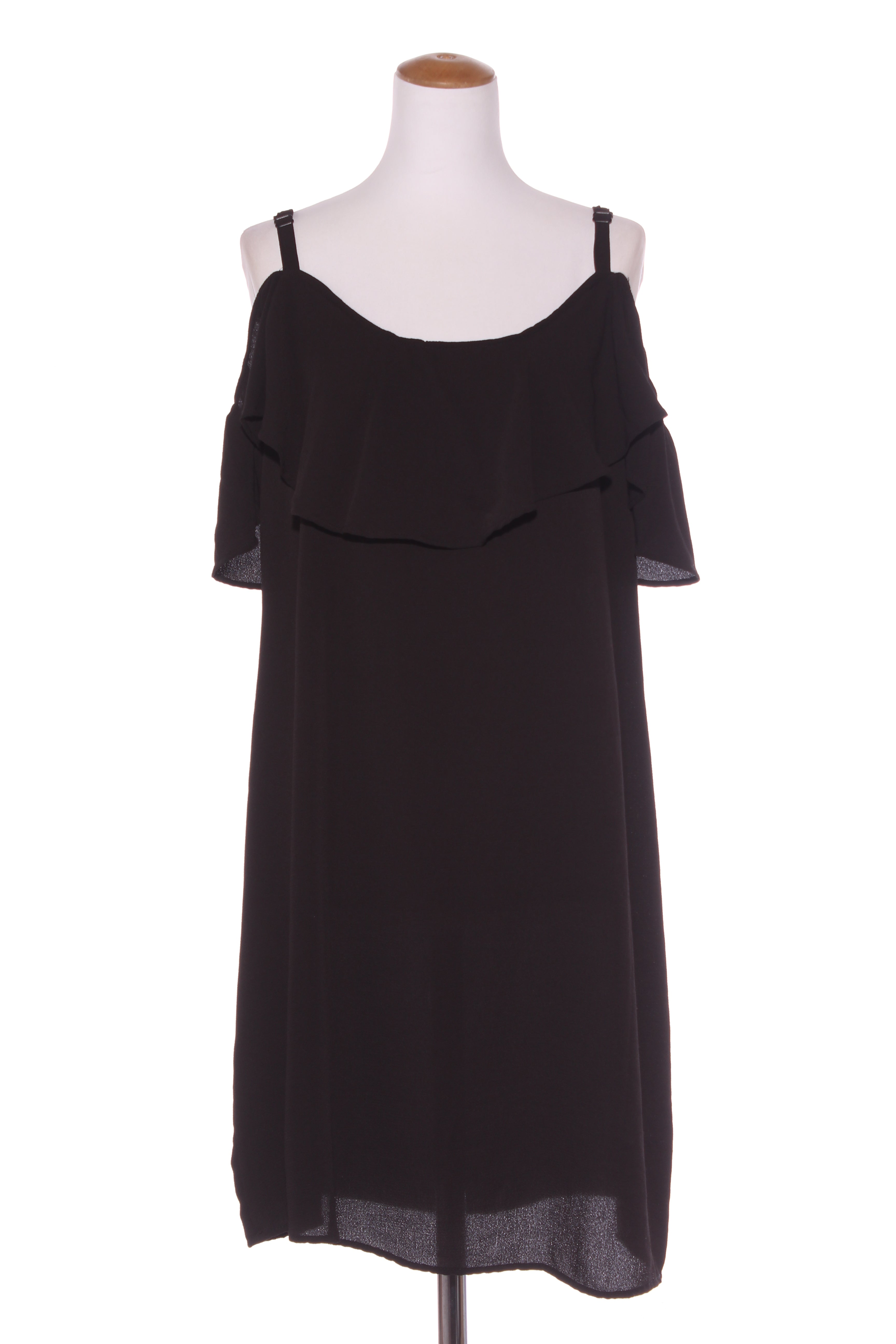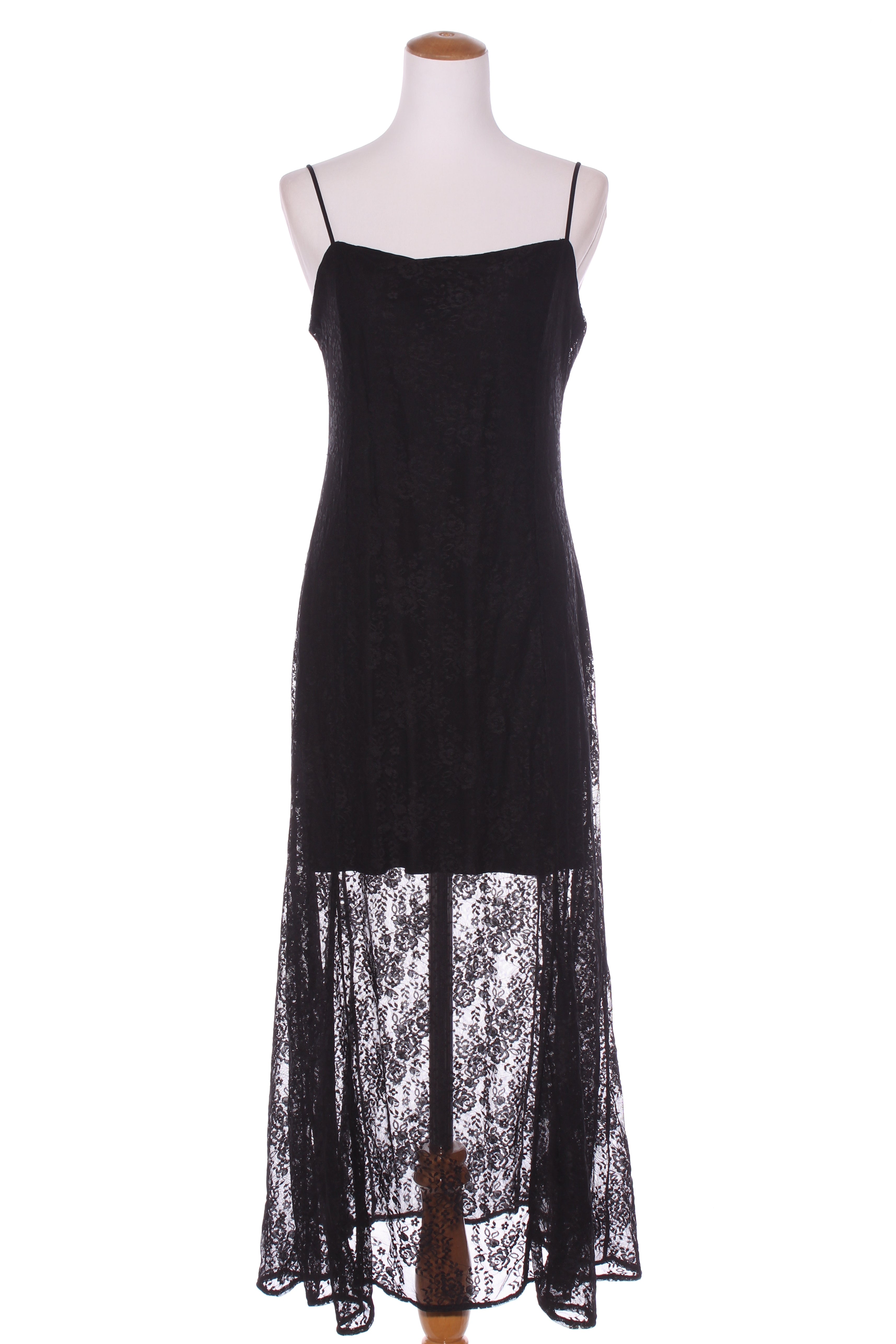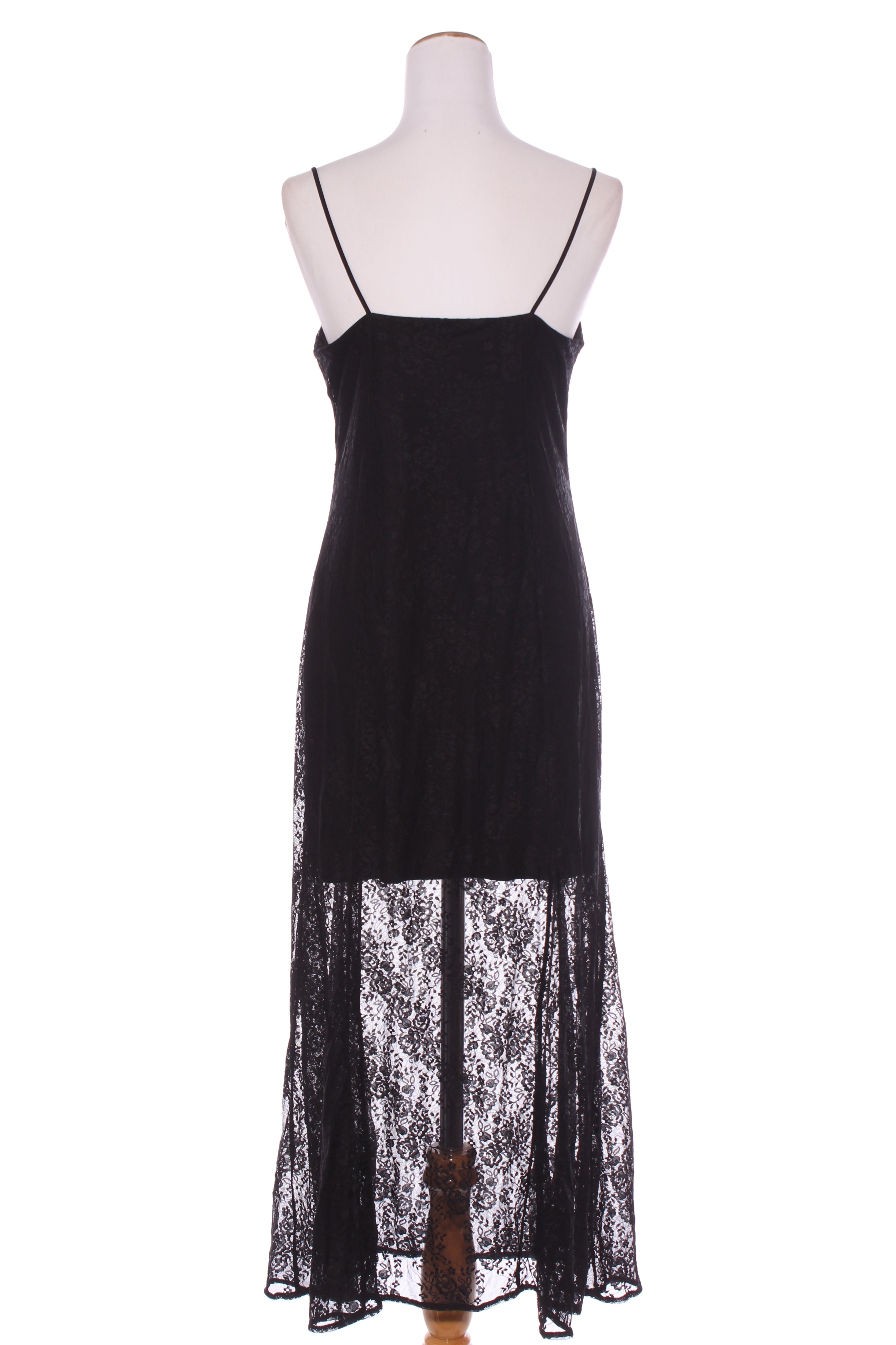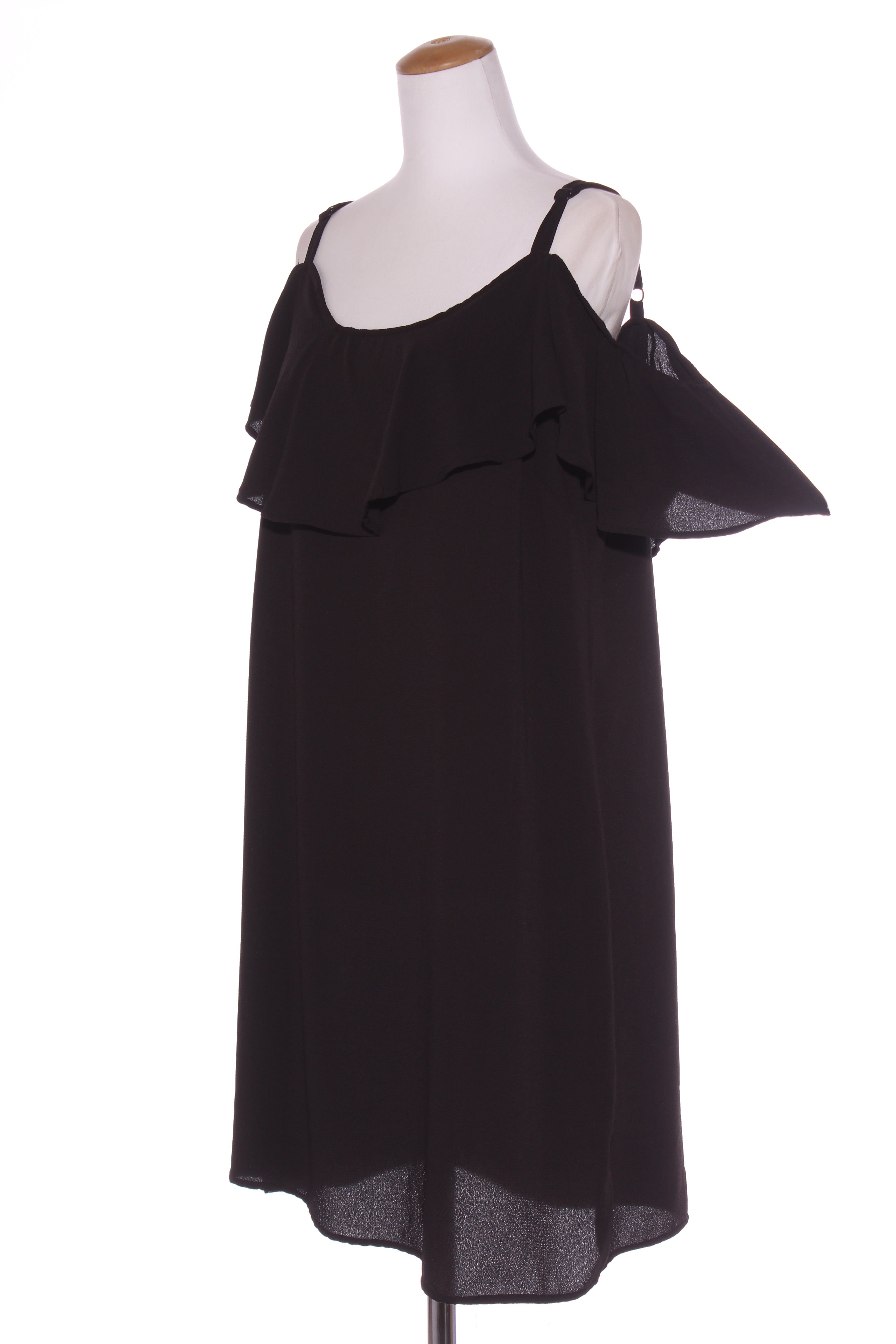 SIZE ON TAG: Tag removedFITS LIKE: 12COLOUR: BlackFABRIC: Tag removed, polyester, elastaneCONDITION: Excellent preloved - worn onceMEASUREMENTS:BUST: 44cms WAIST: 43cms LENGTH: 135cmsNOTES: Pull over style. Fabric...