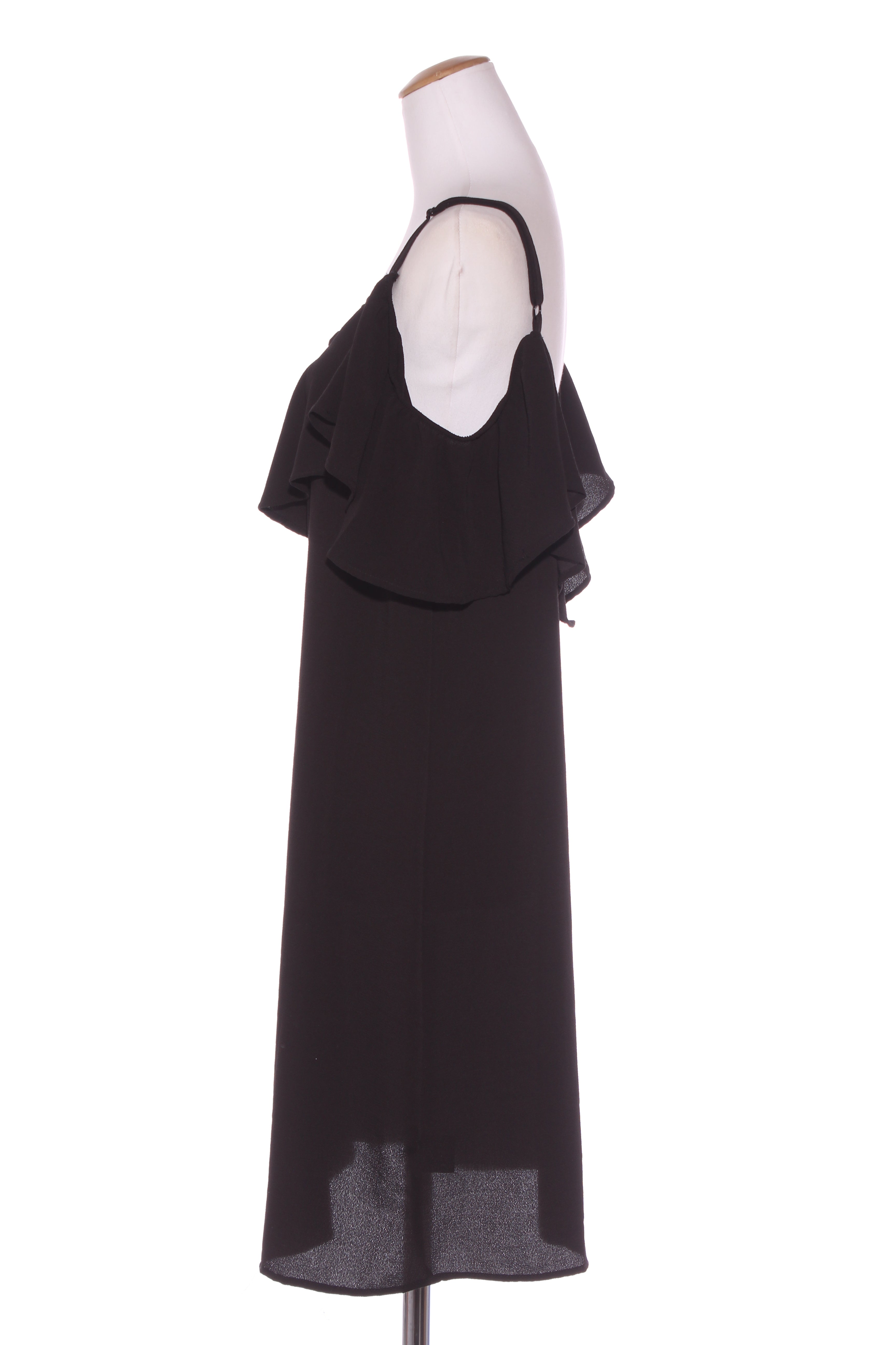 SIZE ON TAG: 18FITS LIKE: N/ACOLOUR: BlackFABRIC: PolyesterCONDITION: Brand new with tagMEASUREMENTS:BUST: 58cms WAIST: 57cms LENGTH: 100cmsNOTES: Adjustable shoulder straps. Elasticated ruffle neckline. Fabric has some...