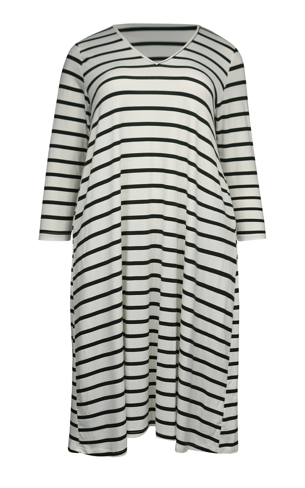 NOTES: Sure to become your new throw on and go staple! Our Long Sleeve T-Shirt Dress is your new wardrobe essential! Featuring long sleeves, v-neckline, in-seam hip pockets, complimented by our pistachio stripe, this looks gorgeous on all body shapes. Pairs perfectly with our Boyfriend Oversized Denim Jacket. The pistachio stripe is more like a liquorice, some may even call it black.