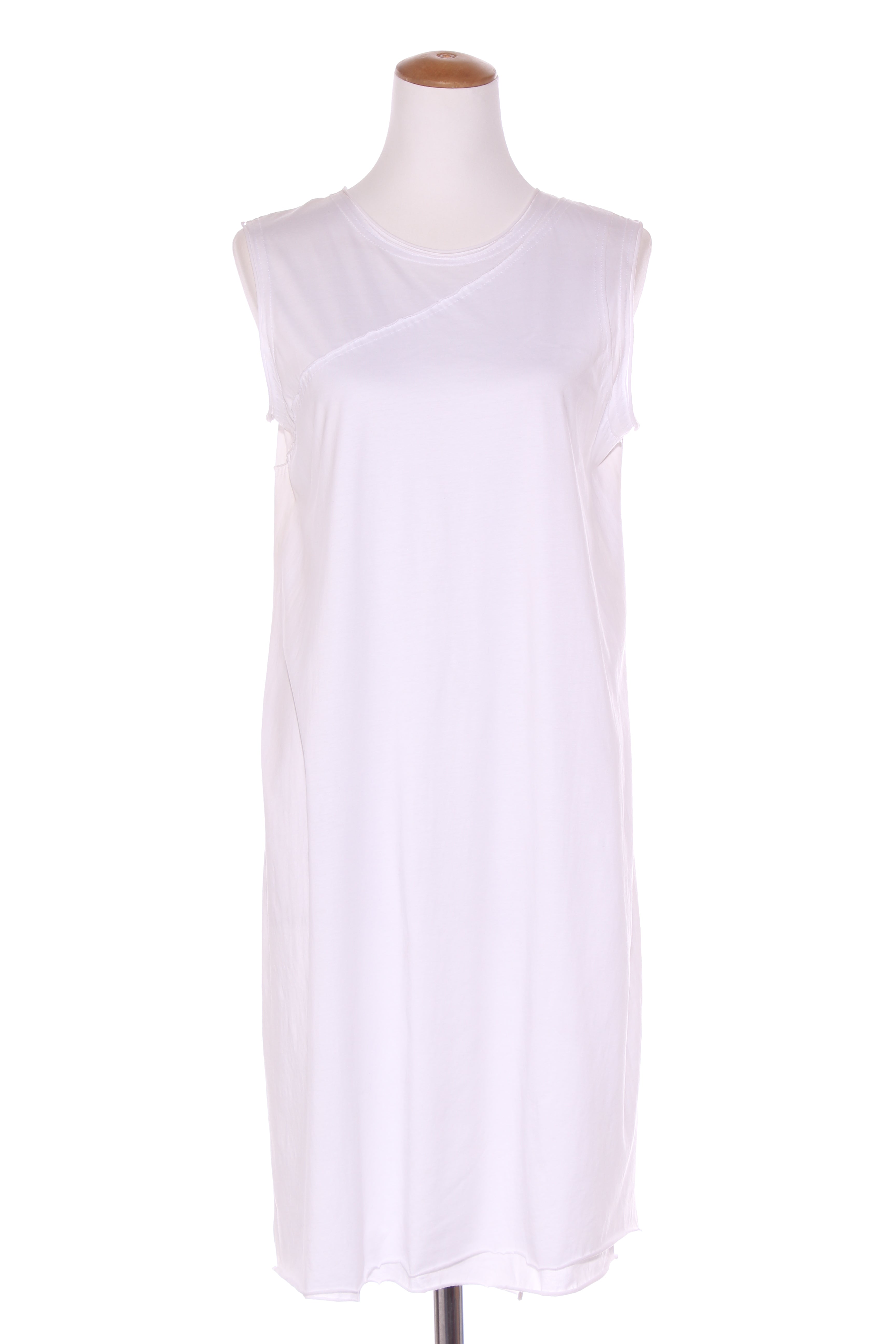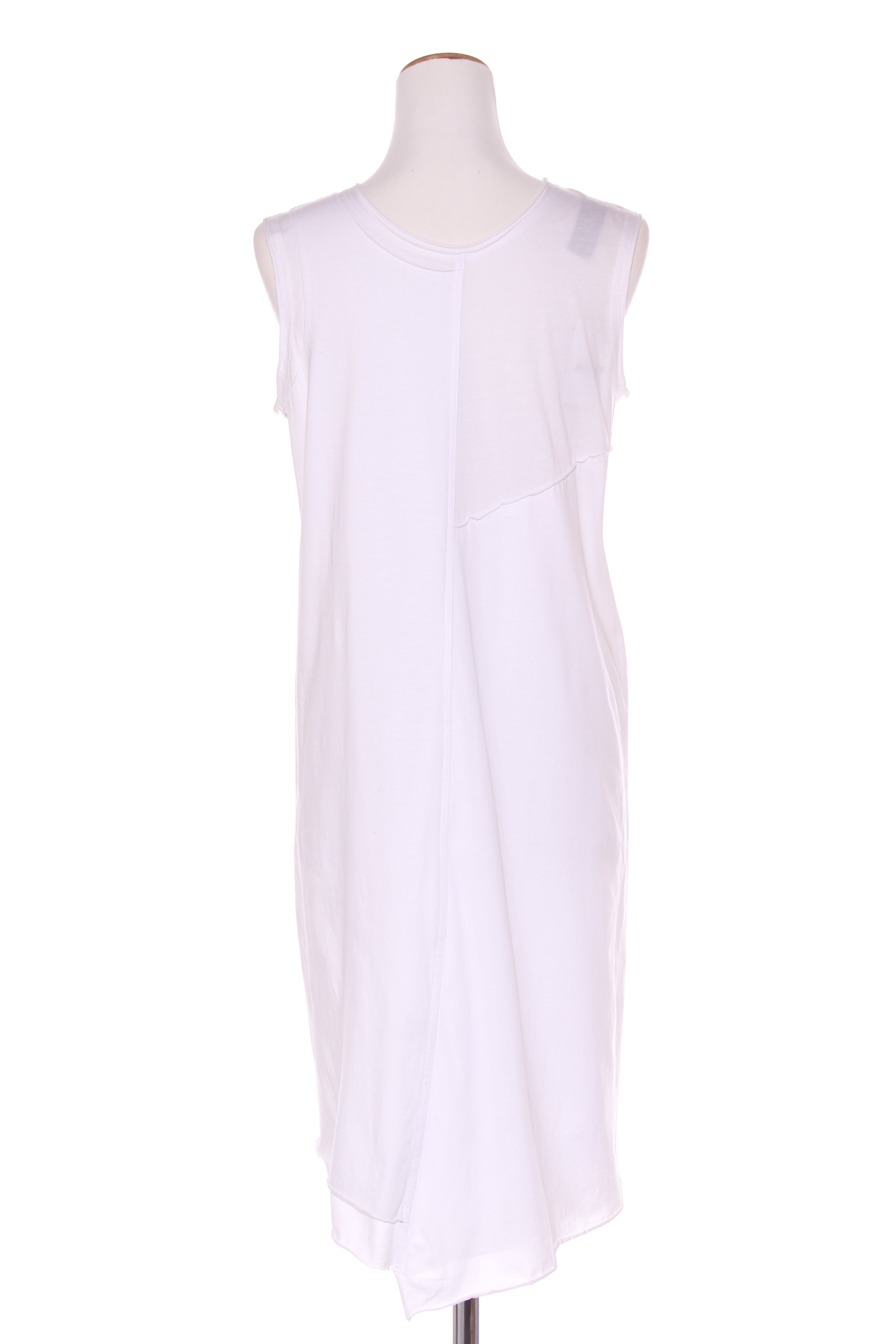 SIZE ON TAG: 8FITS LIKE: 8-10COLOUR: WhiteFABRIC: Mercerised cottonCONDITION: Brand new with tagMEASUREMENTS:BUST: 48cms WAIST: 49cms LENGTH: 100-107cmsNOTES: Made in NZ. Pull over style. Fabric has...