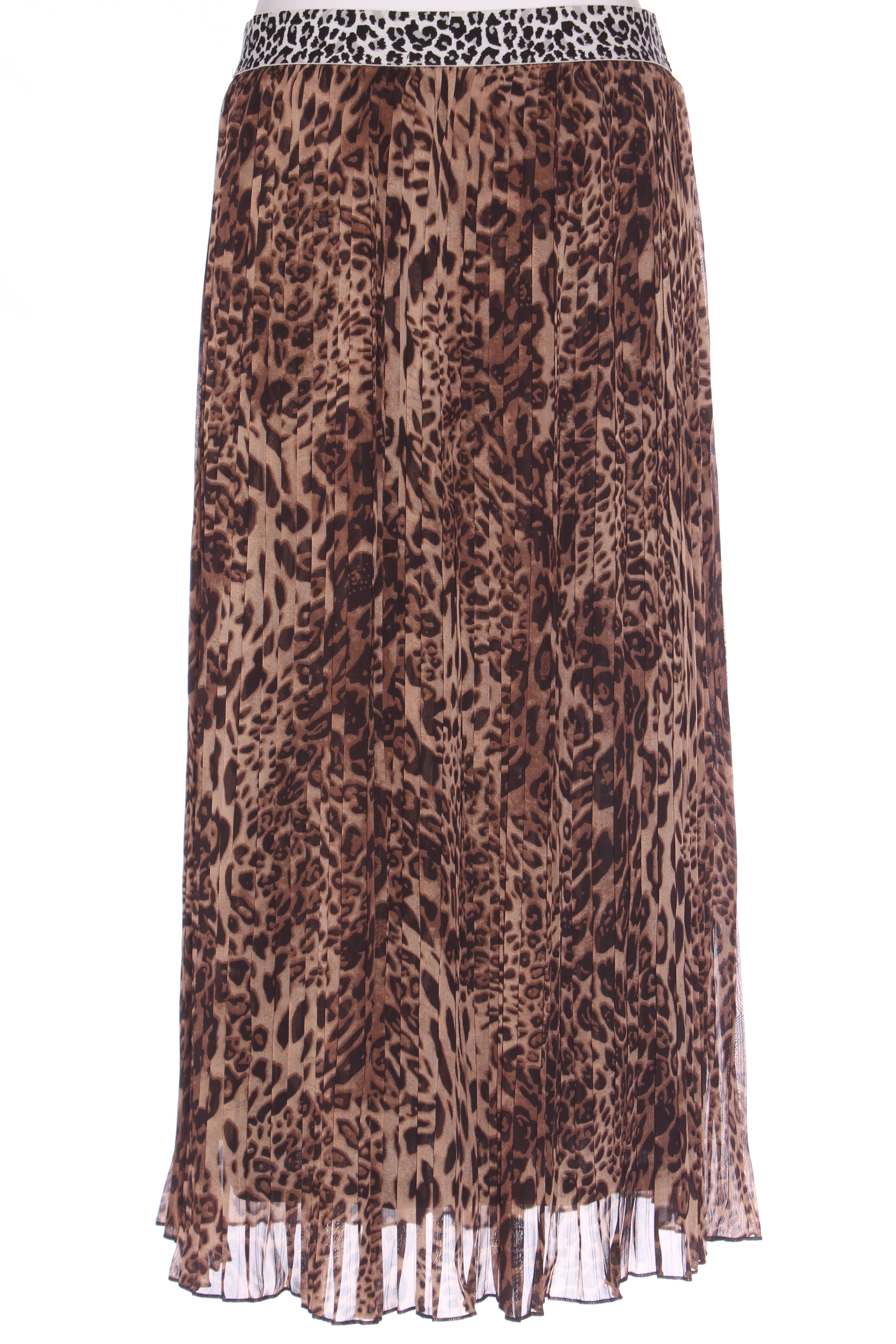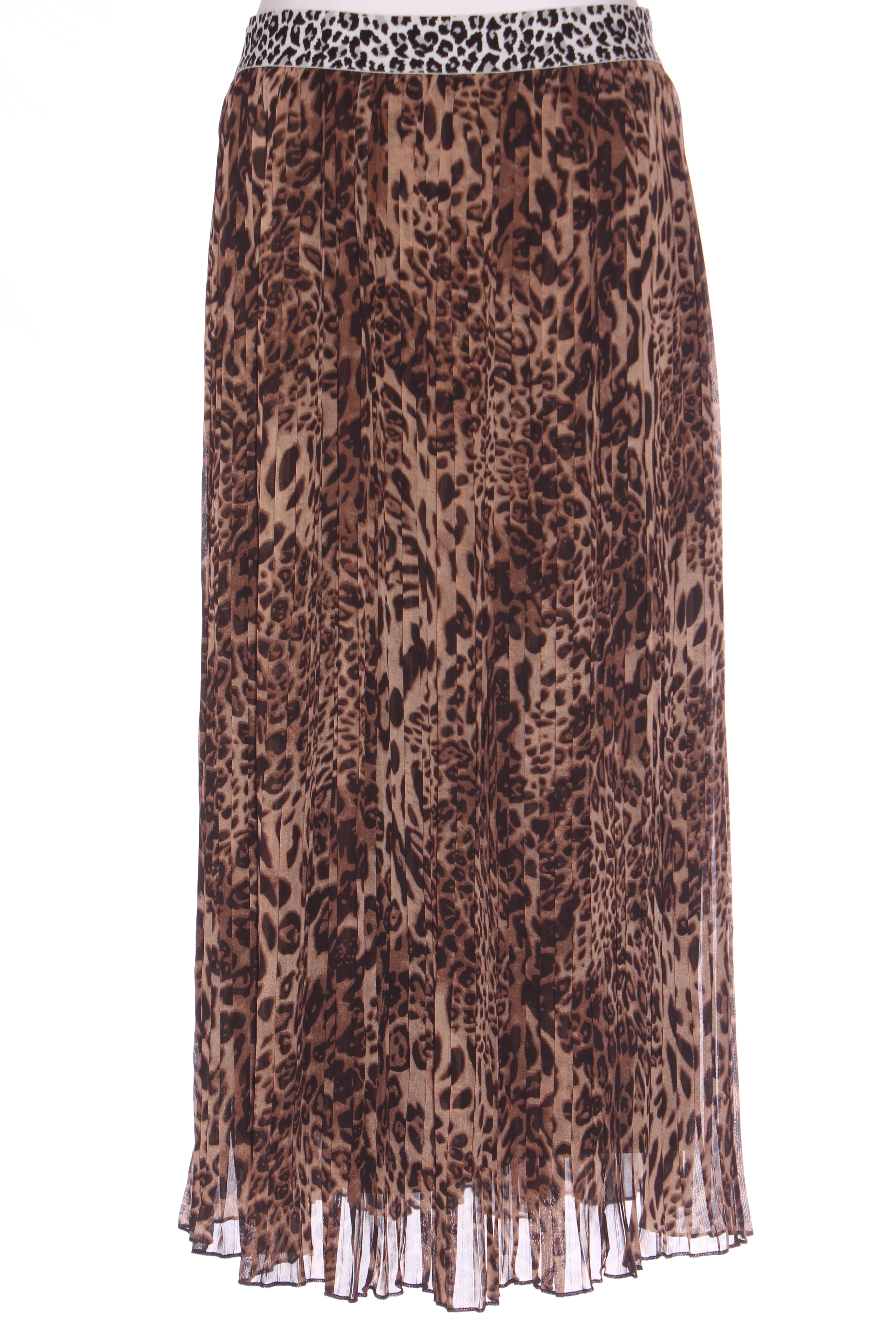 SIZE ON TAG: 16FITS LIKE: N/ACOLOUR: Brown, multiFABRIC: PolyesterCONDITION: Excellent prelovedMEASUREMENTS:WAIST: 41cms HIPS: 61cms LENGTH: 86cms NOTES: Bold warm tones of on-trend animal print. The pleated style...
