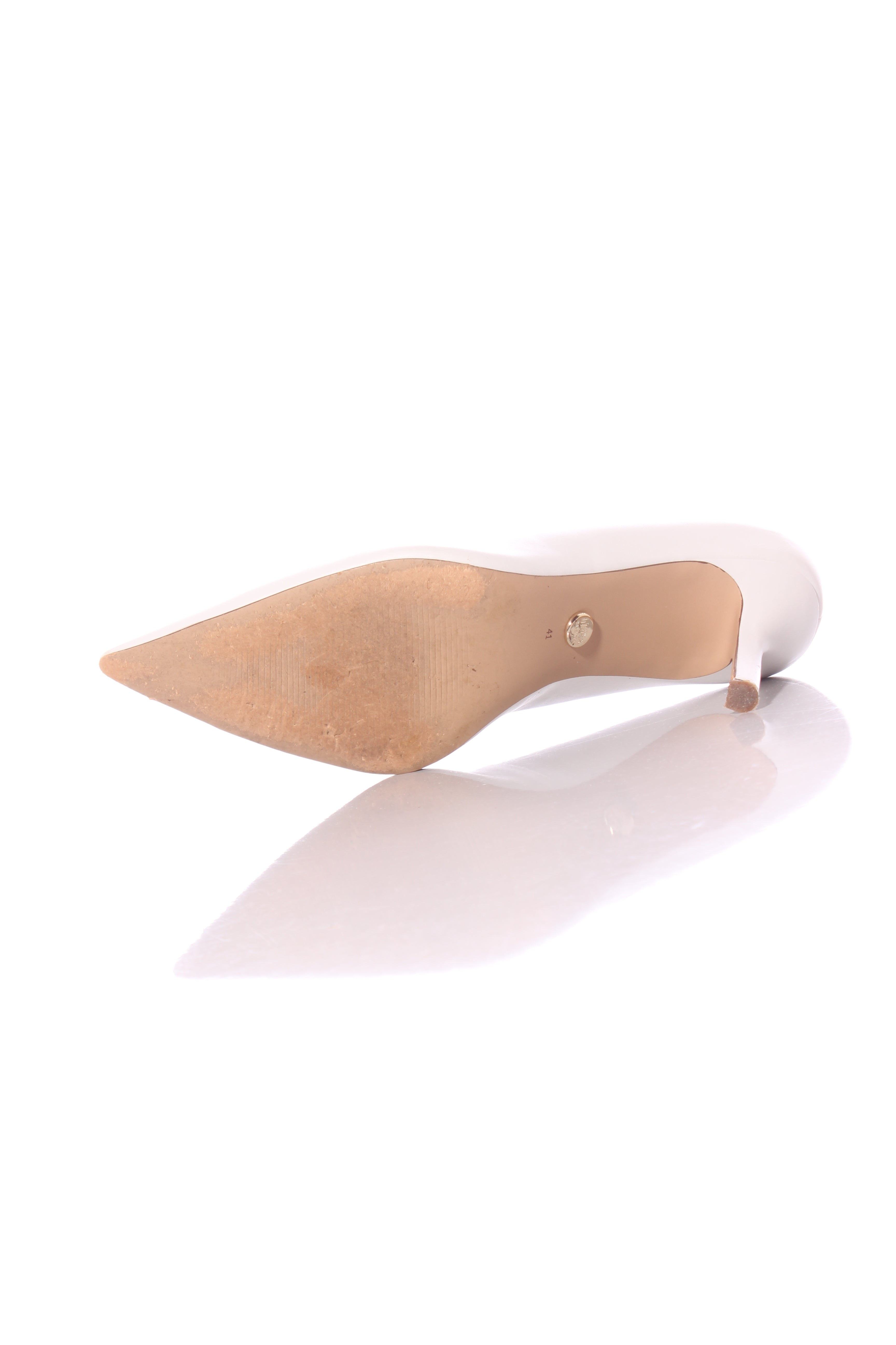 SIZE ON SHOE: 9FITS LIKE: N/ACOLOUR: White, beigeFABRIC: Leather and non leather upper and lining, man made soleCONDITION: Barely wornMEASUREMENTS:INNER SOLE: 26.5cms WIDTH: 10cms HEEL: 3.5cms...