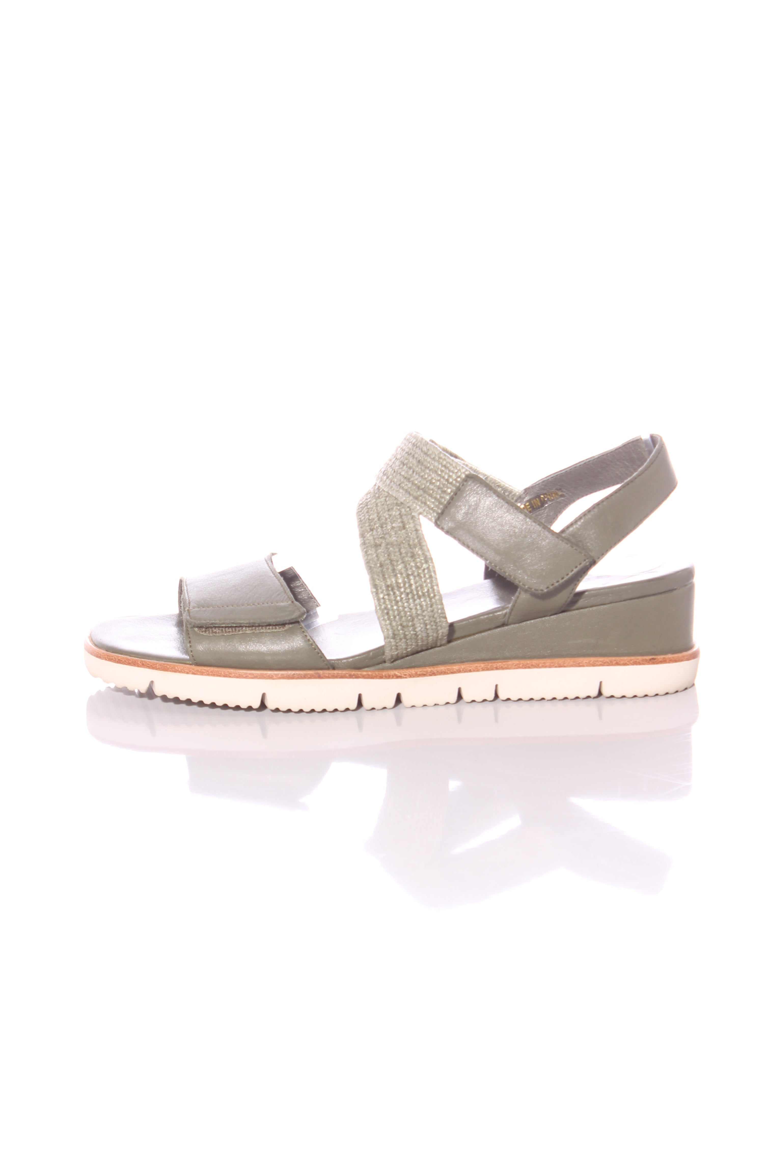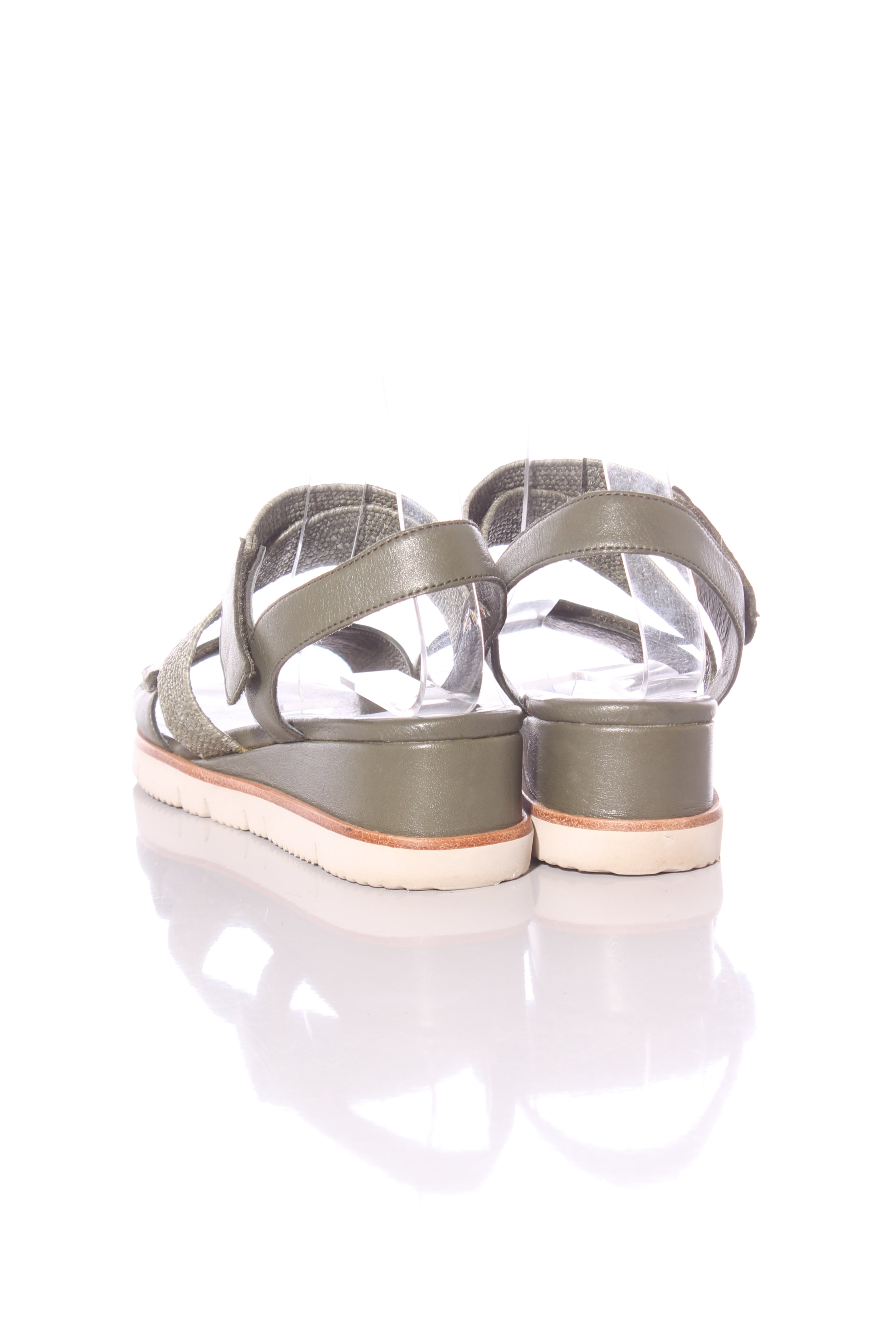SIZE ON SHOE: 40FITS LIKE: 9COLOUR: Khaki greenFABRIC: Leather/textile upper, leather lining, rubber soleCONDITION: Excellent prelovedMEASUREMENTS:INNER SOLE: 26.5cms WIDTH: 9.5cms HEEL: 5cms NOTES: Two velcro strap...