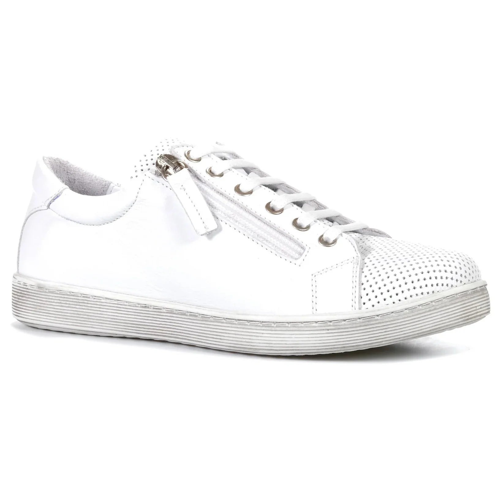 SIZE ON SHOE: 41FITS LIKE: 10COLOUR: WhiteFABRIC: Leather upper, leather lining, man made soleCONDITION: Excellent preloved - heel grips added to inner heel.MEASUREMENTS:INNER SOLE: 28cms WIDTH: 8.5cms ...
