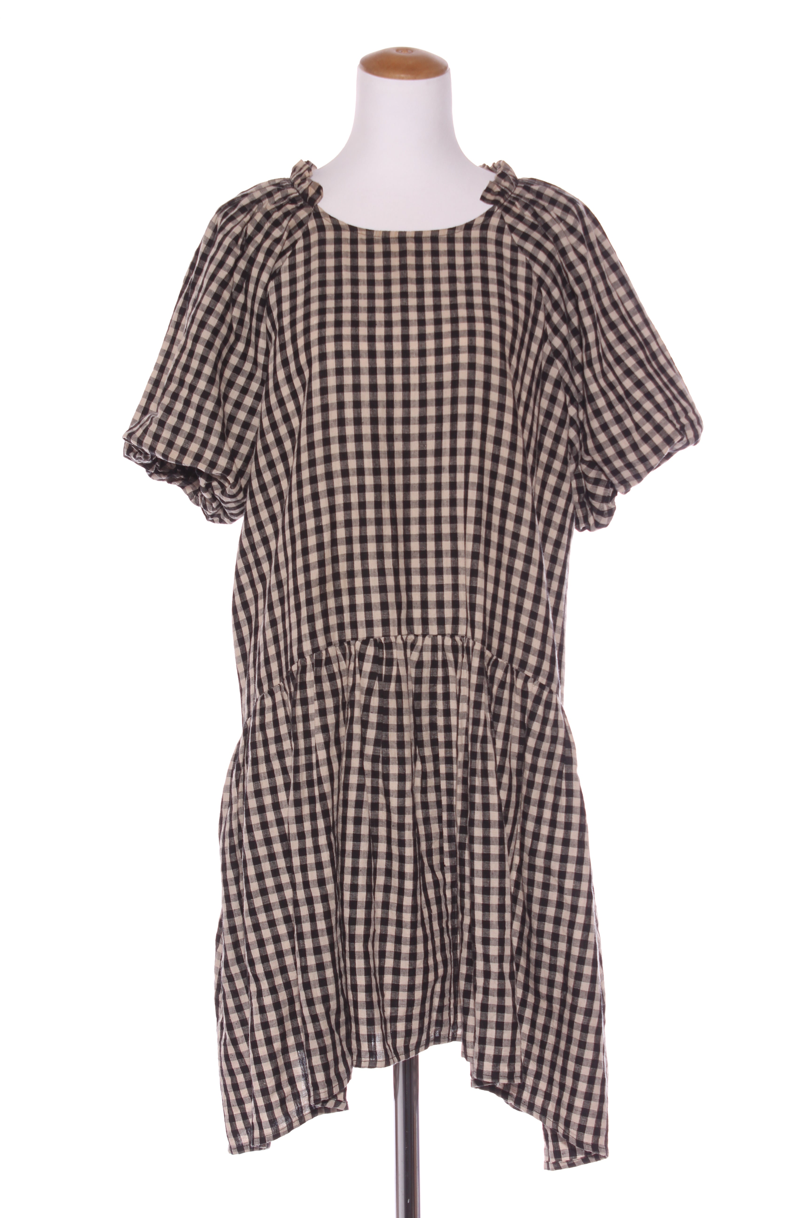 SIZE ON TAG: 12FITS LIKE: N/ACOLOUR: Black, beigeFABRIC: 55% linen, 45% cotton, Lining - cottonCONDITION: Excellent prelovedMEASUREMENTS:BUST: Free WAIST: 59cms LENGTH: 89cmsNOTES: Made in NZ. Button...
