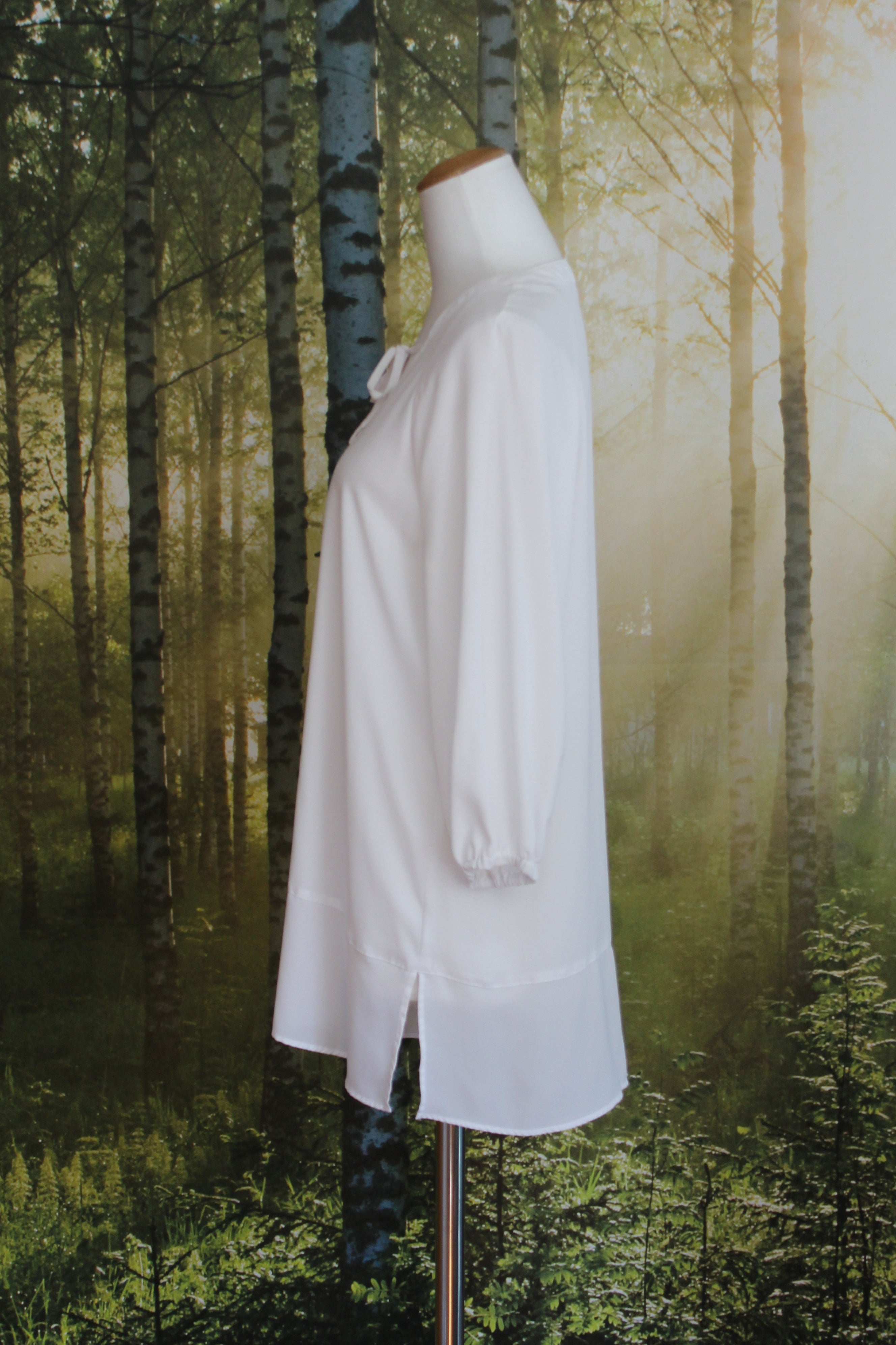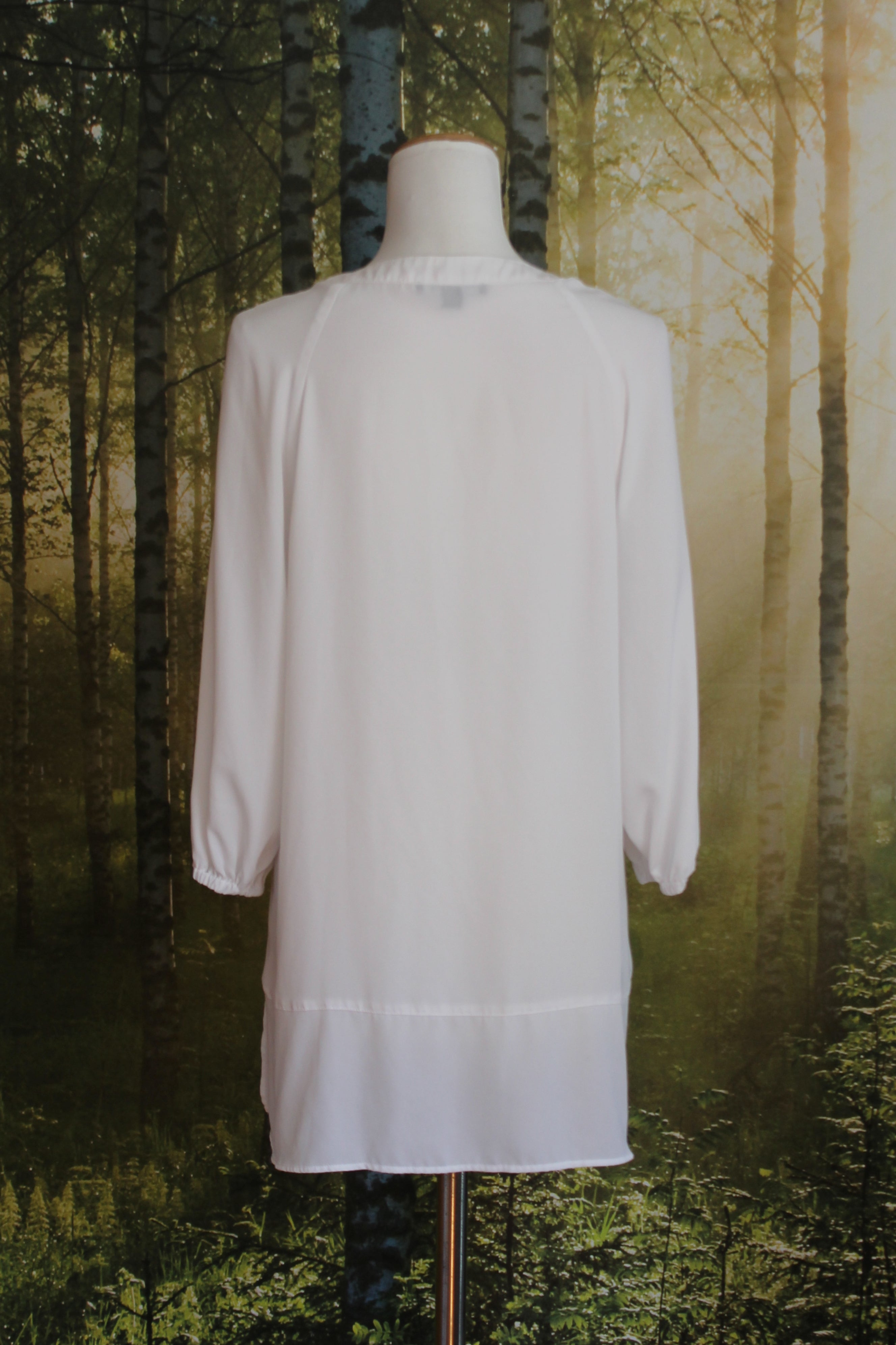 SIZE ON TAG: 10FITS LIKE: N/ACOLOUR: WhiteFABRIC: Tag removed, polyesterCONDITION: Very good prelovedMEASUREMENTS:BUST: 51cms WAIST: 55cms LENGTH: 75-78cmsNOTES: Made in NZ. Ties at front of neckline. ...